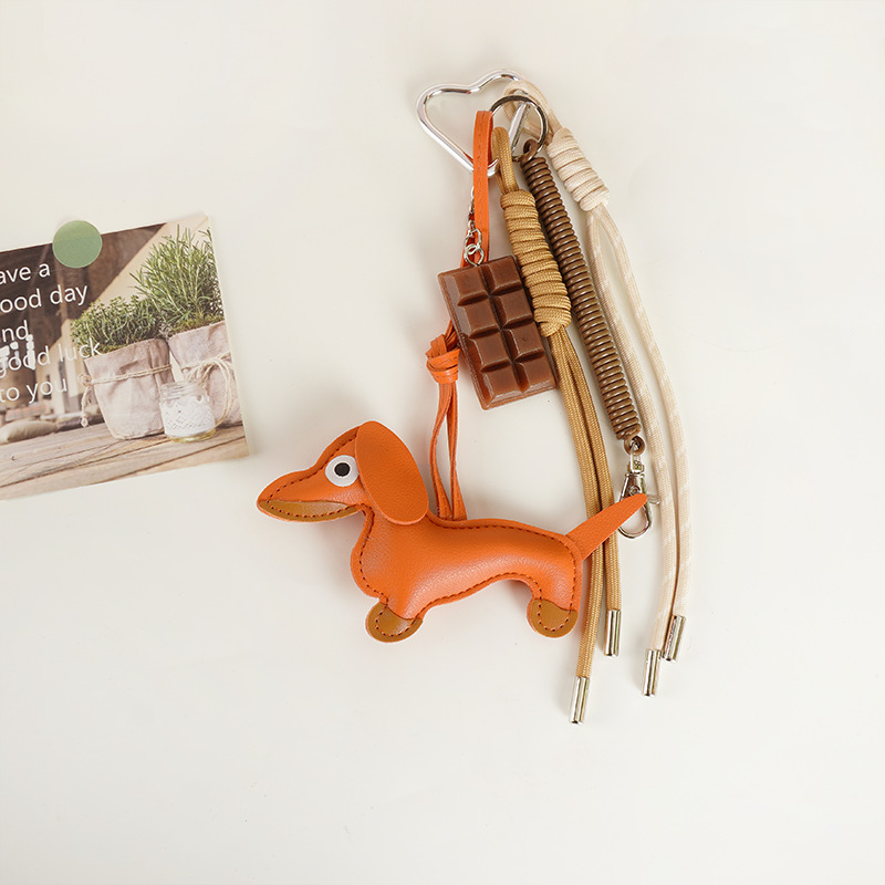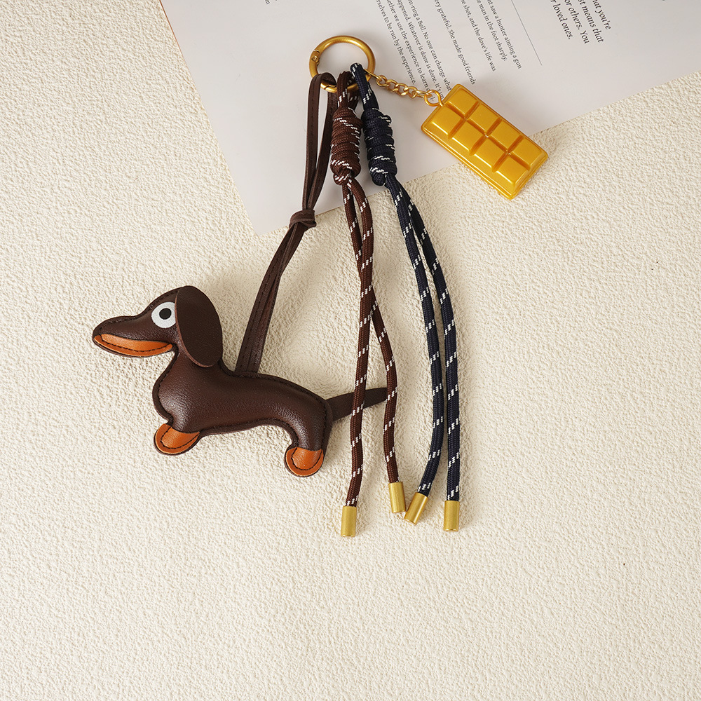miu系包挂件ins博主同款编织绳腊肠狗皮革公仔挂饰钥匙扣包包挂件
