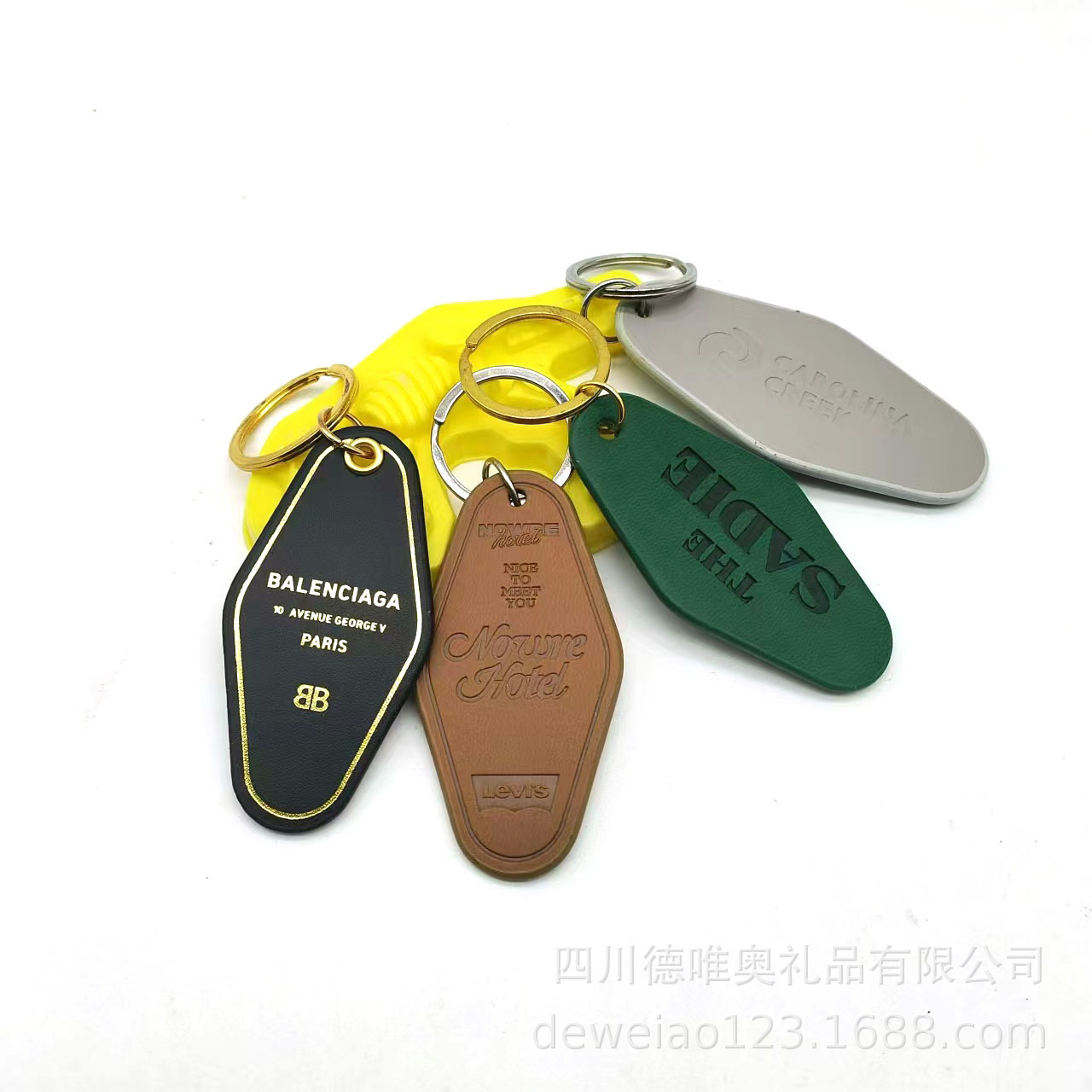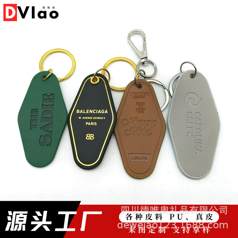 工厂现货菱形真皮PU皮质广告促销礼品挂饰汽车PVC皮革便携钥匙扣