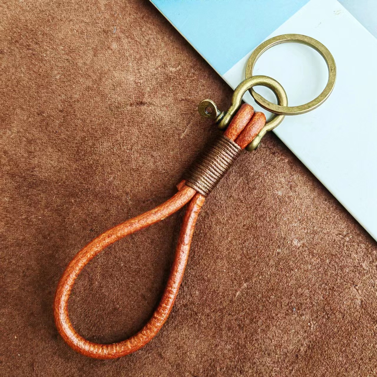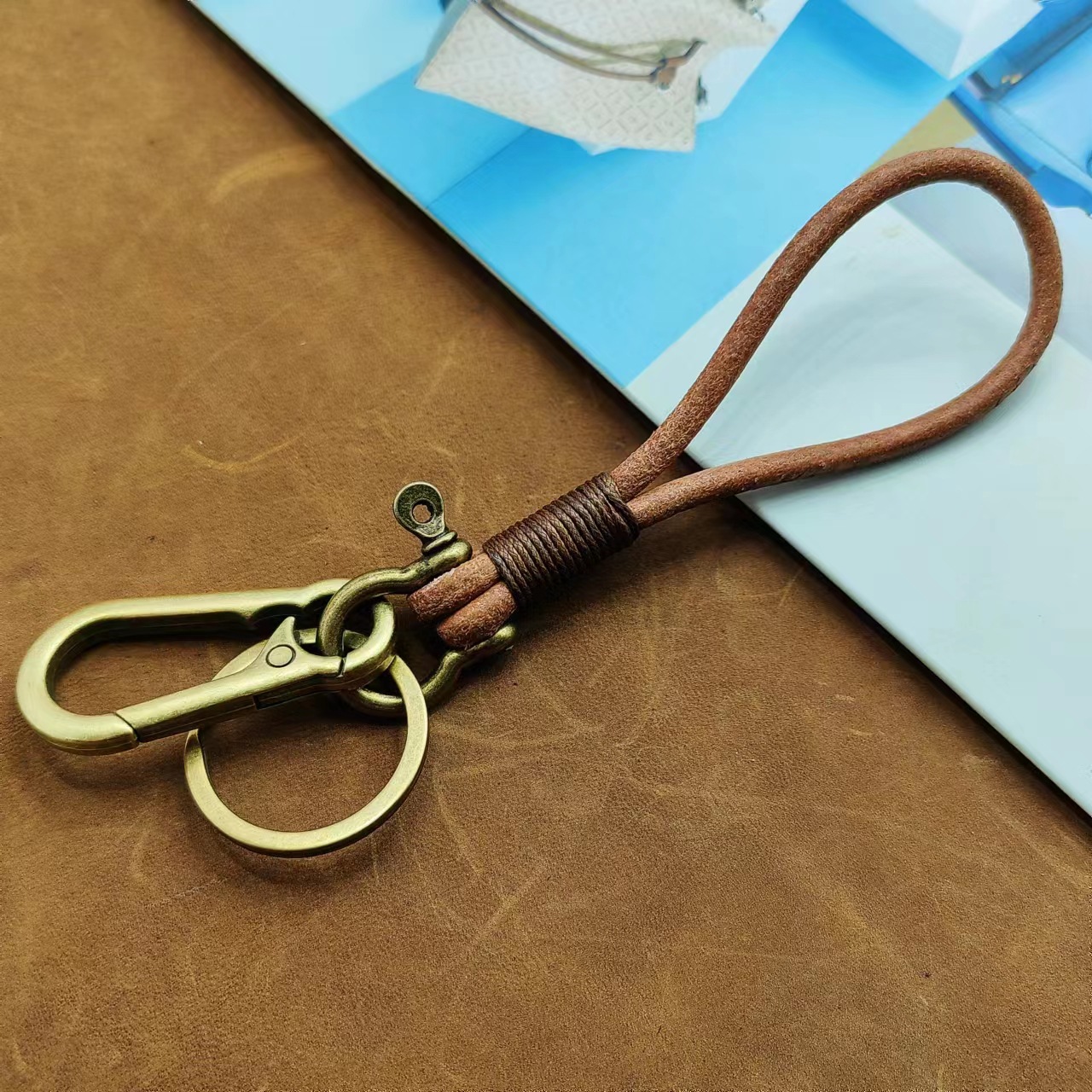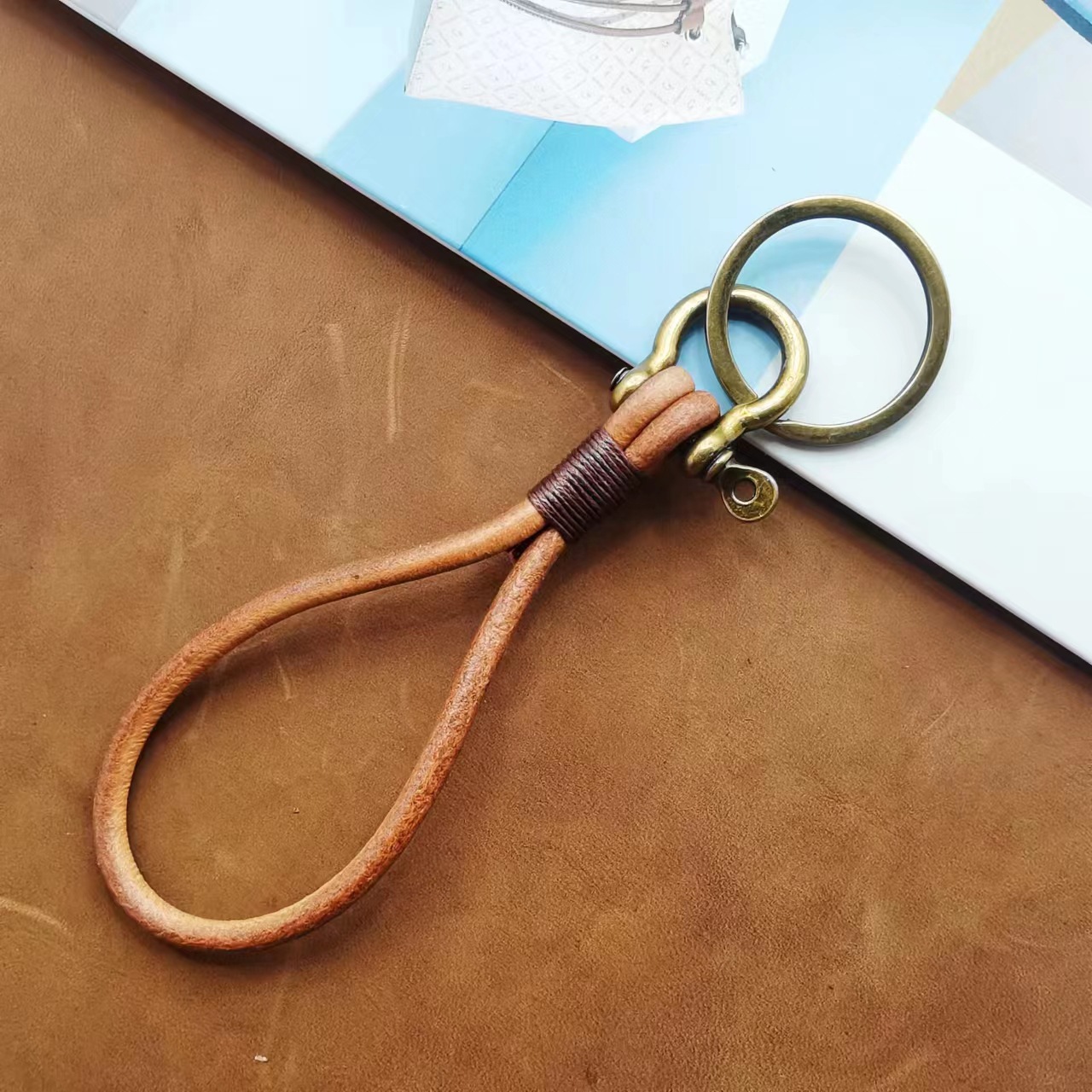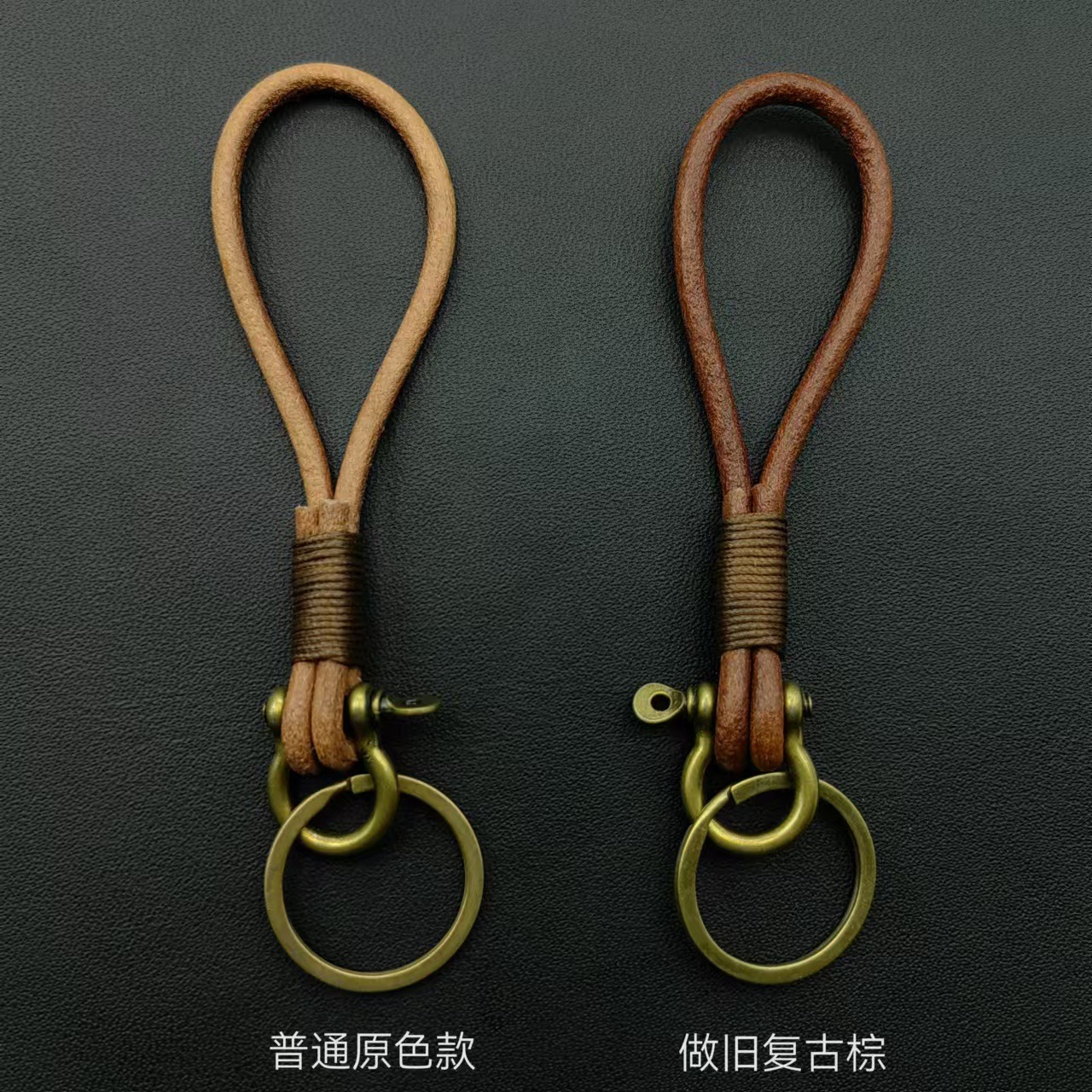 超级火爆手工碱水结面包皮绳钥匙扣配件复古汽车真皮绳钥匙圈批发