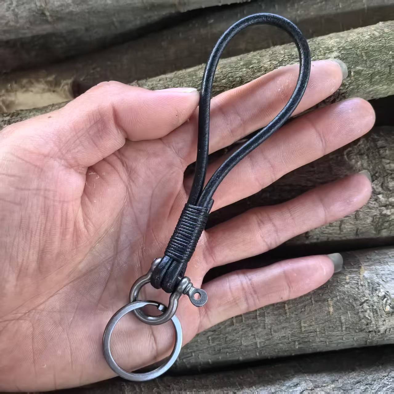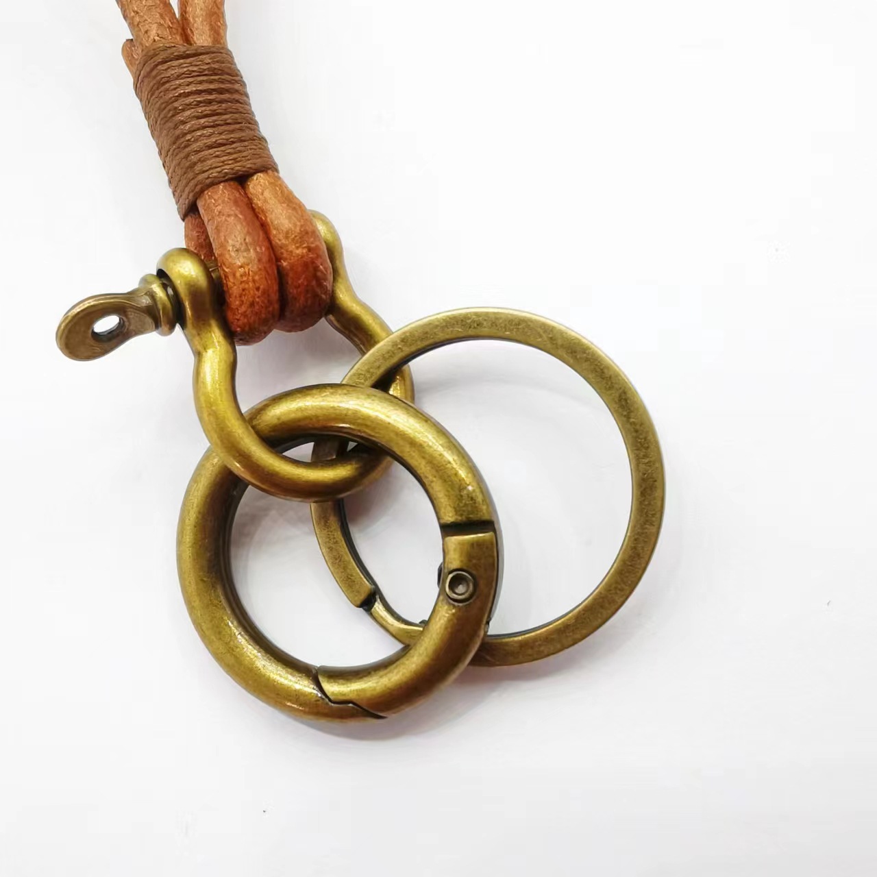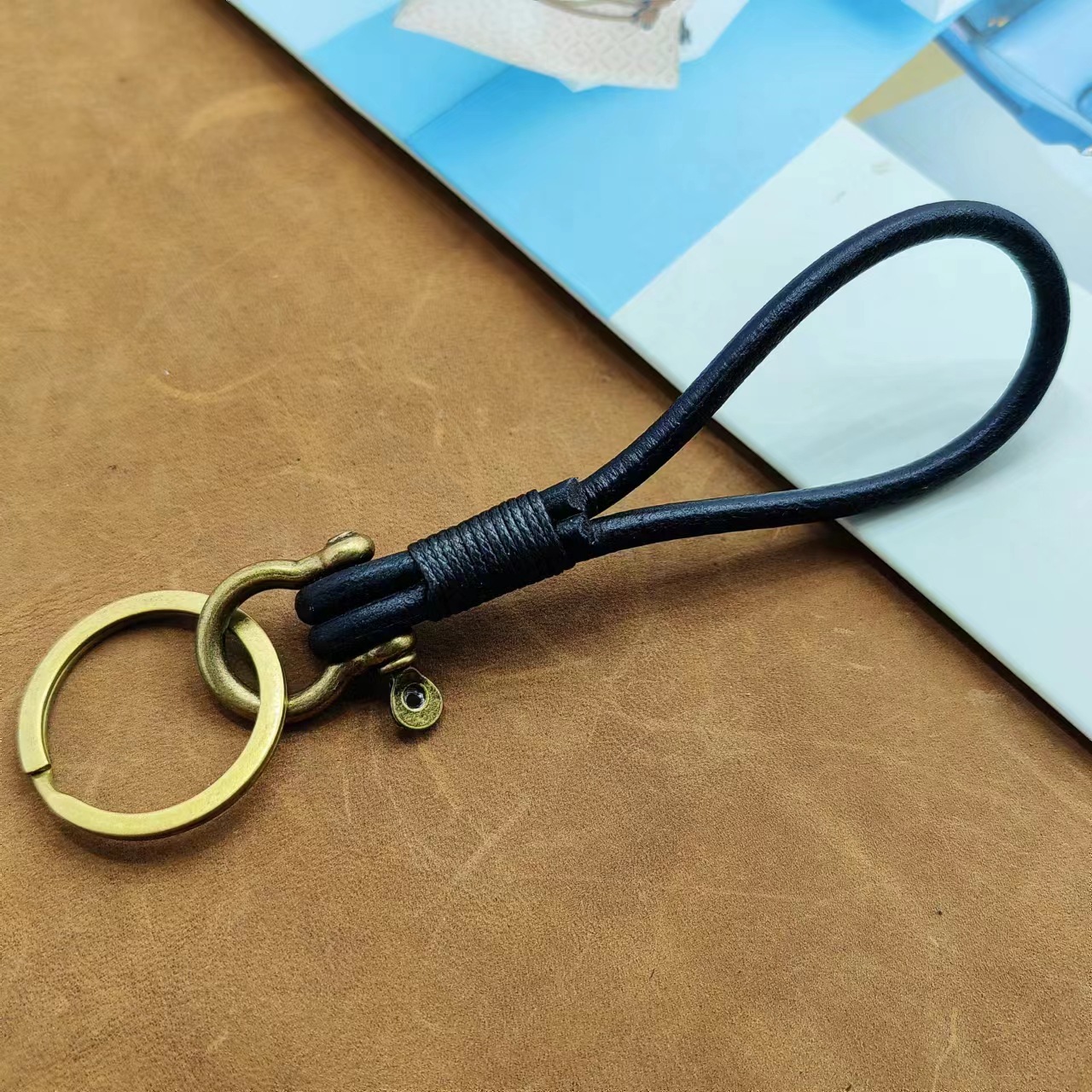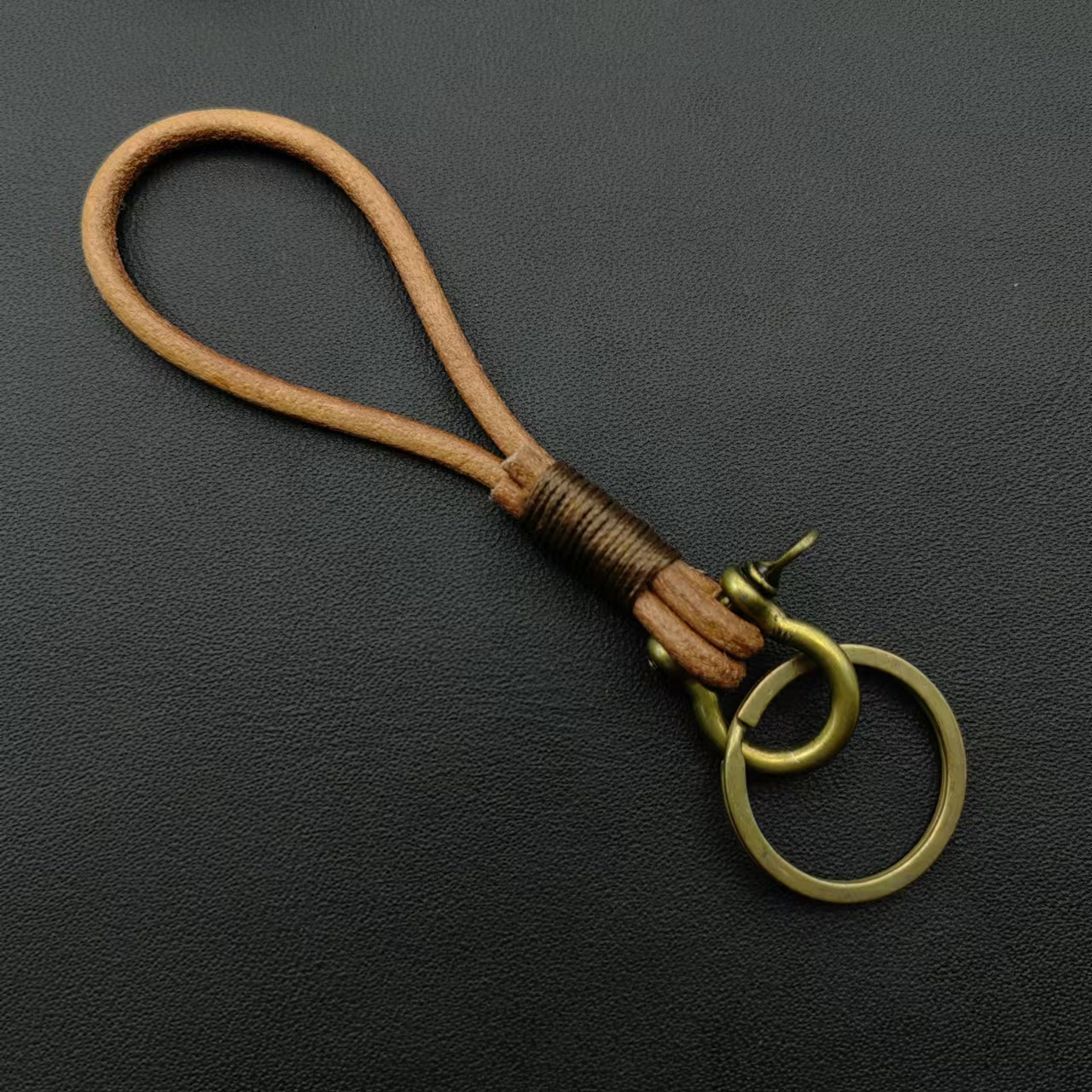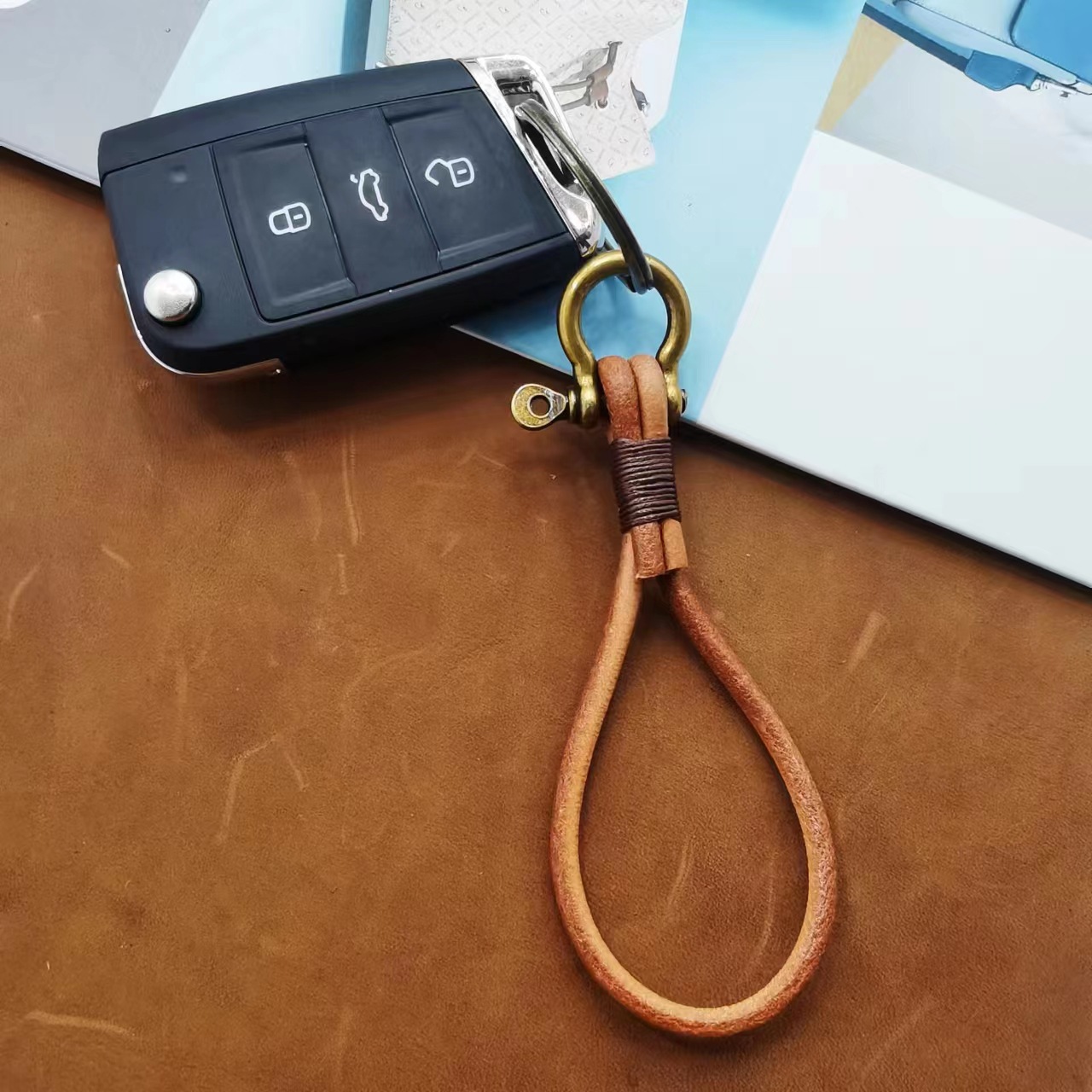 超级火爆手工碱水结面包皮绳钥匙扣配件复古汽车真皮绳钥匙圈批发