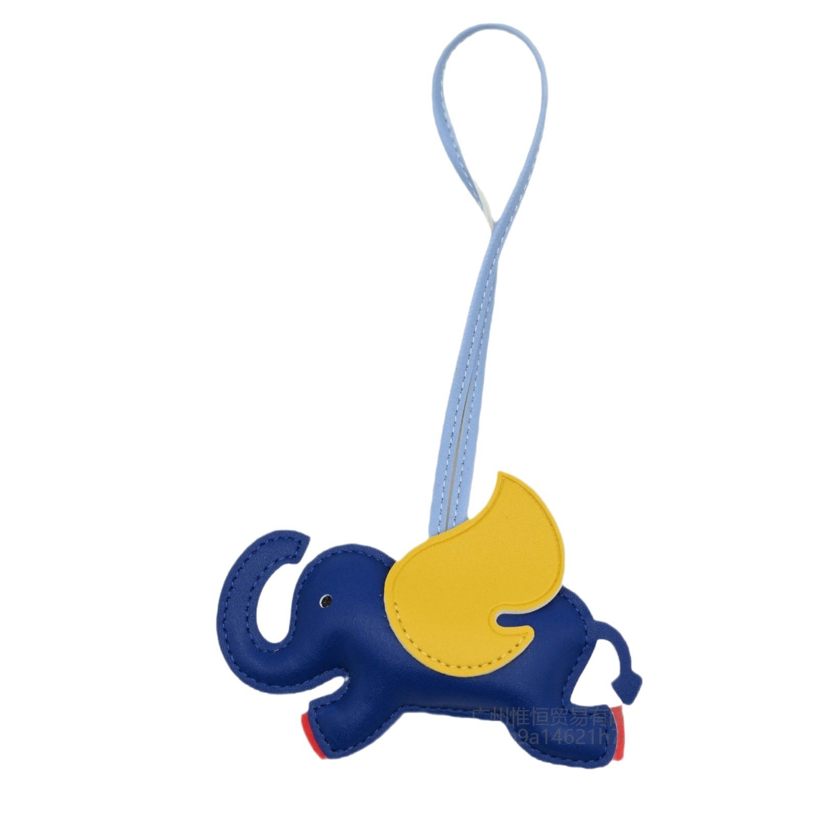 小飞象挂件天使翅膀小象包包挂饰可爱钥匙扣皮革挂坠撞色配饰批发