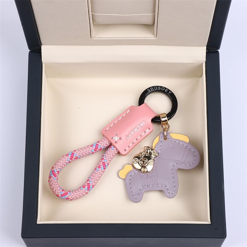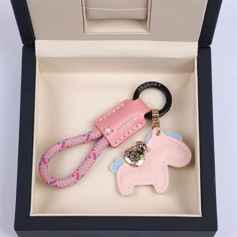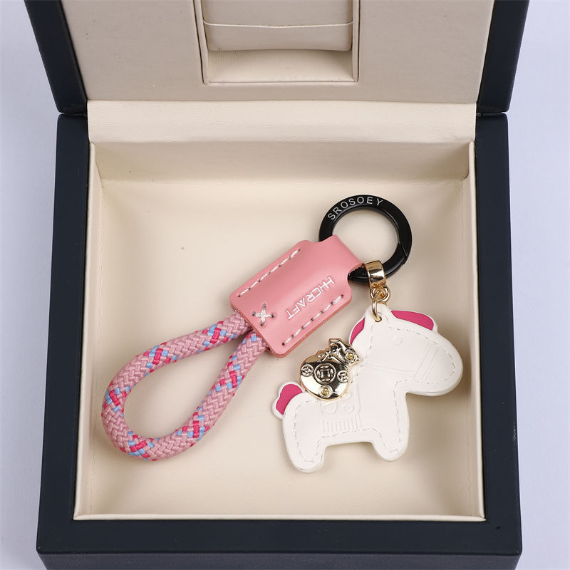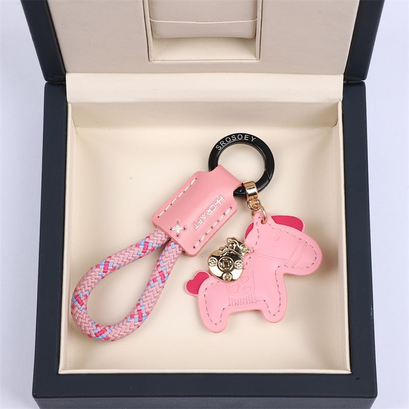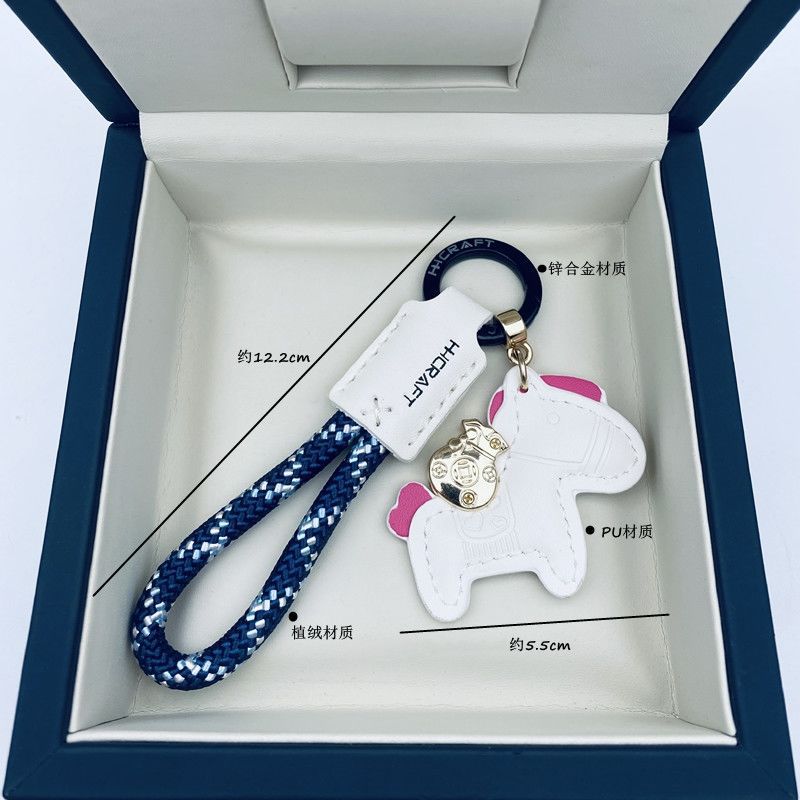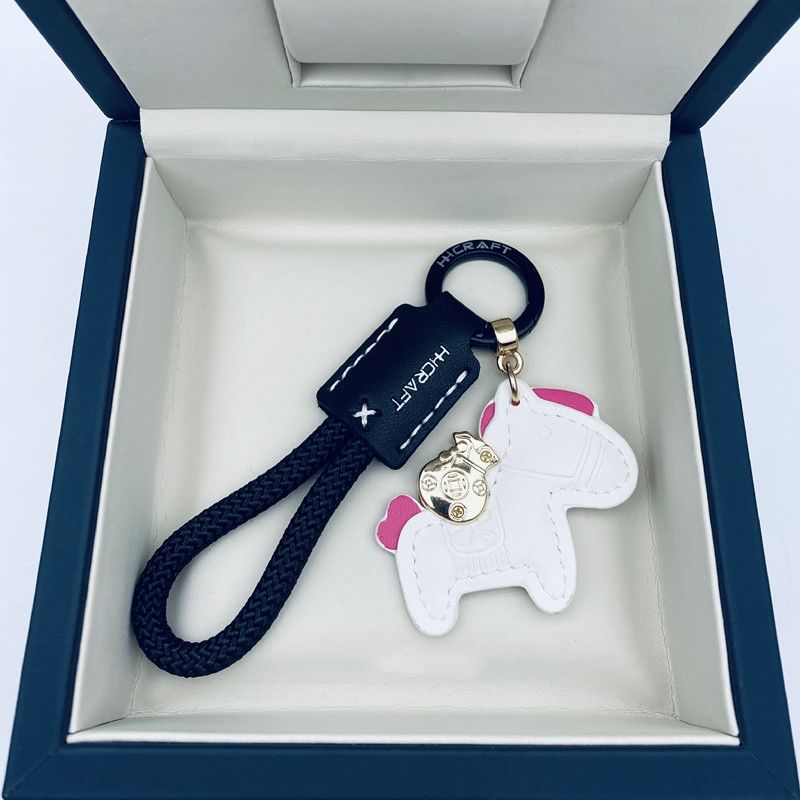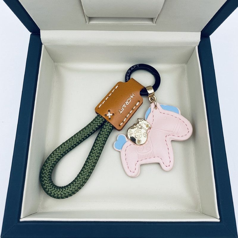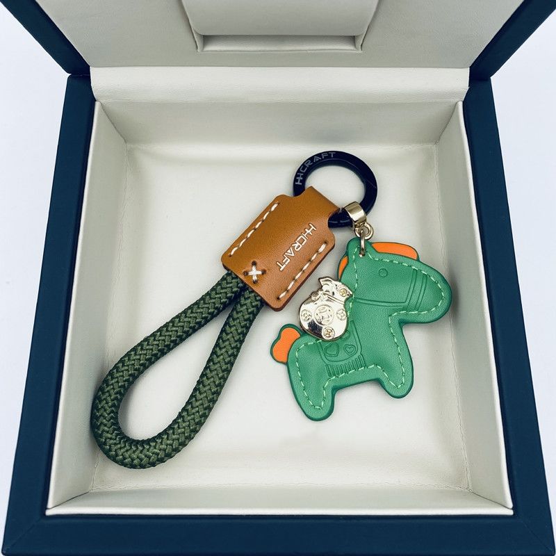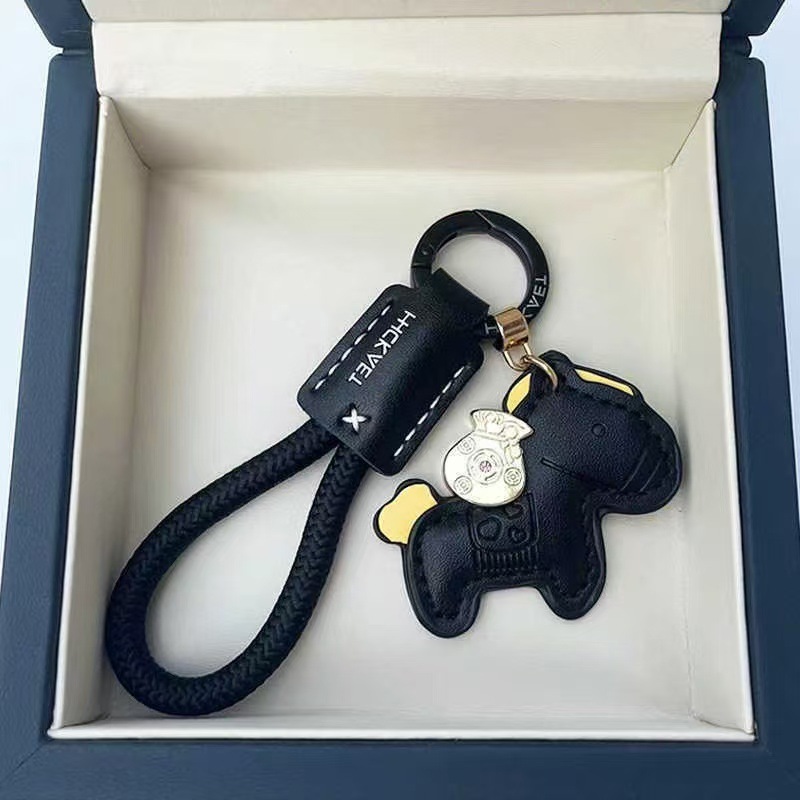马上有钱手工牛皮革汽车钥匙扣挂件精致简约个性男女情侣钥匙链绳