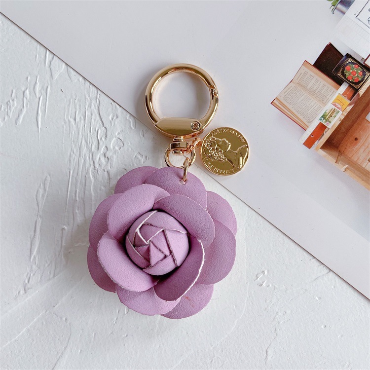 时尚皮质山茶花汽车钥匙扣 可爱花朵背包挂件配饰 闺蜜钥匙圈环女