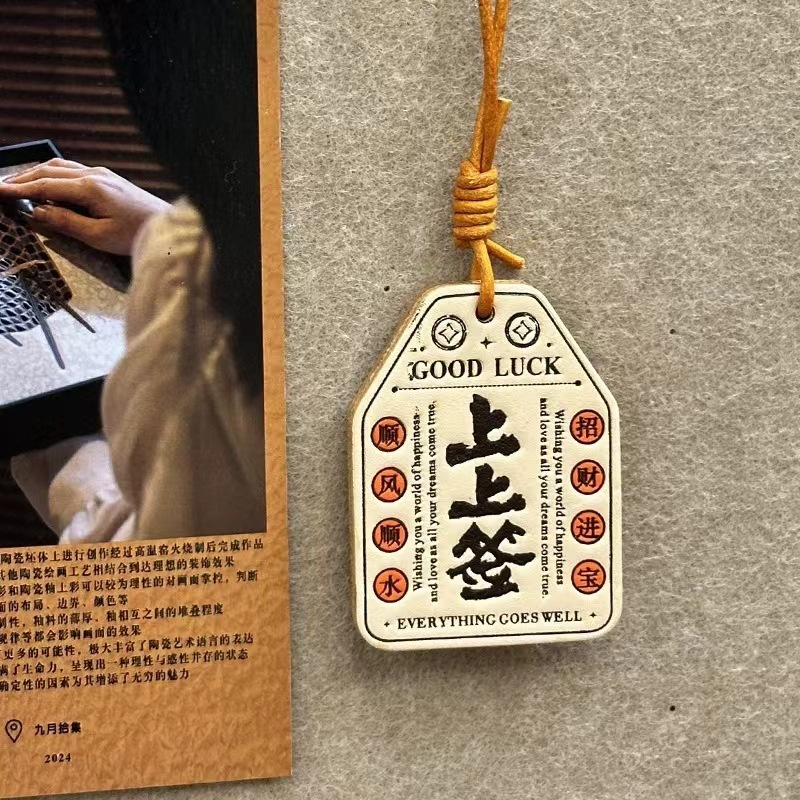 遇上即是上上签 皮质挂件国风寓意吉祥平安高级手工钥匙扣包挂件