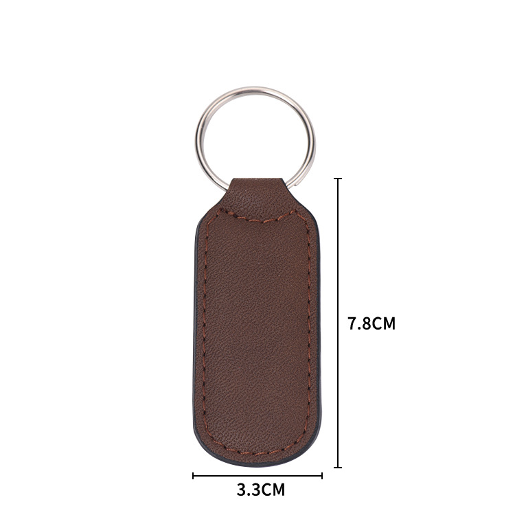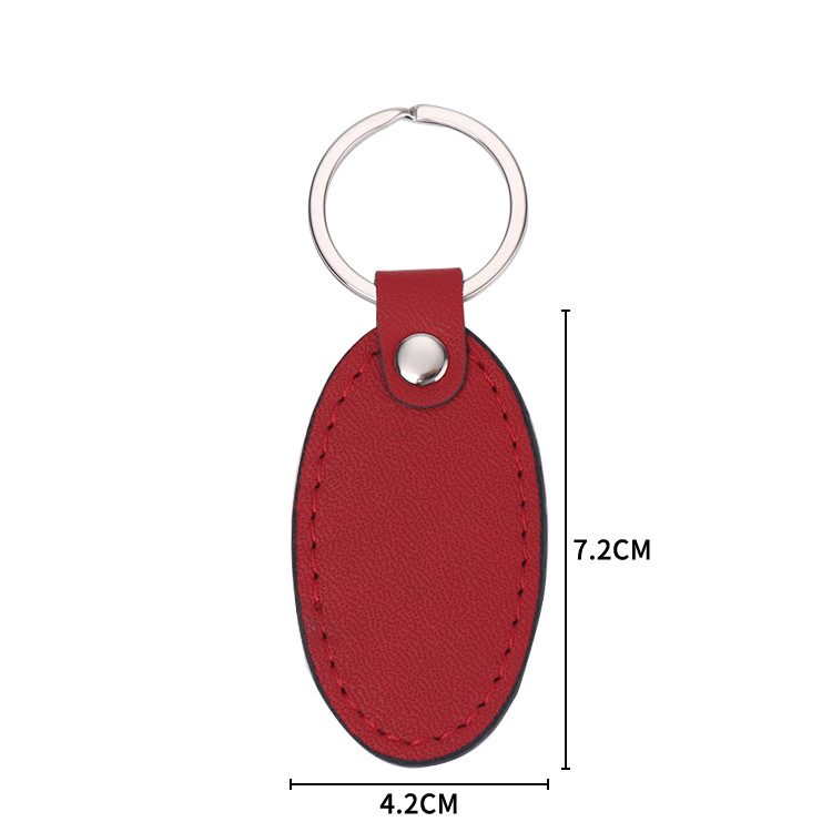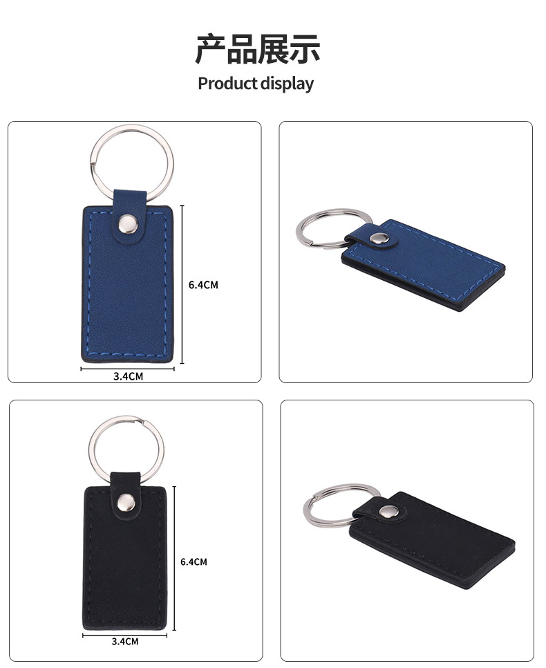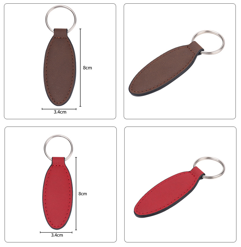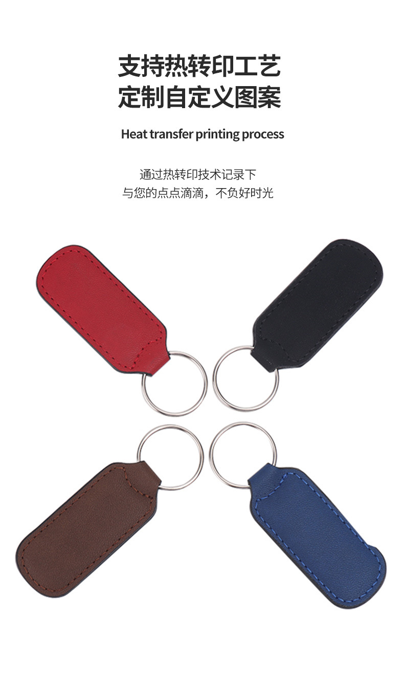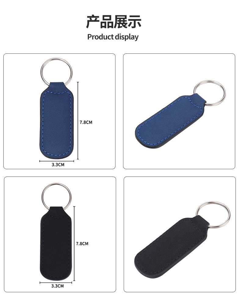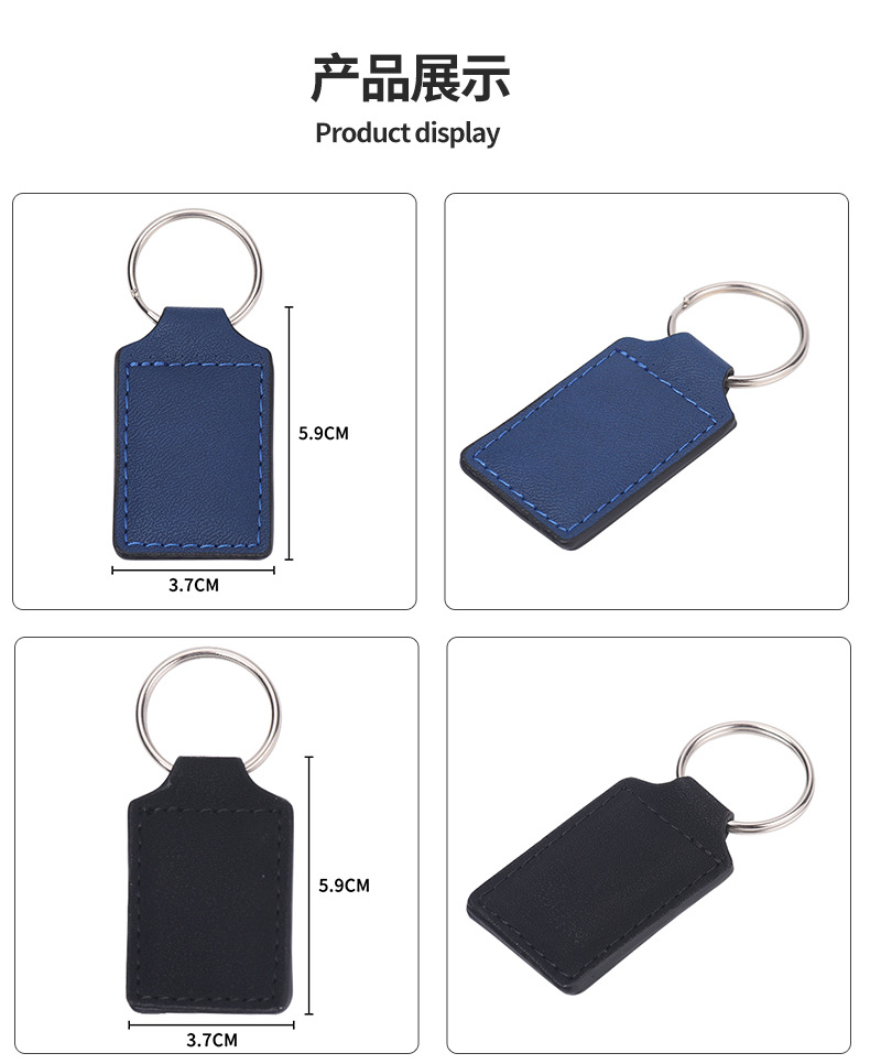 镭射pu皮长方形双面钥匙扣皮带空白钥匙扣皮质圆形diy印图钥匙扣
