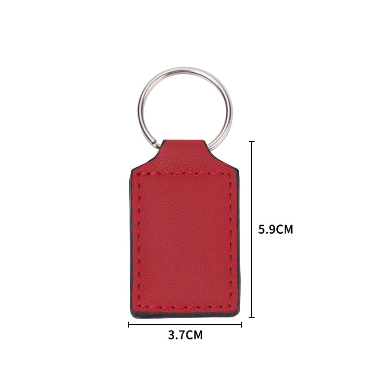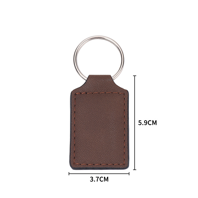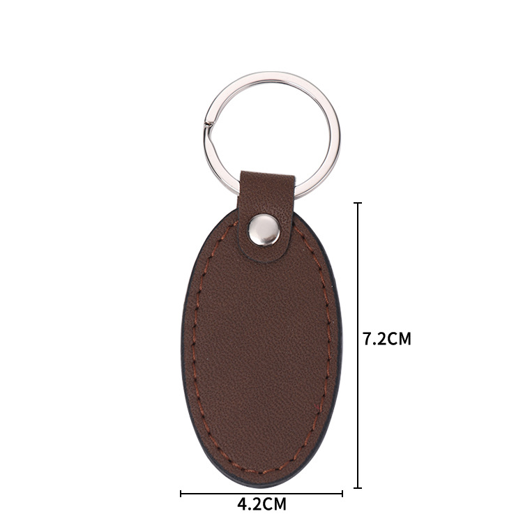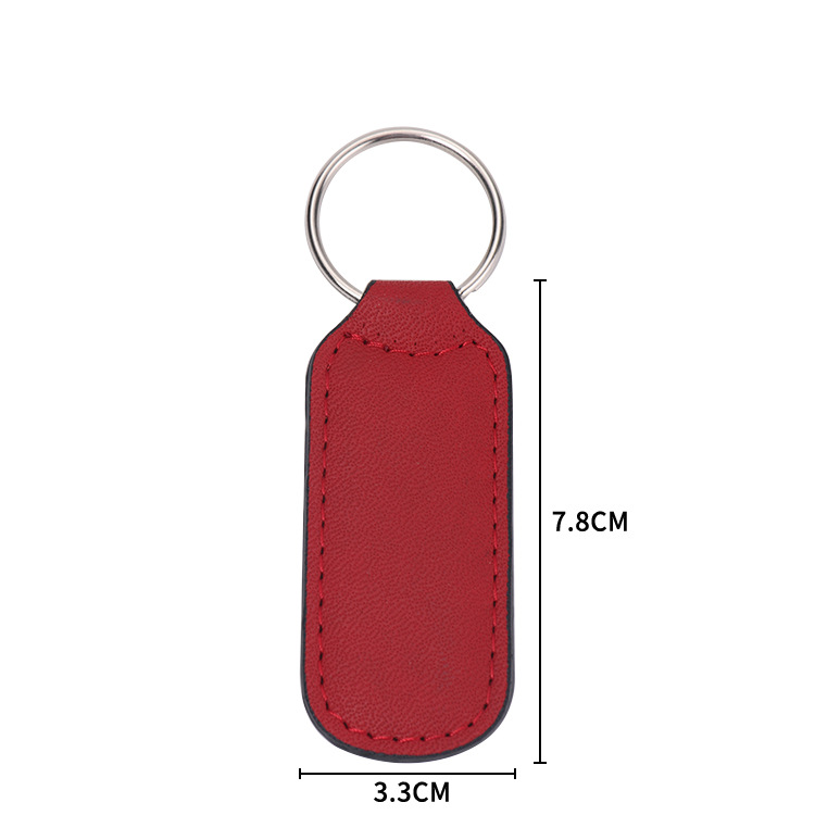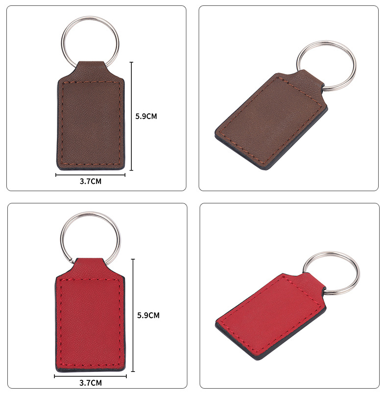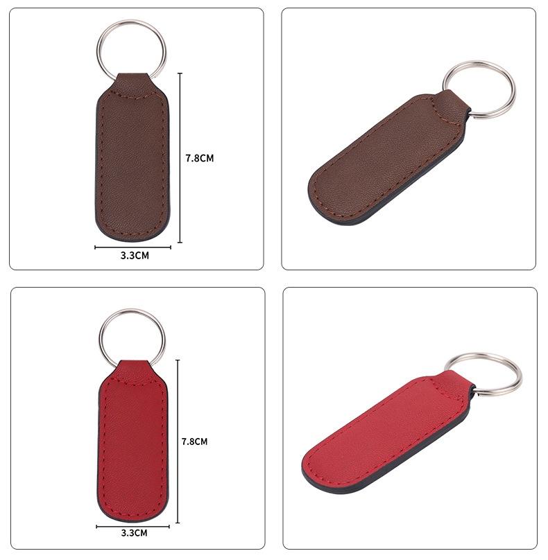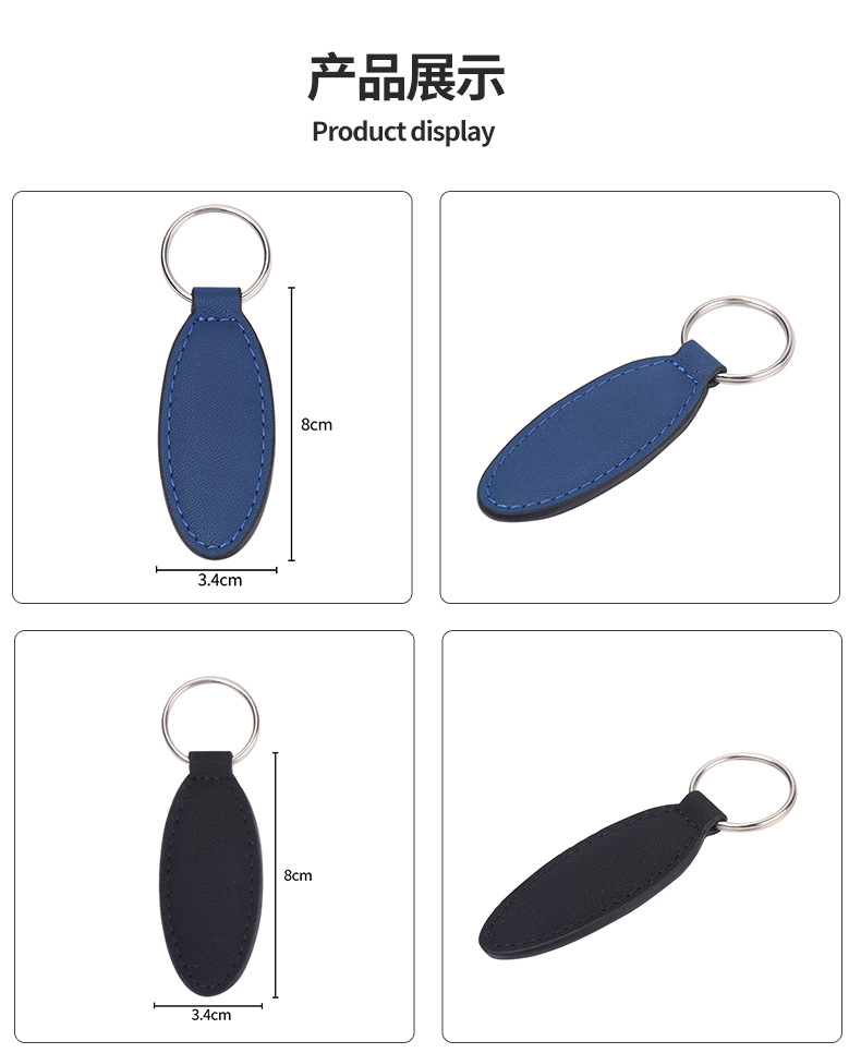 镭射pu皮长方形双面钥匙扣皮带空白钥匙扣皮质圆形diy印图钥匙扣