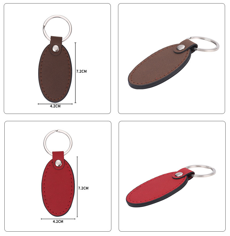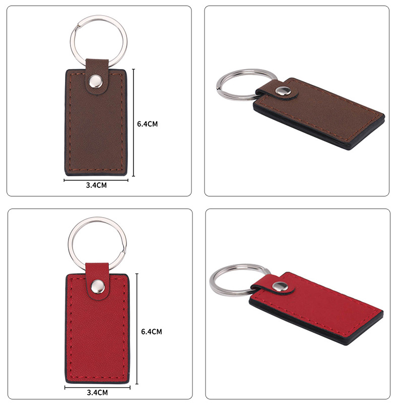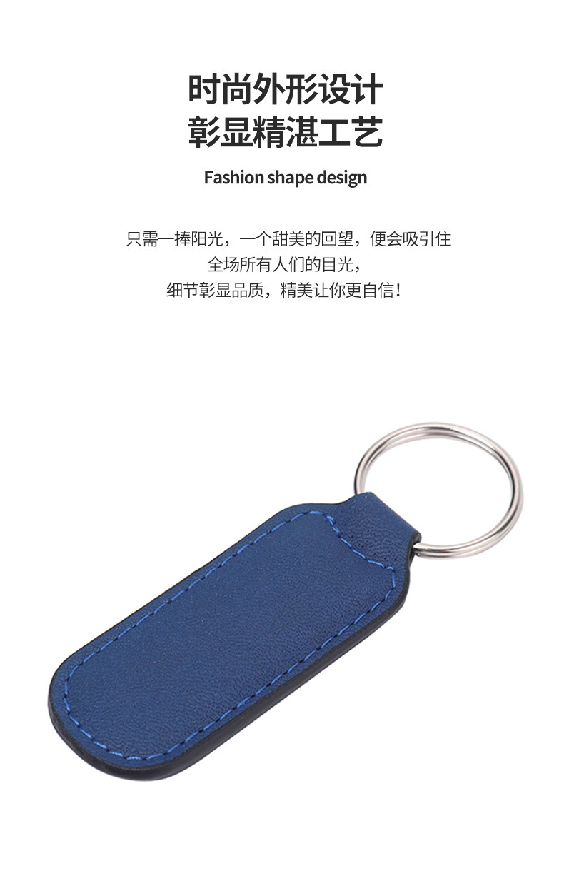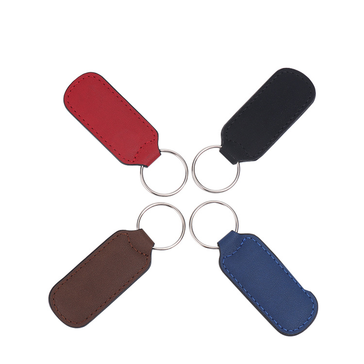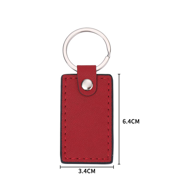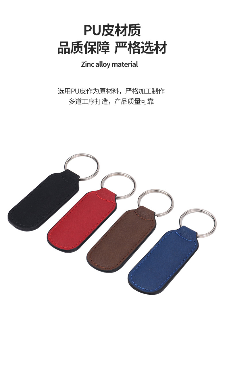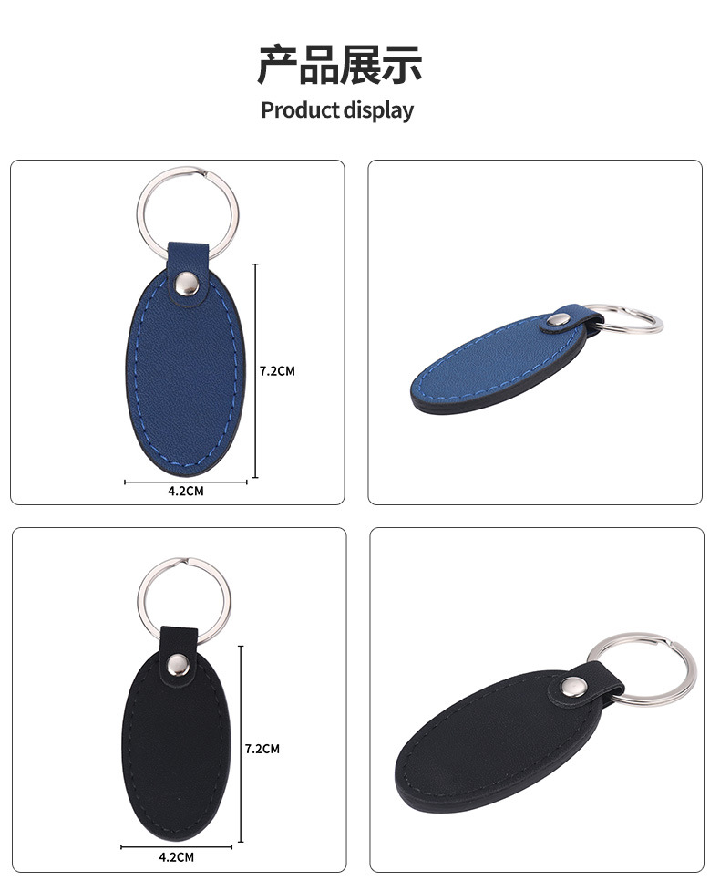 镭射pu皮长方形双面钥匙扣皮带空白钥匙扣皮质圆形diy印图钥匙扣