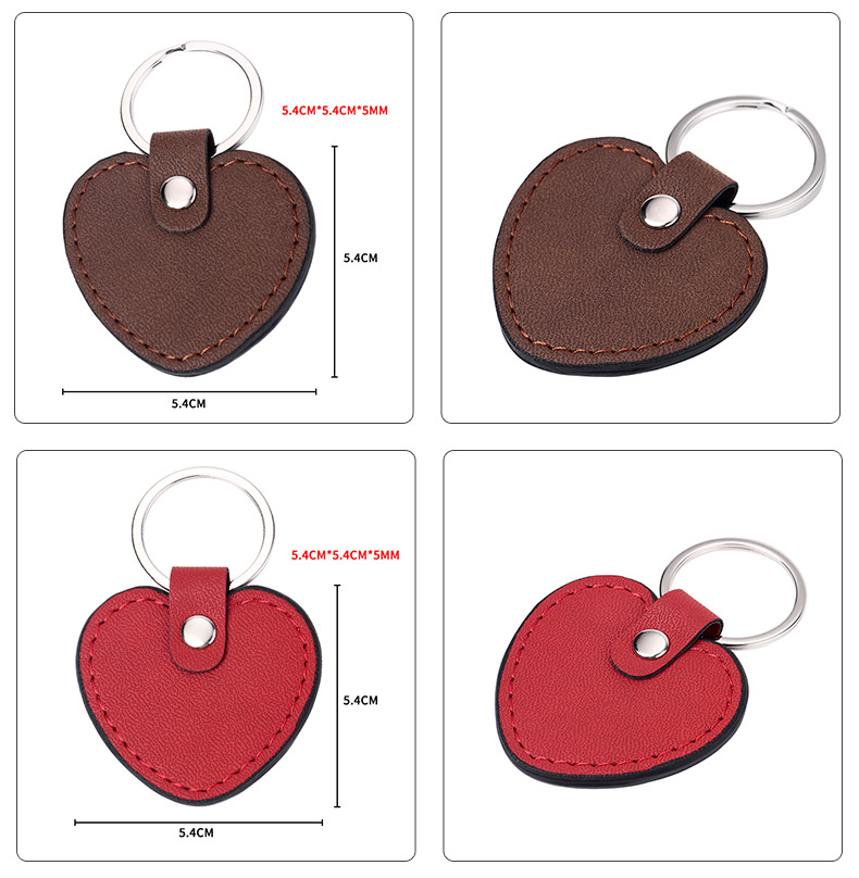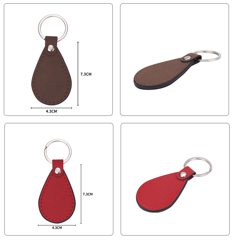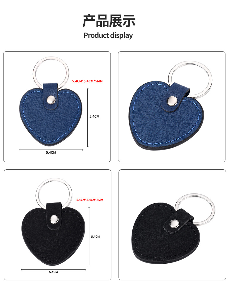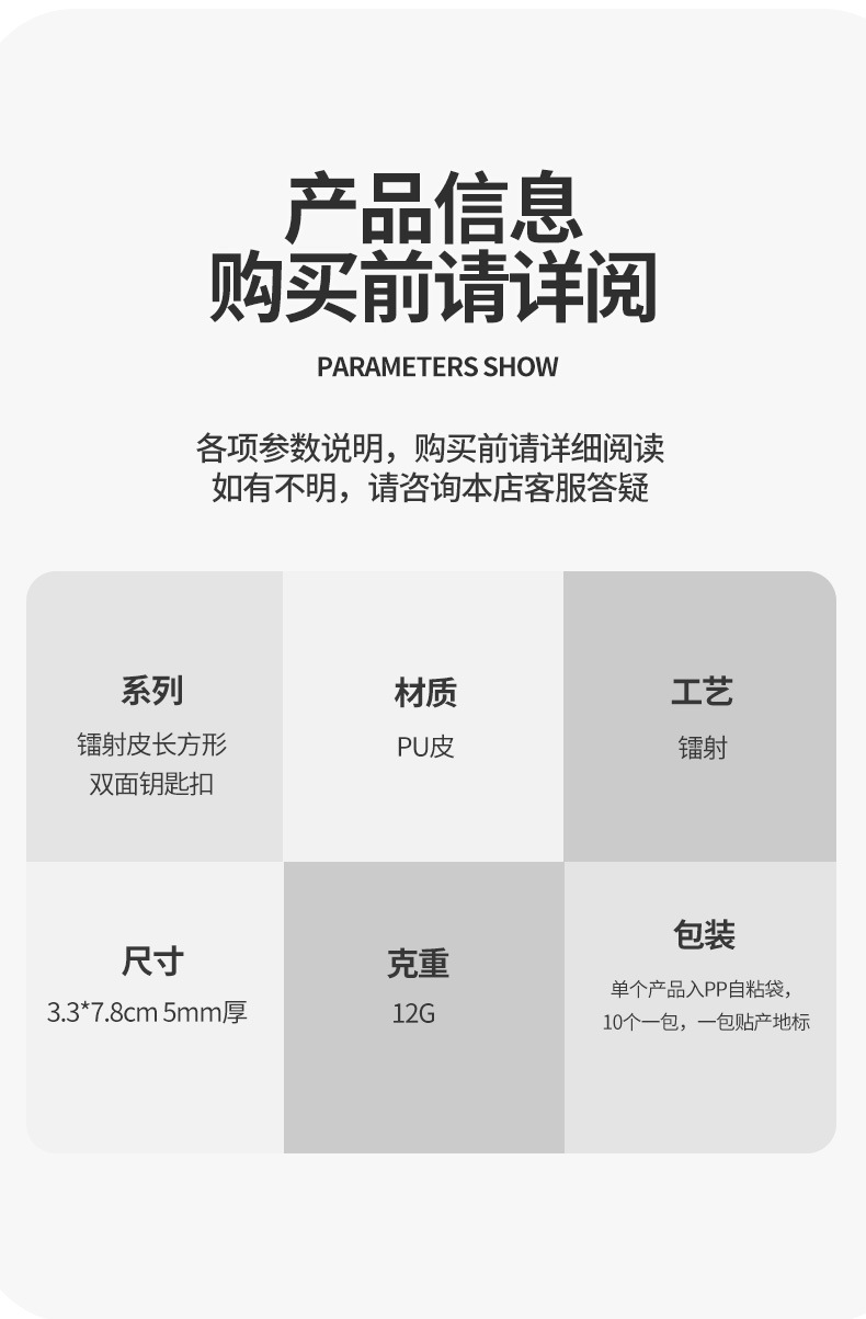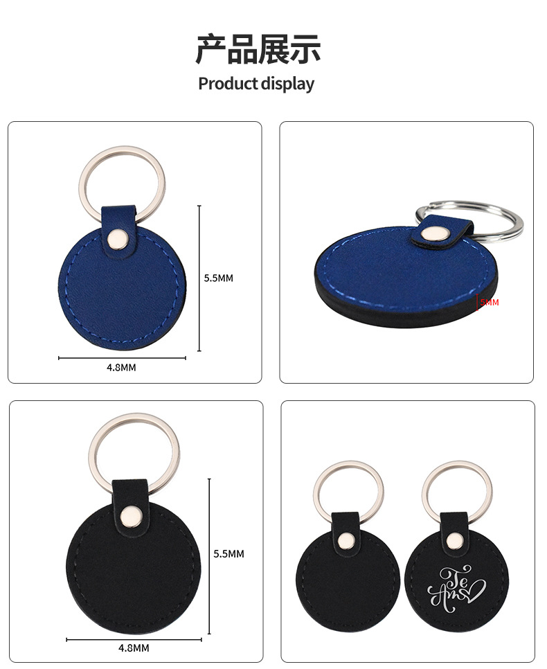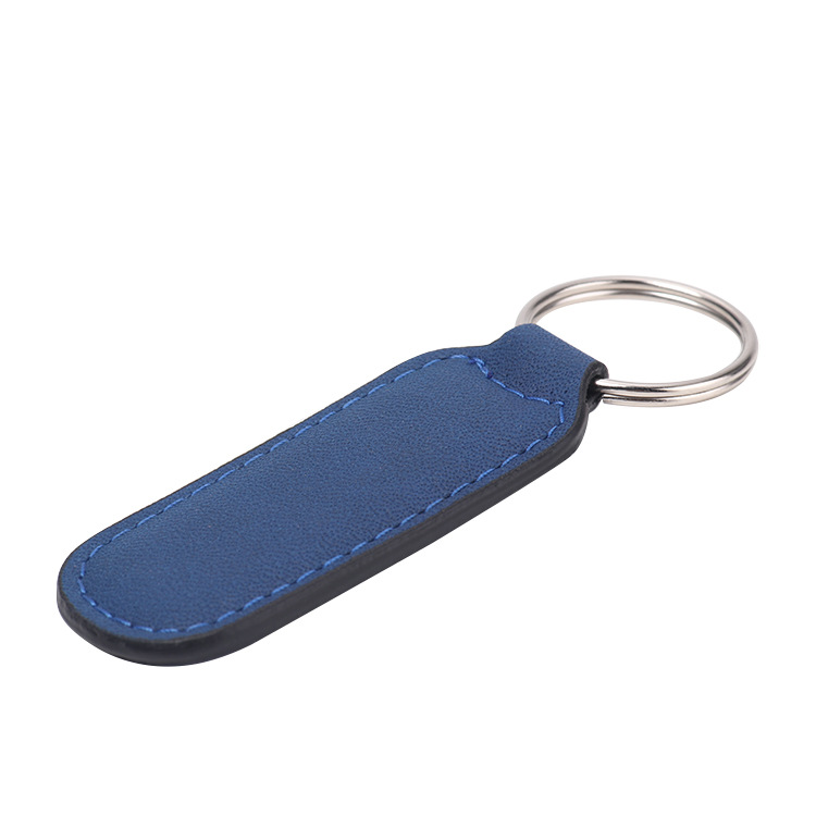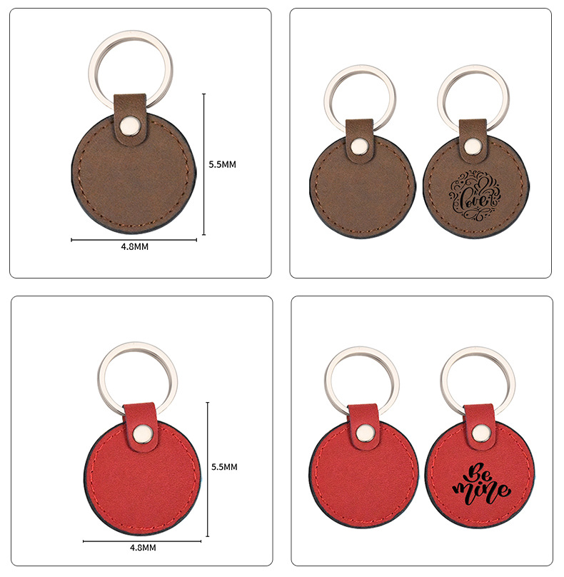 镭射pu皮长方形双面钥匙扣皮带空白钥匙扣皮质圆形diy印图钥匙扣