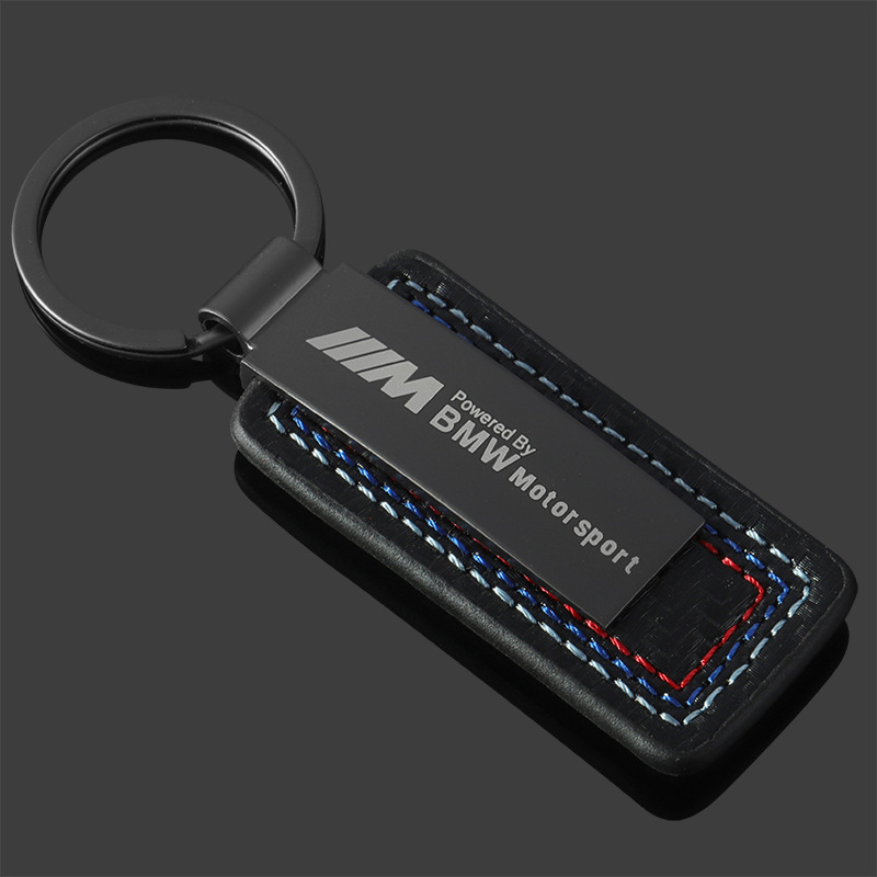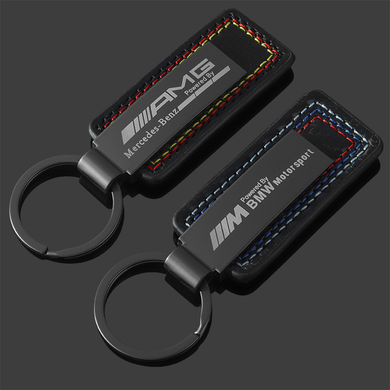 M三色运动标奔驰AMG真皮碳纤维纹汽车改装车标金属钥匙扣圈环挂件