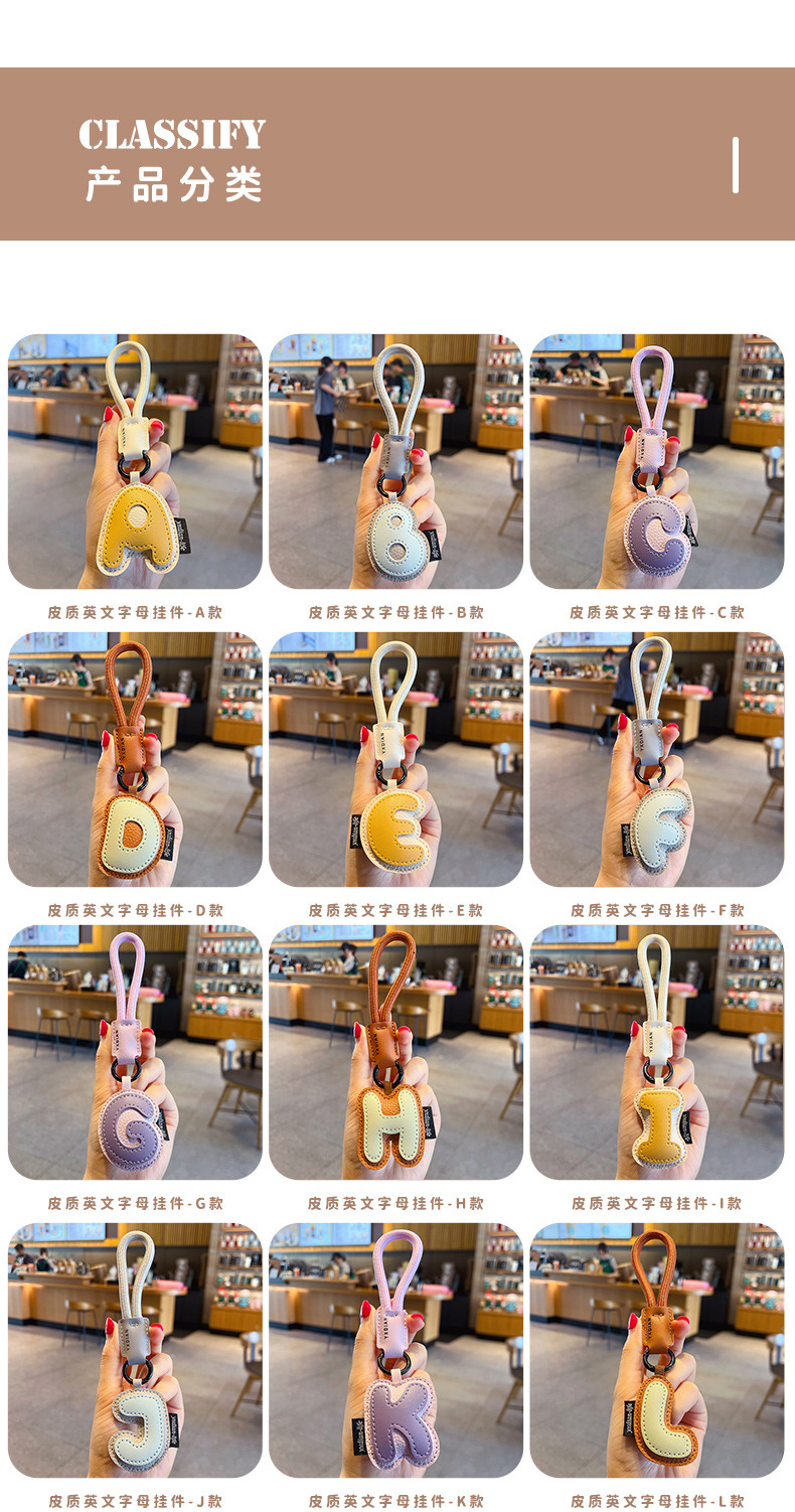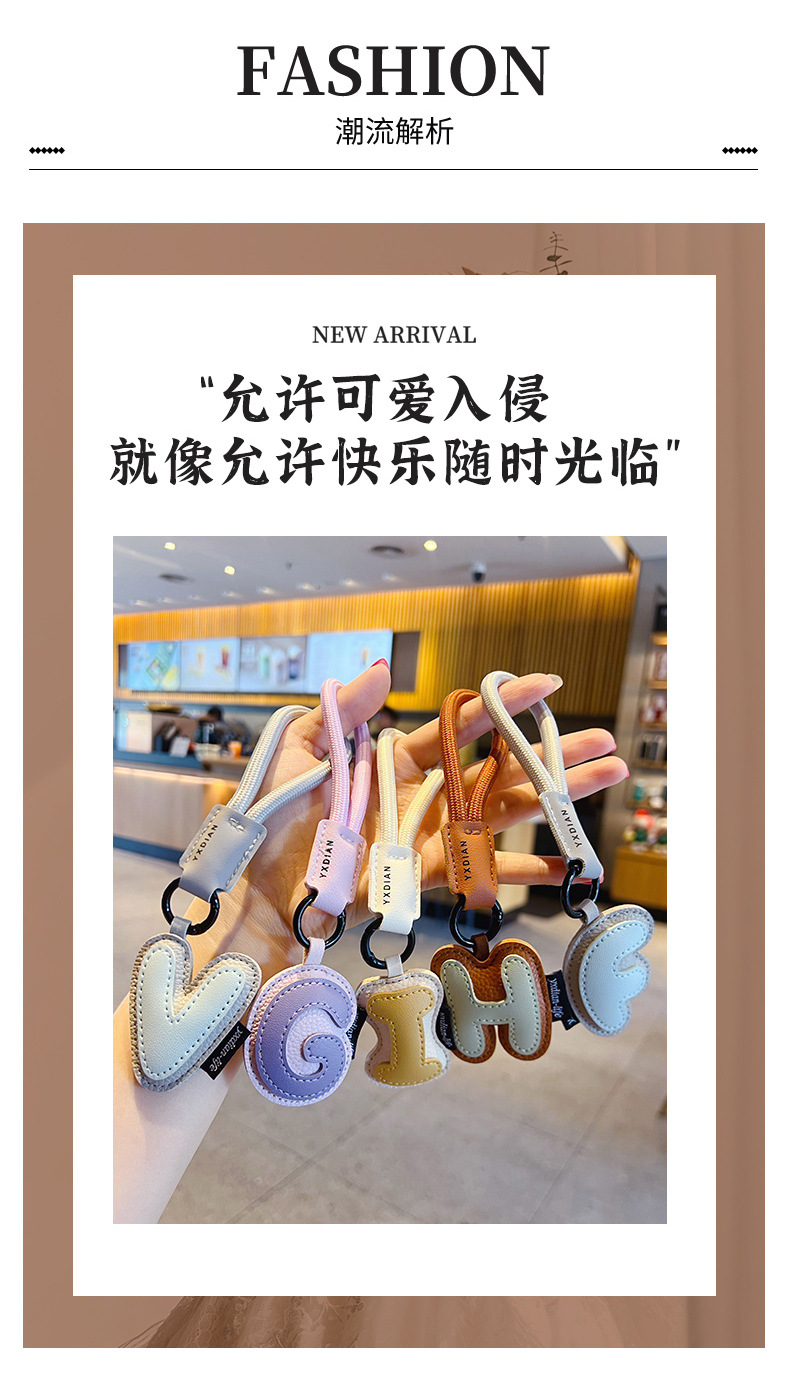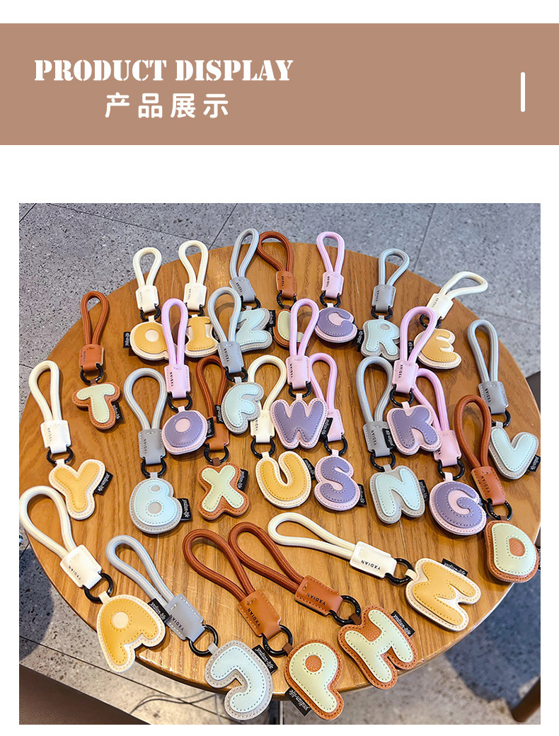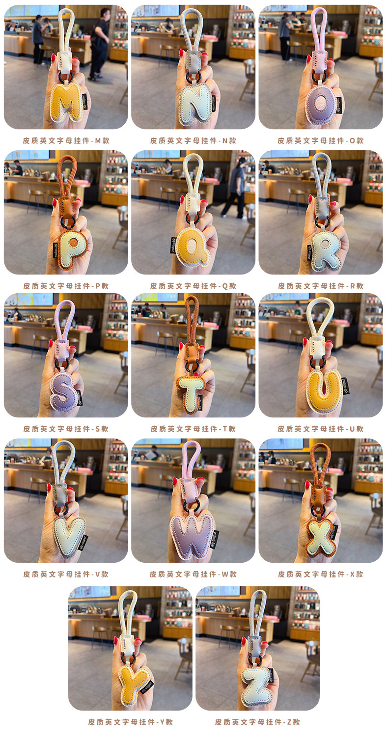 创意PU皮革26英文字母钥匙扣挂件简约情侣汽车包包钥匙链挂饰礼品