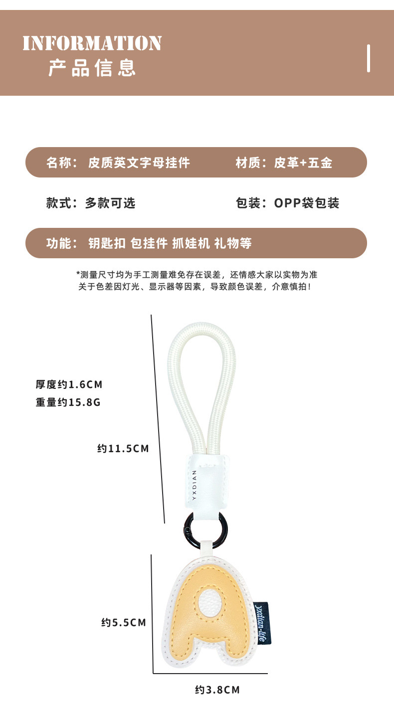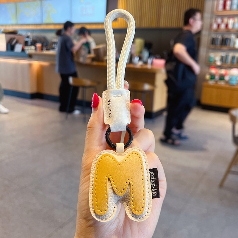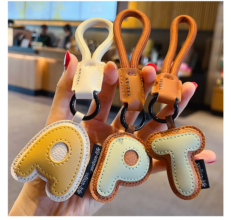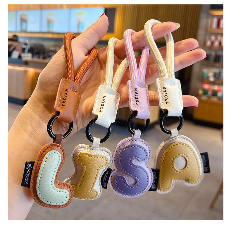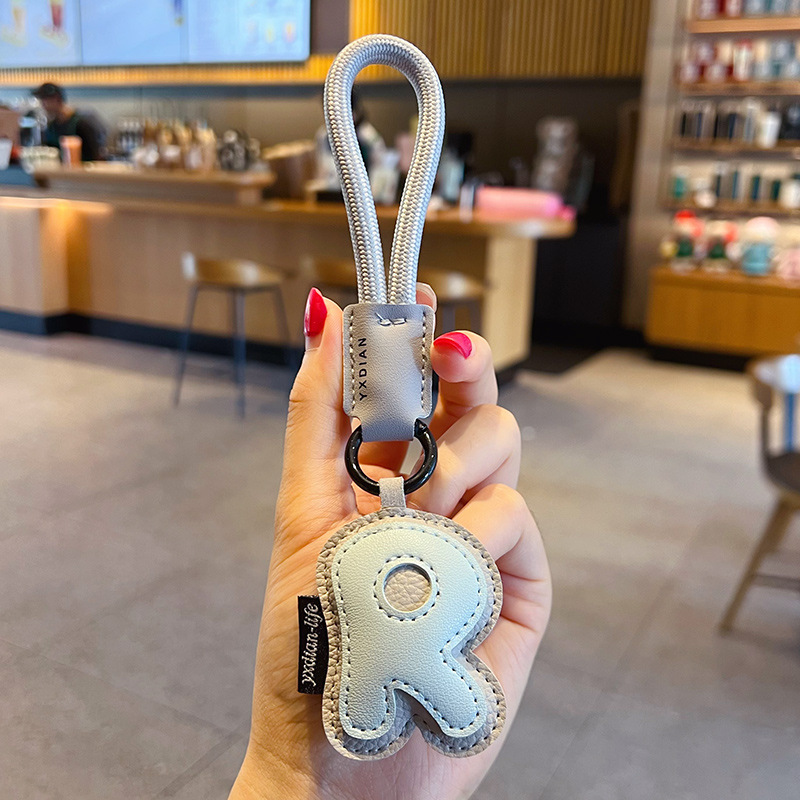 创意PU皮革26英文字母钥匙扣挂件简约情侣汽车包包钥匙链挂饰礼品