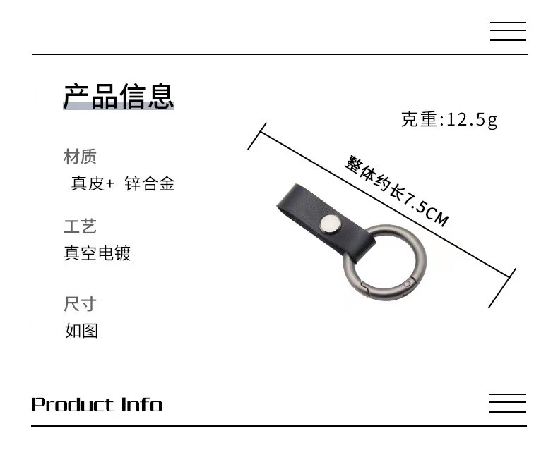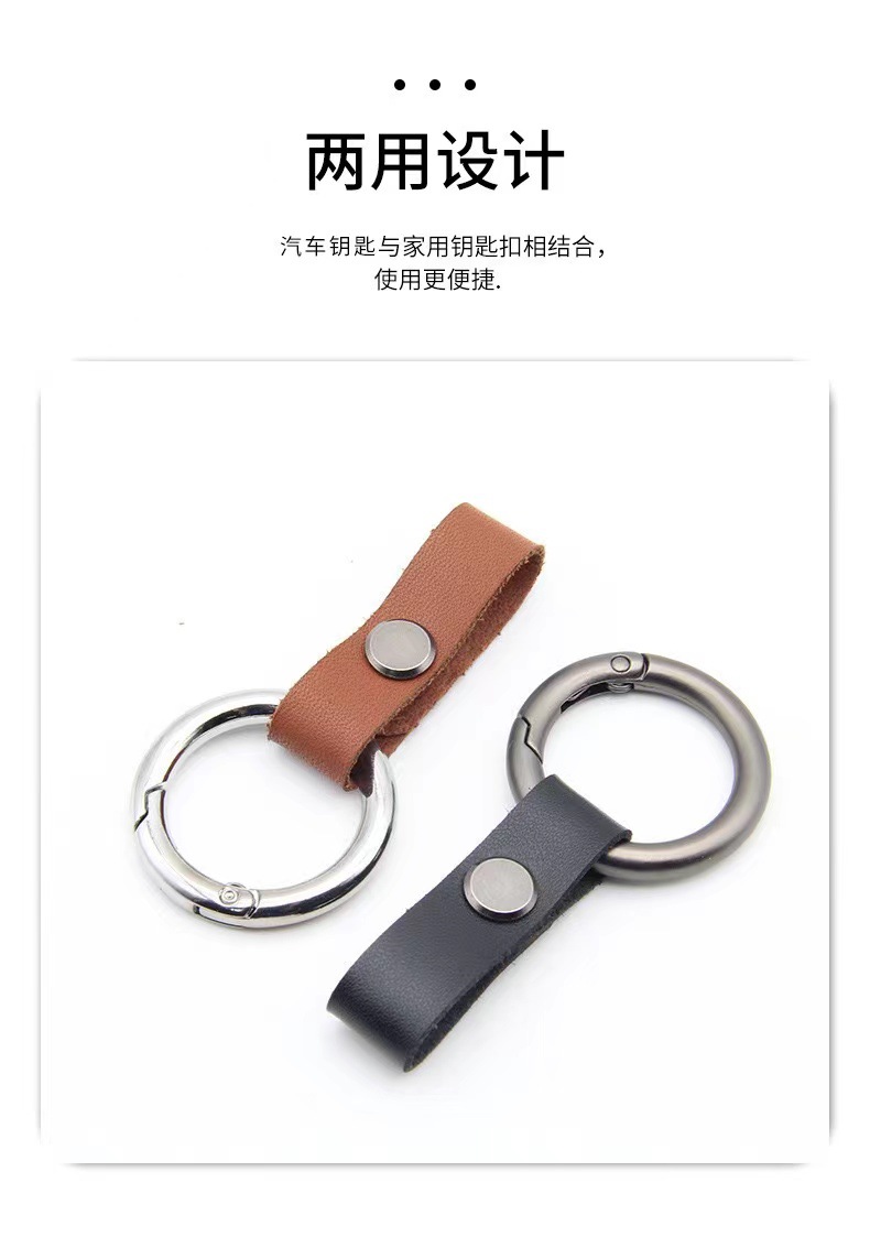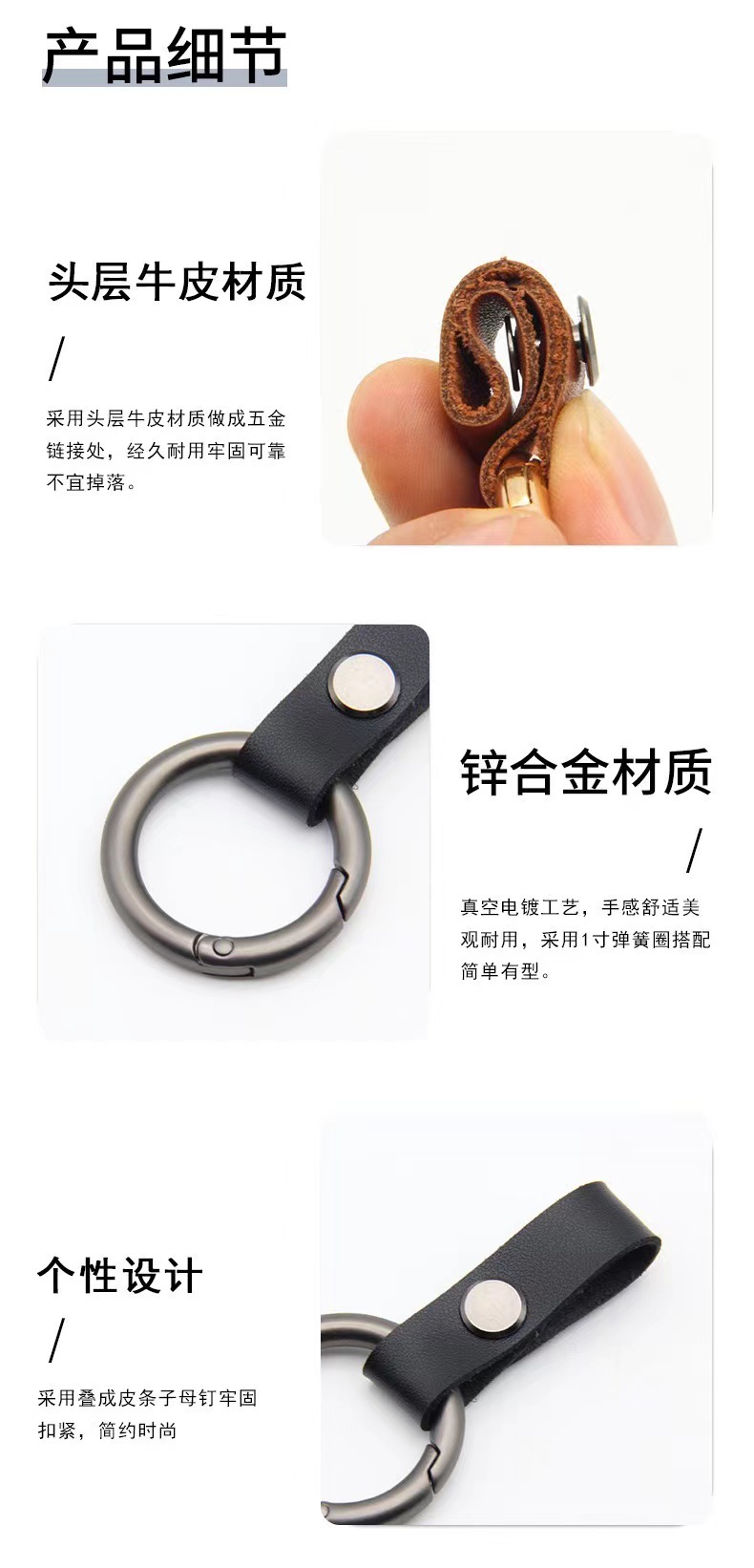 头层牛皮钥匙扣简约男士汽车钥匙扣金属弹簧圈diy挂件工厂批发