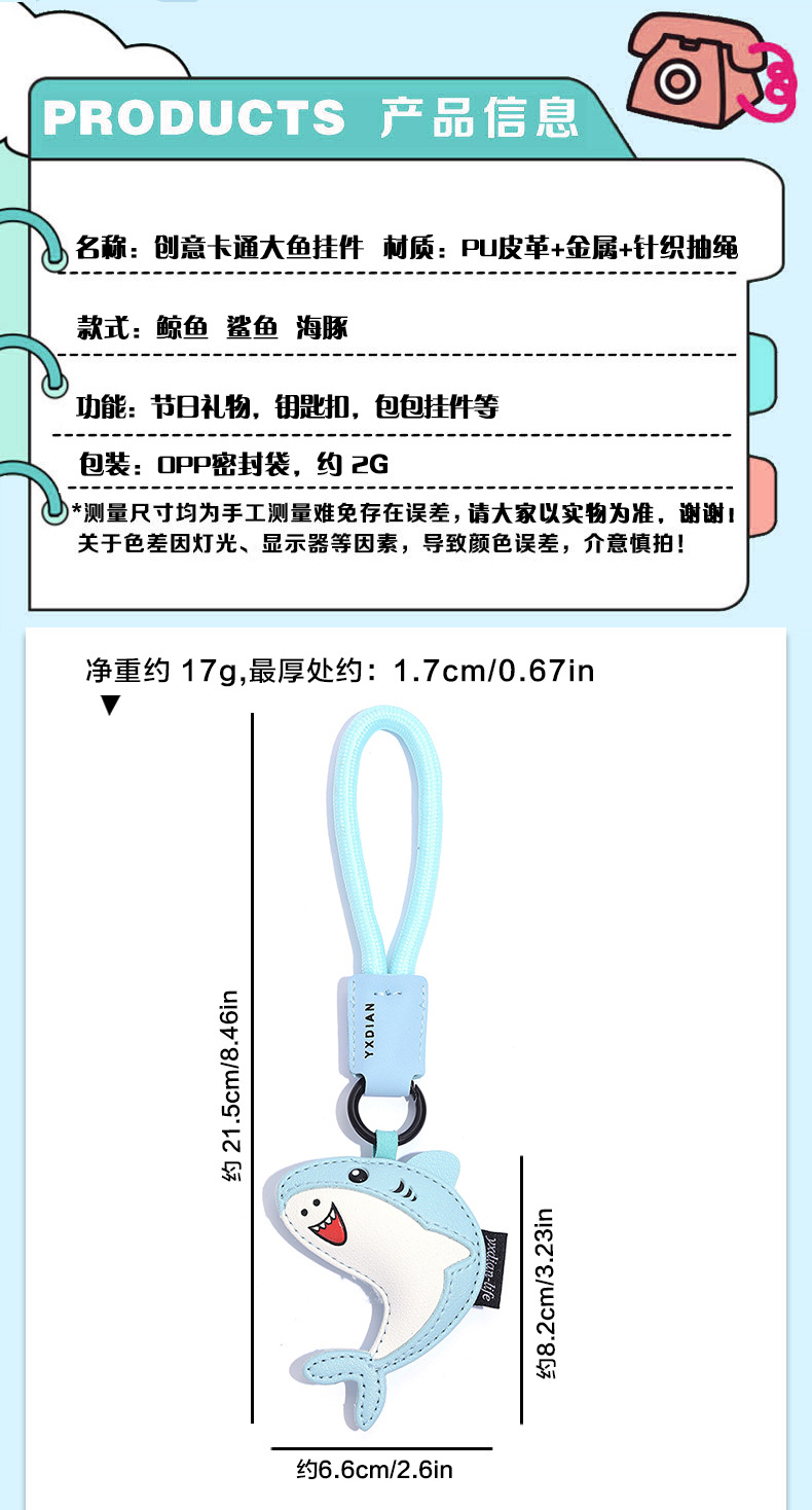 包包挂件原创钥匙扣鲨鱼海豚小鲸鱼皮质书包挂件礼品可批发团购