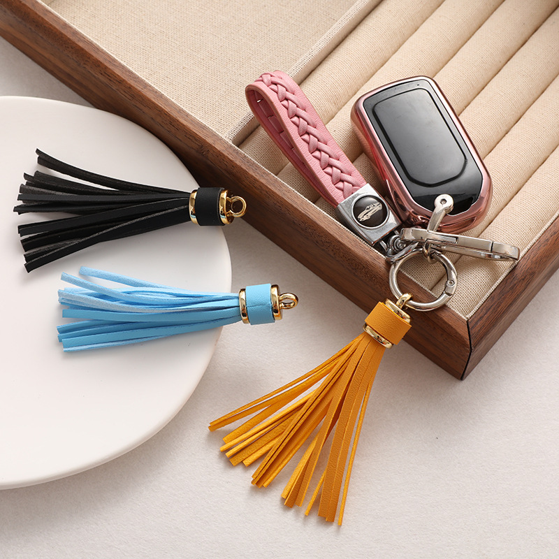 皮革大流苏金色吊钟包包挂件硅胶珠手串流苏皮钥匙扣配件节日礼物