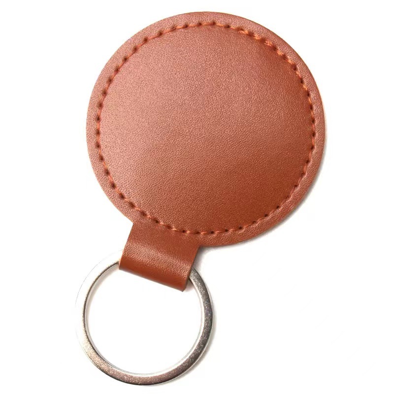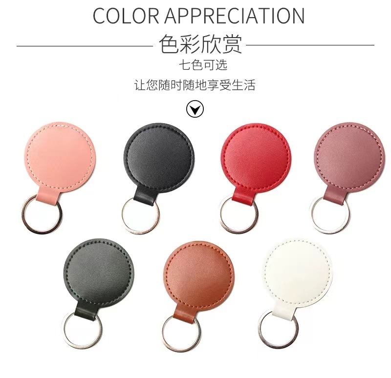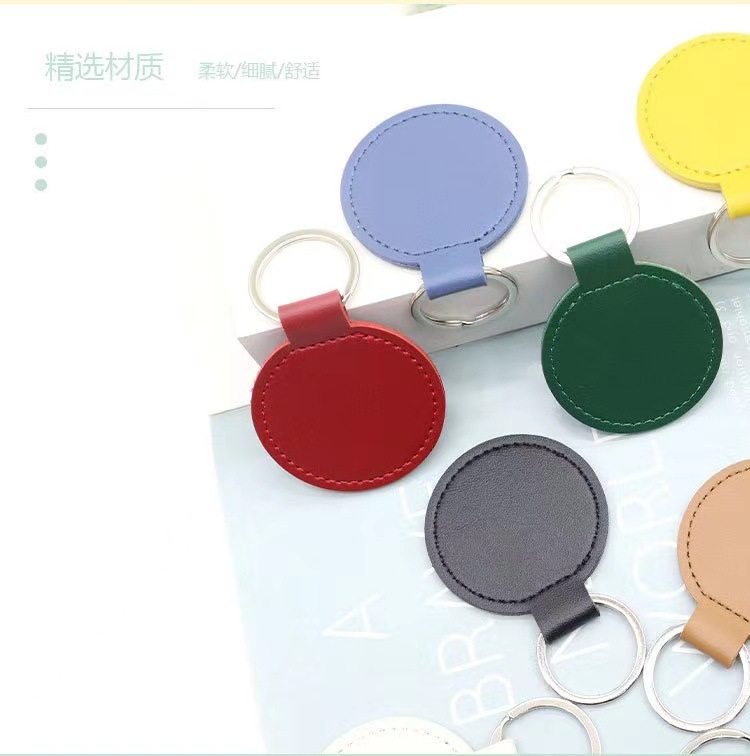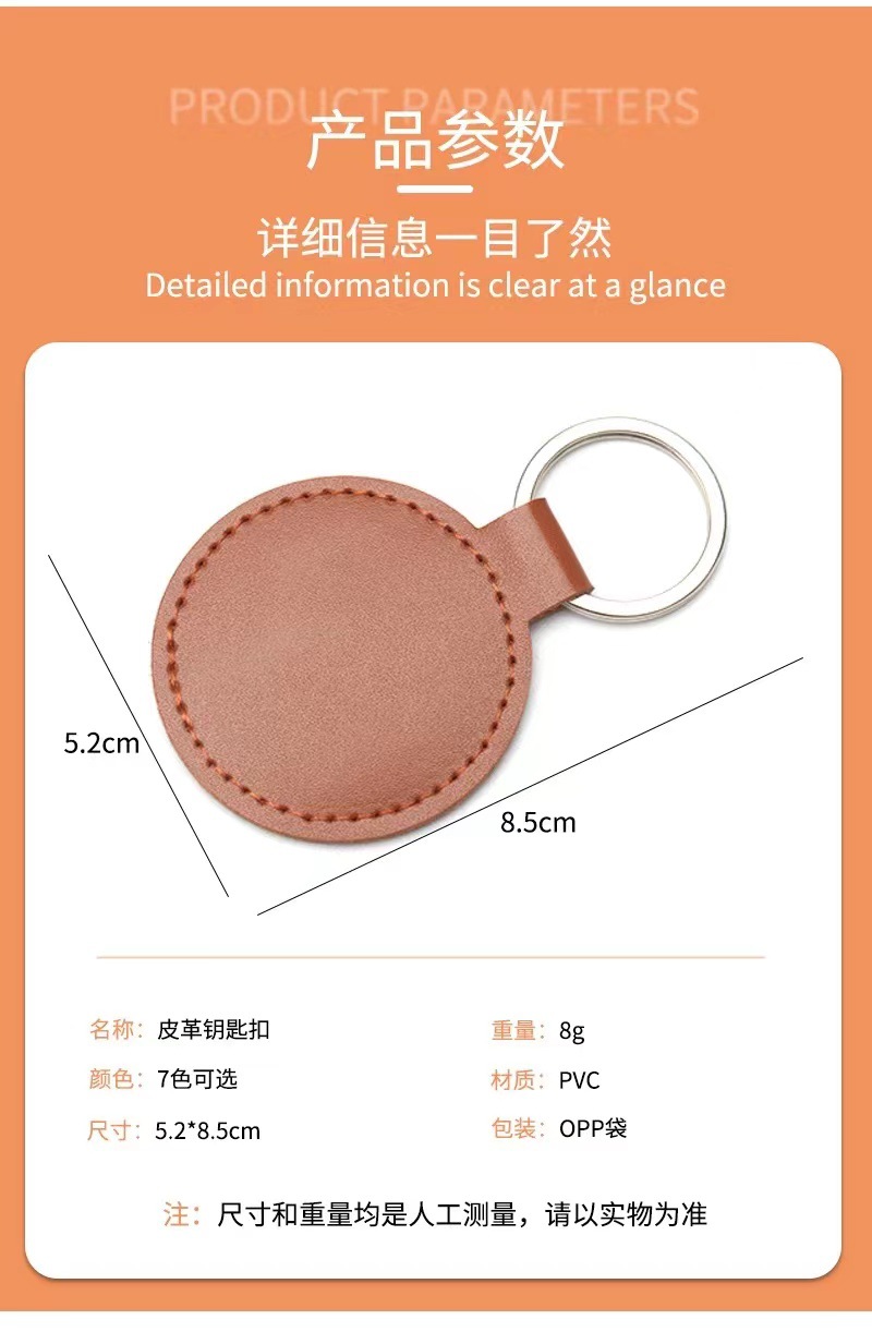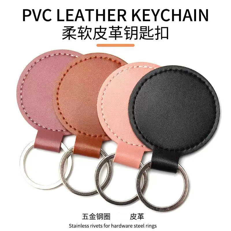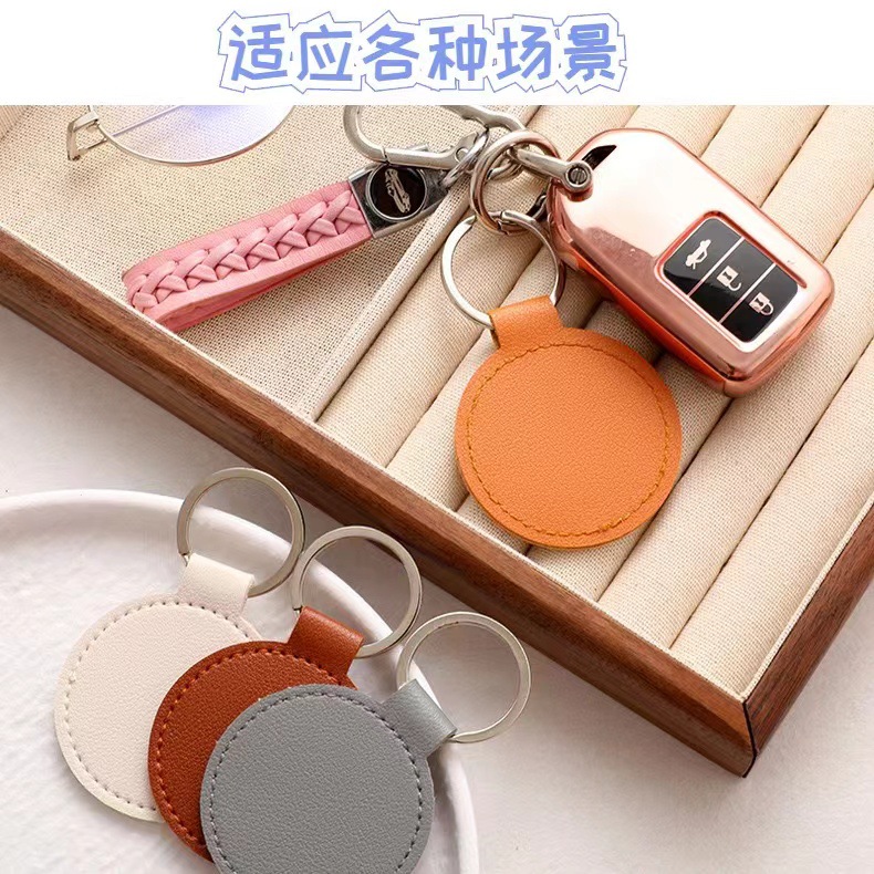 跨境钥匙扣创意LOGO装饰复古简约圆形皮革钥匙扣情侣汽车包包挂件