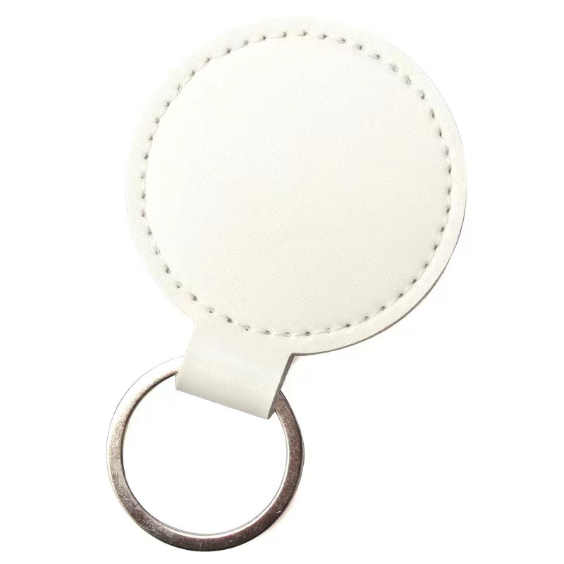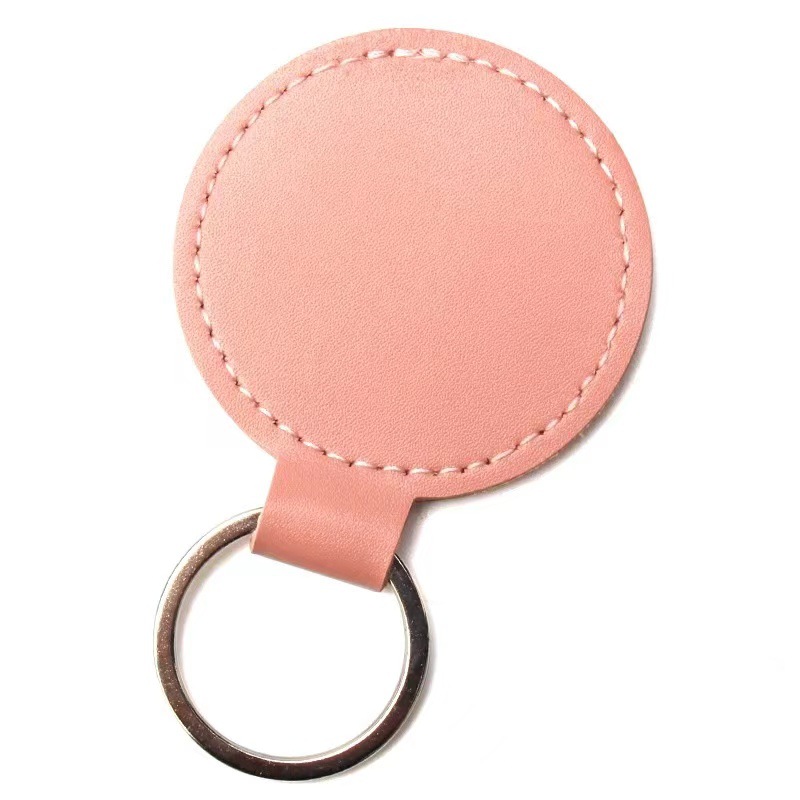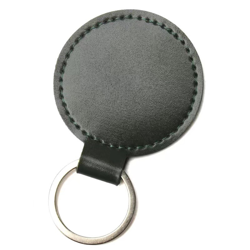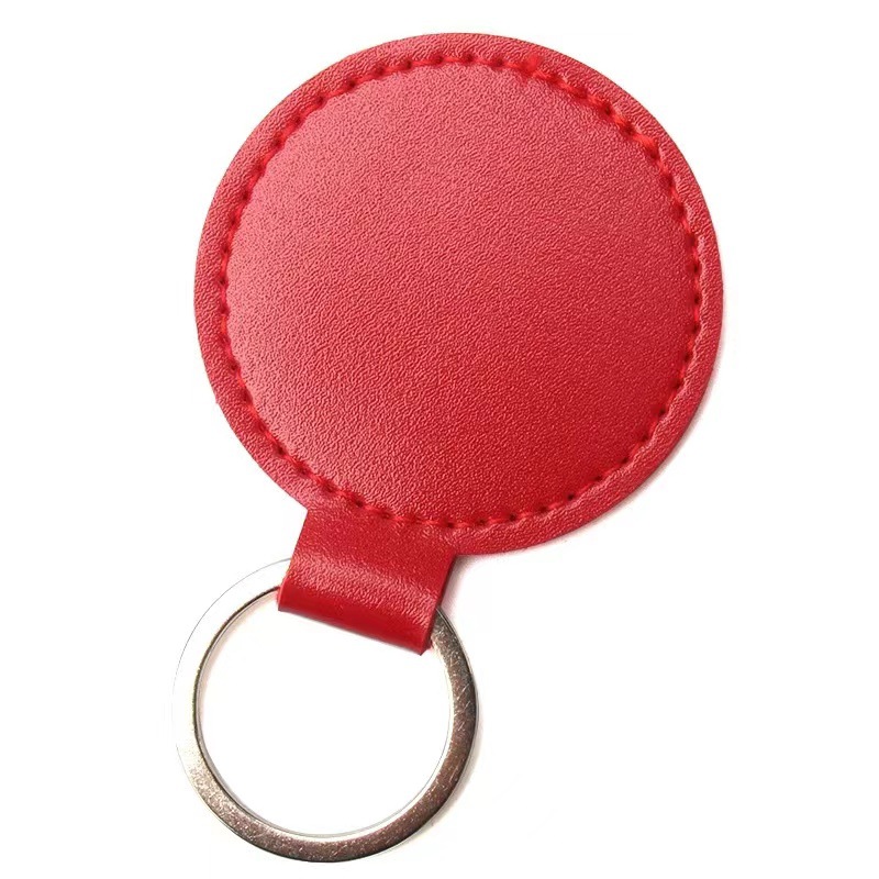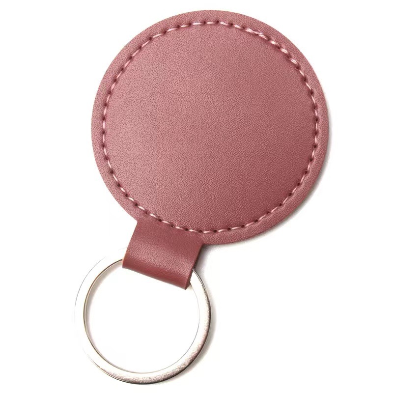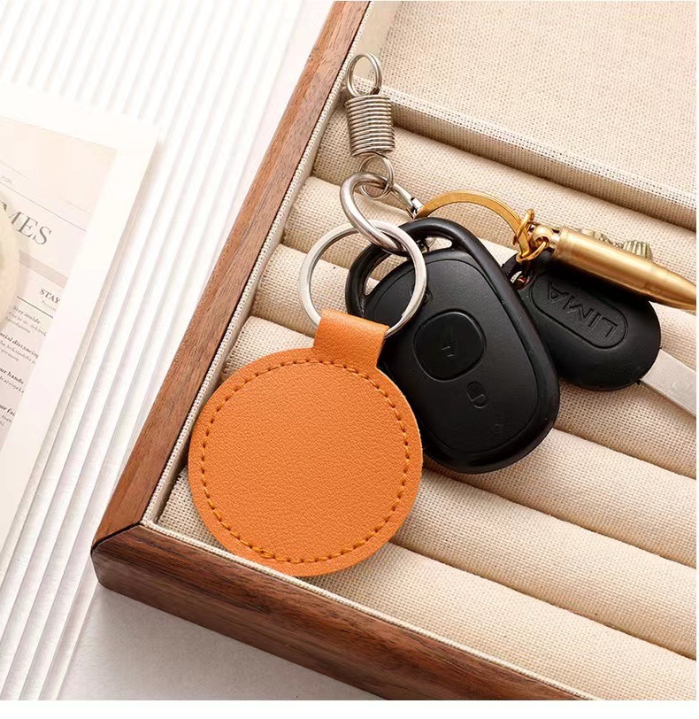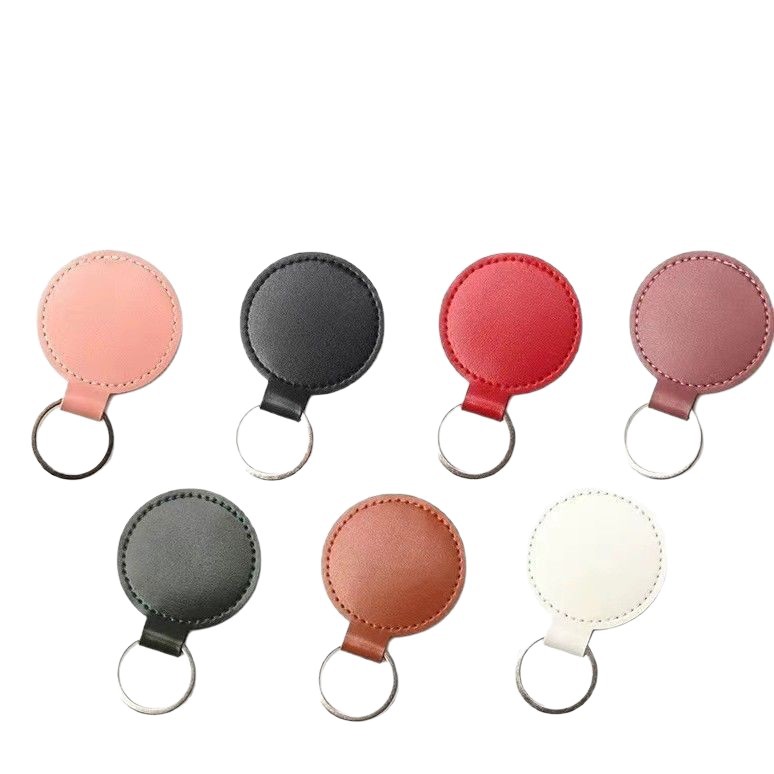 跨境钥匙扣创意LOGO装饰复古简约圆形皮革钥匙扣情侣汽车包包挂件