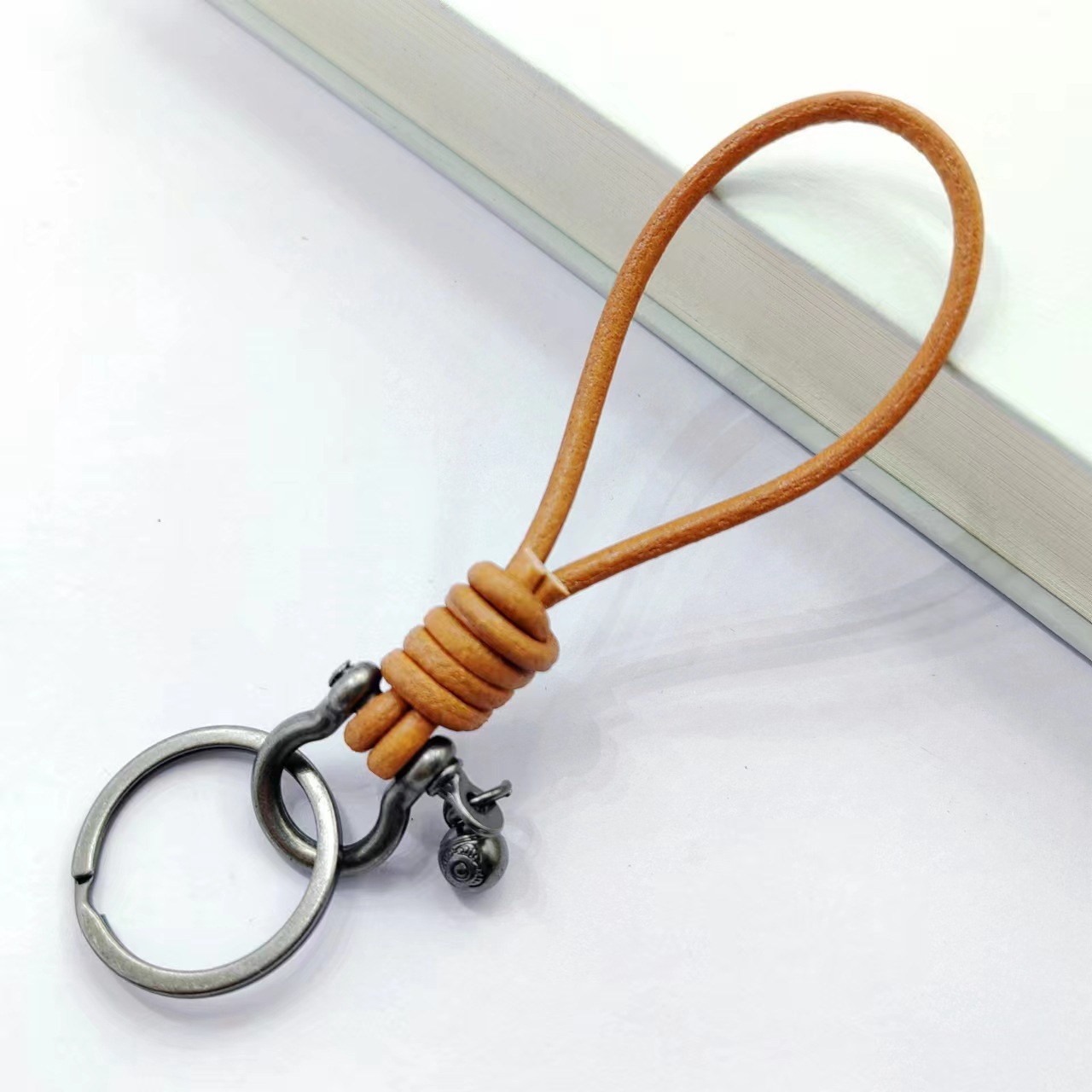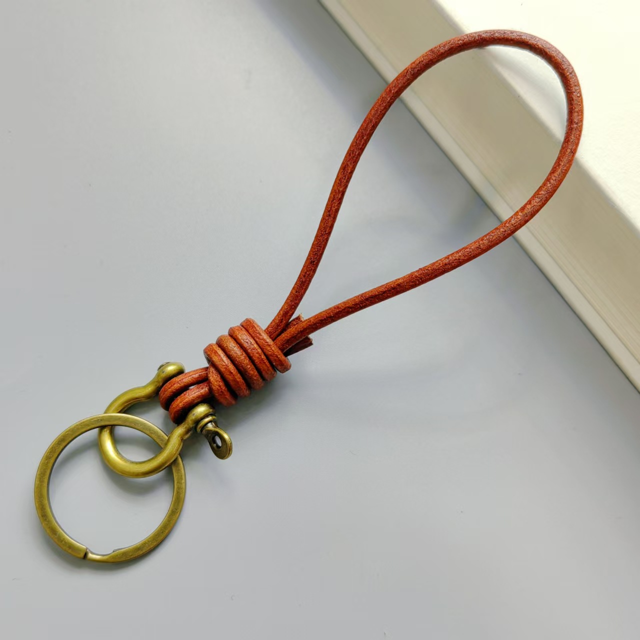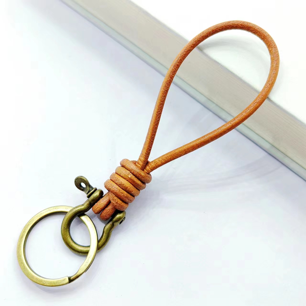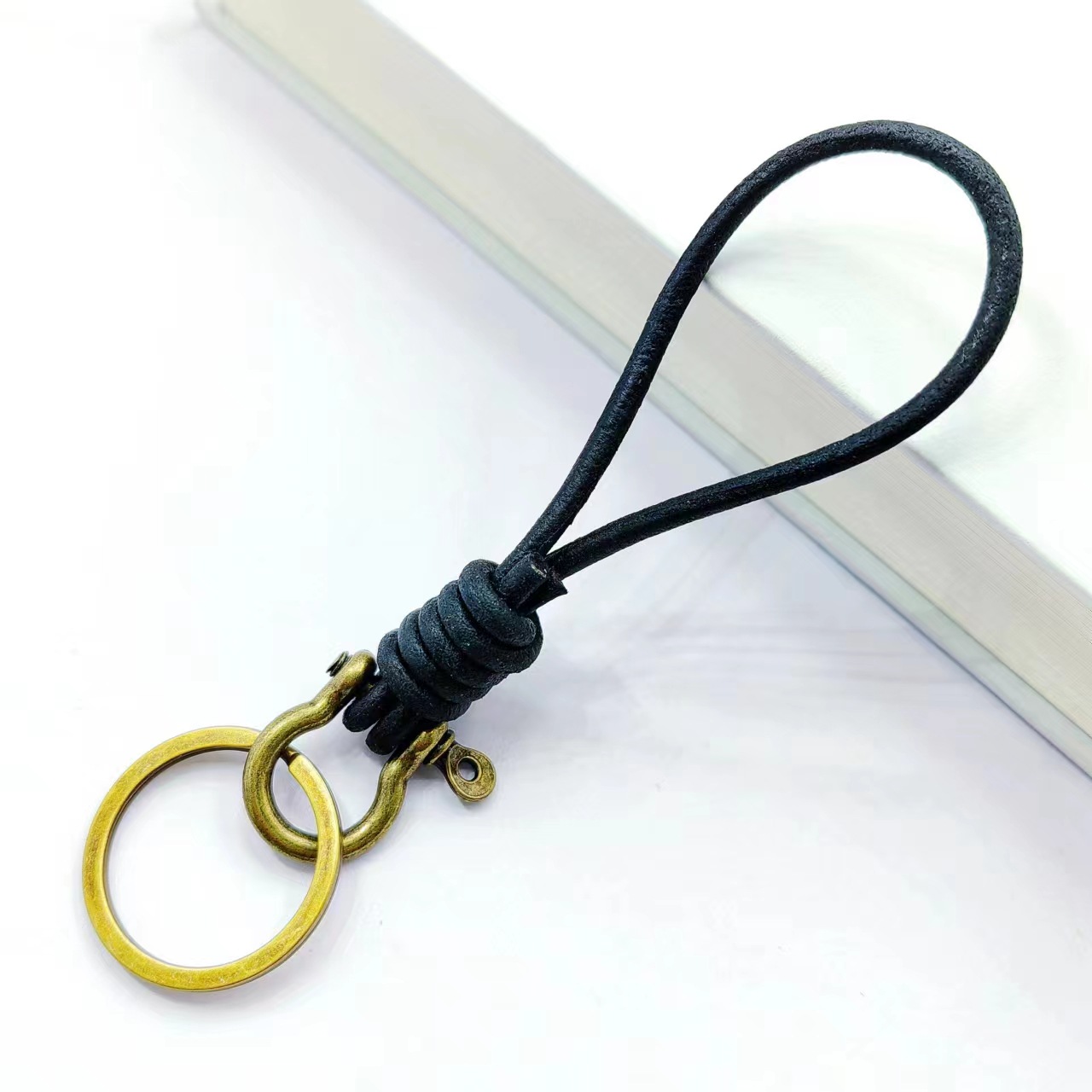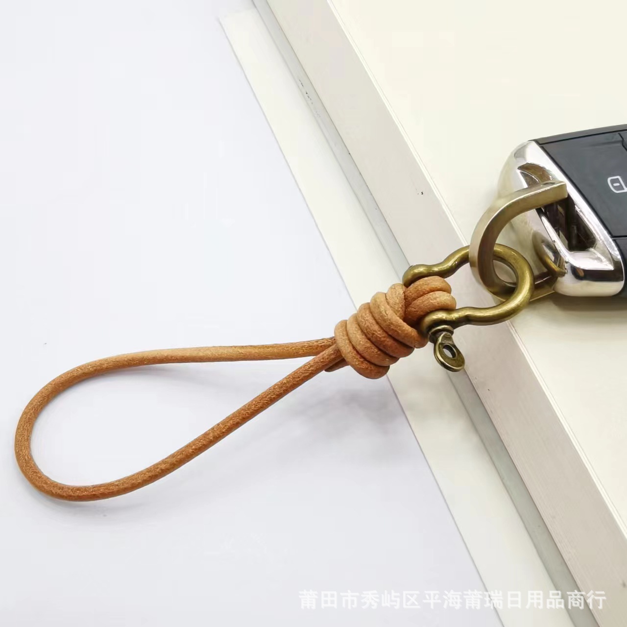 美式手工牛皮绳钥匙扣复古马蹄扣气车钥匙圈真皮钥匙链包挂饰批发