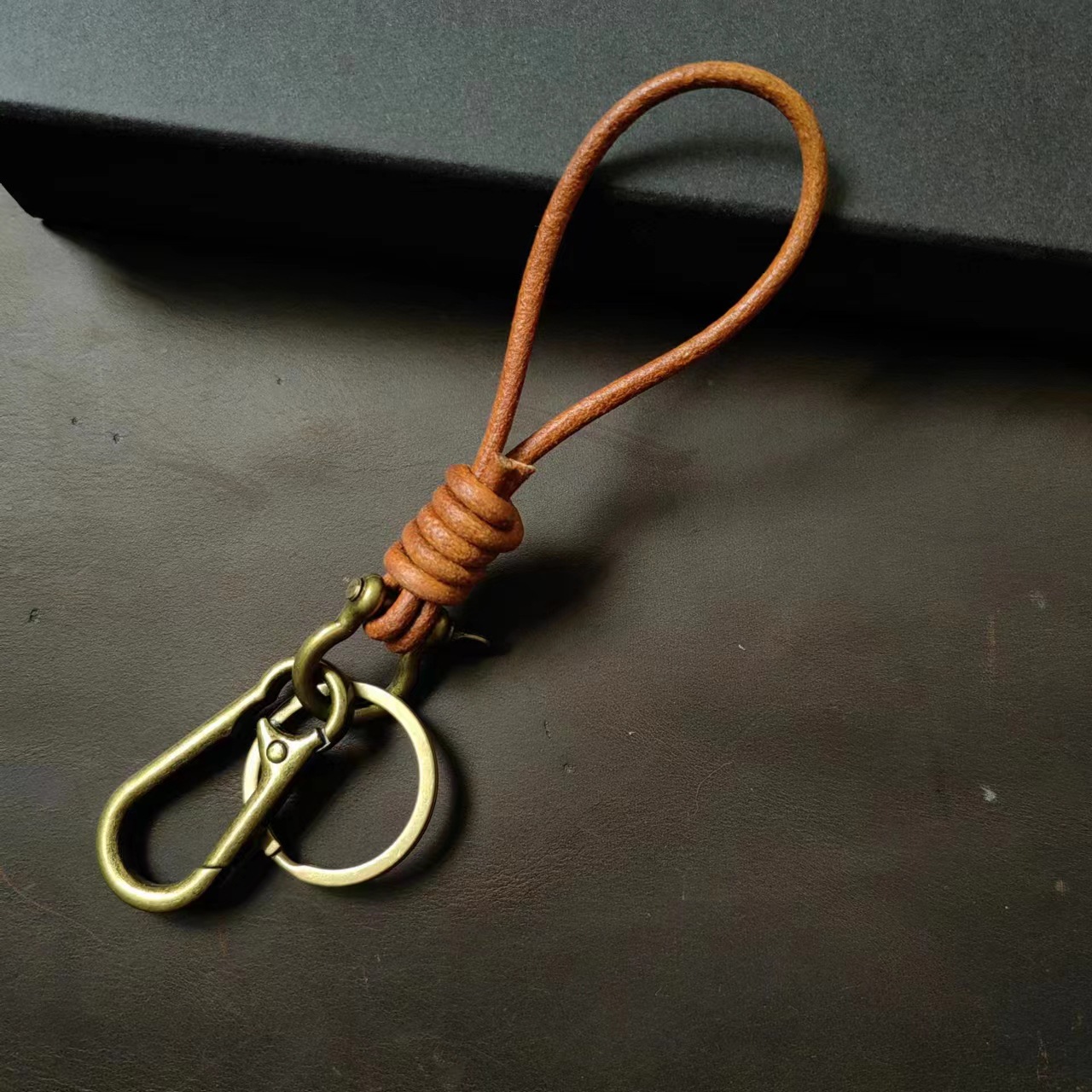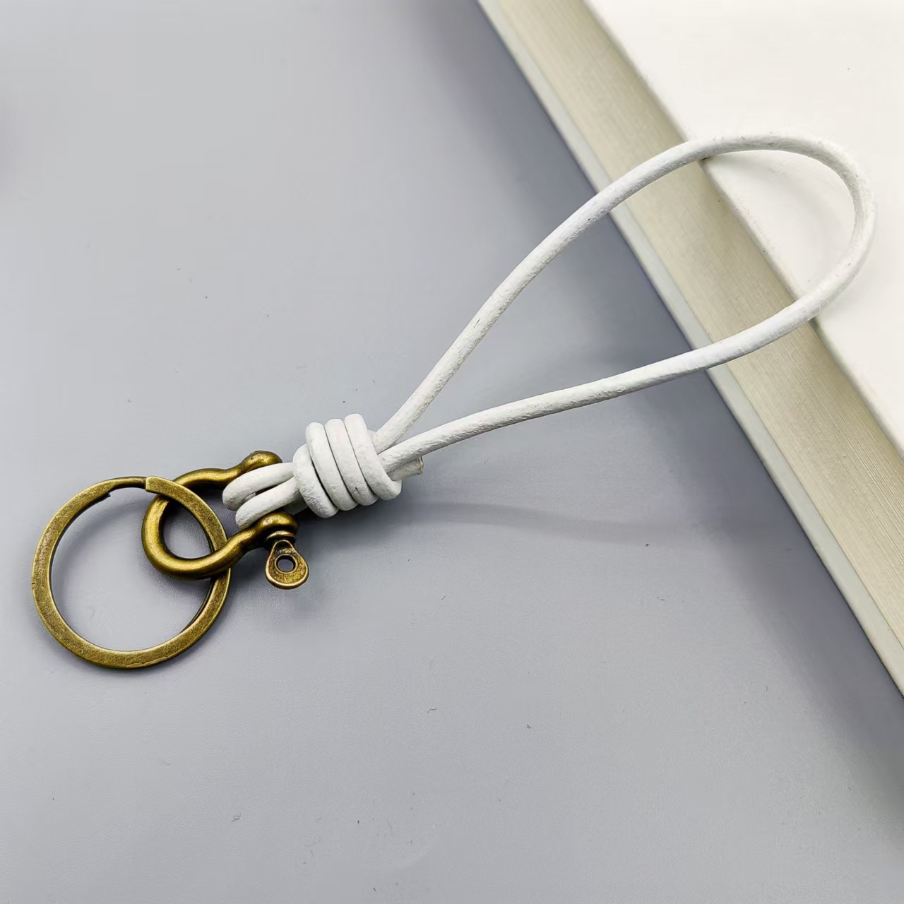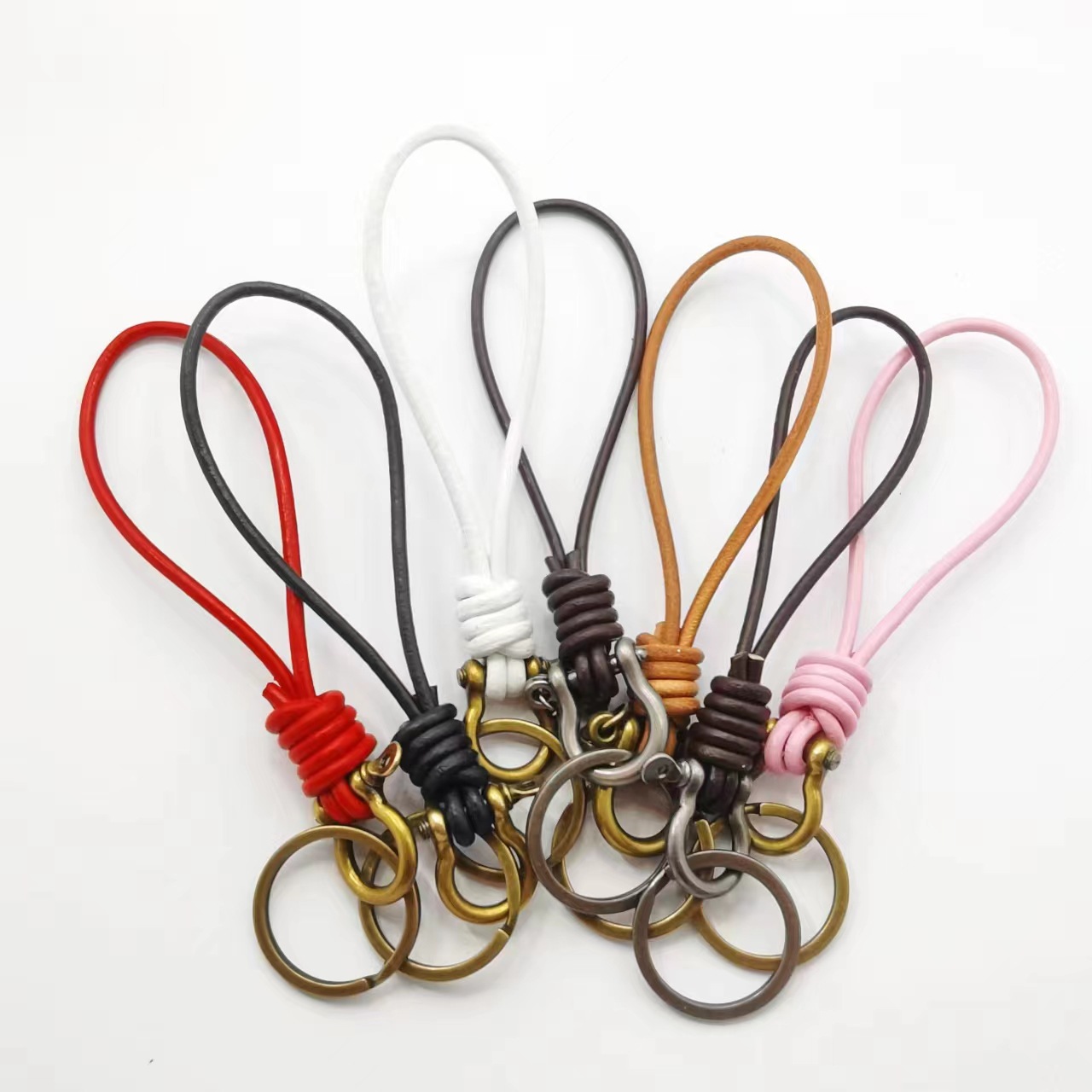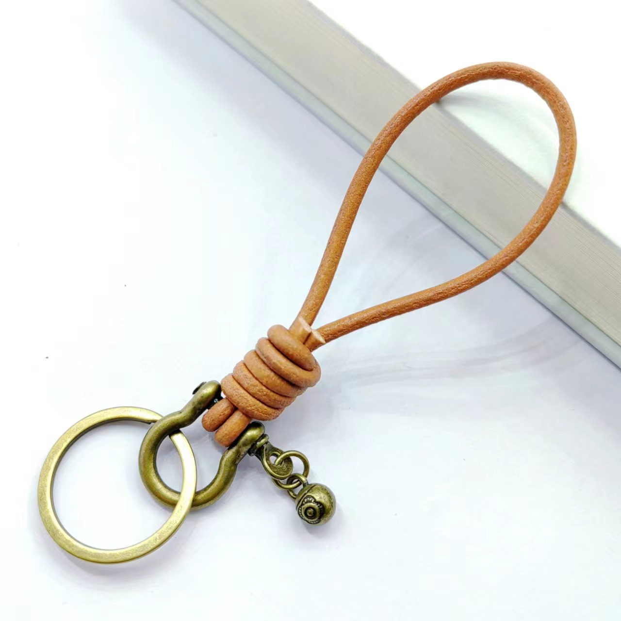 美式手工牛皮绳钥匙扣复古马蹄扣气车钥匙圈真皮钥匙链包挂饰批发