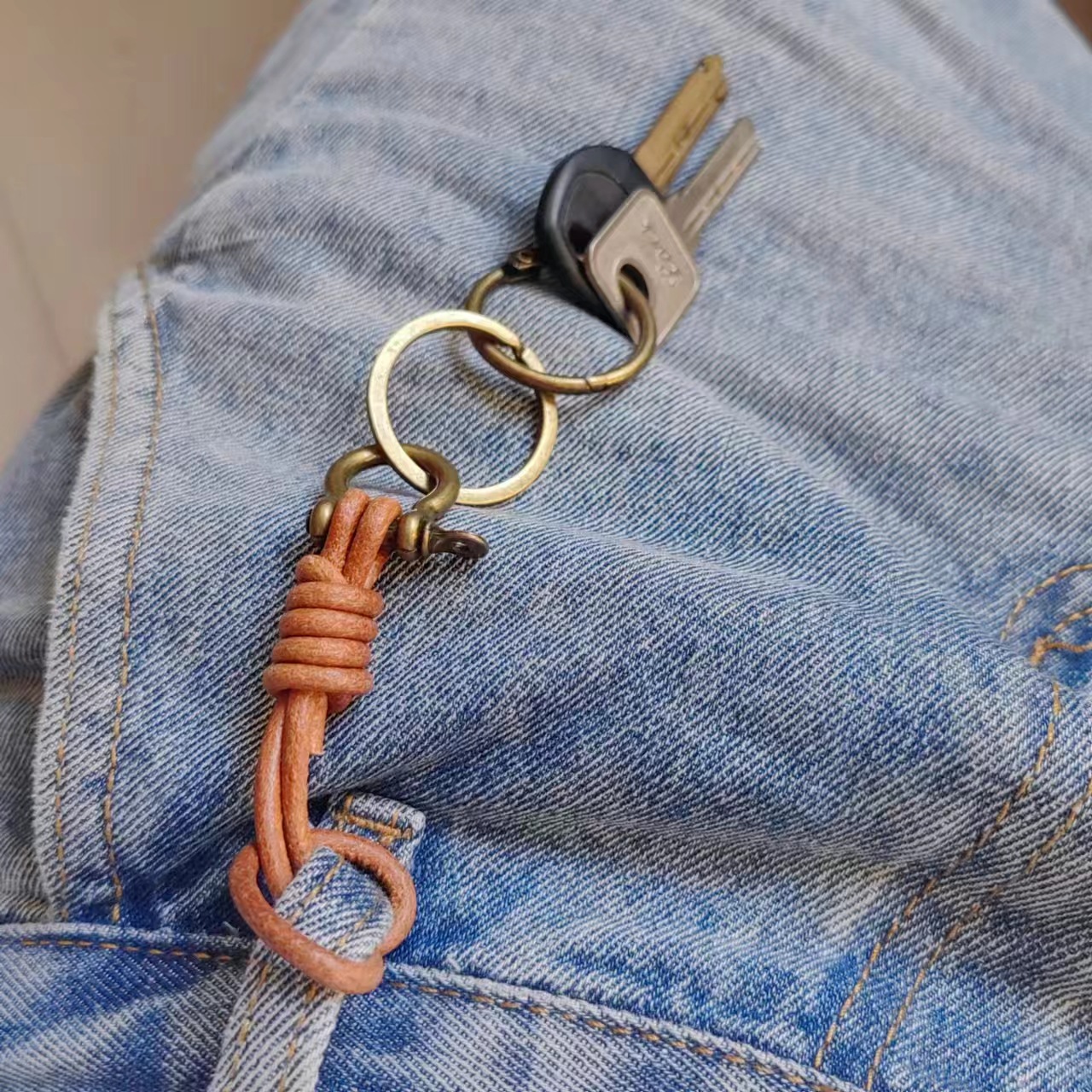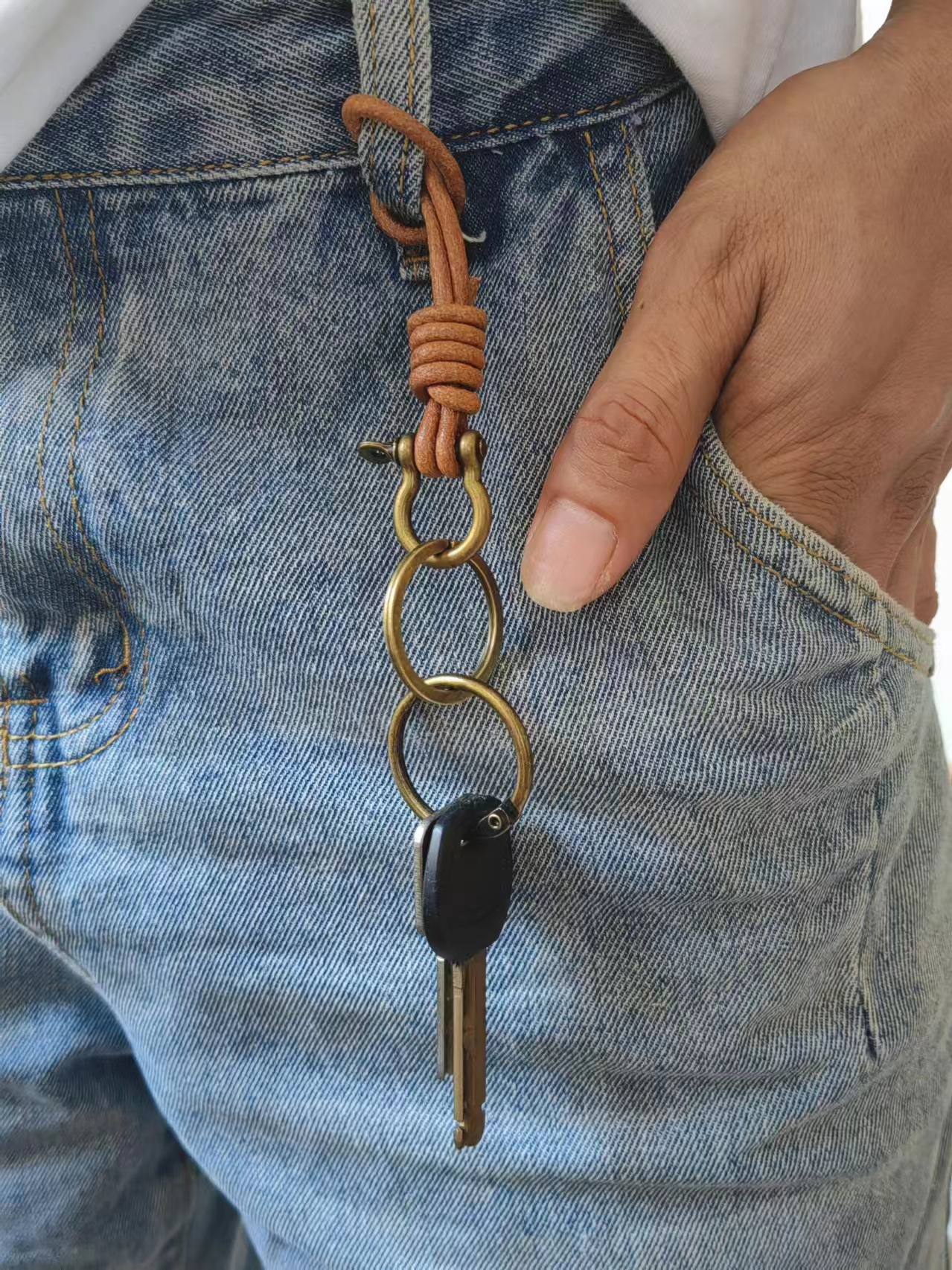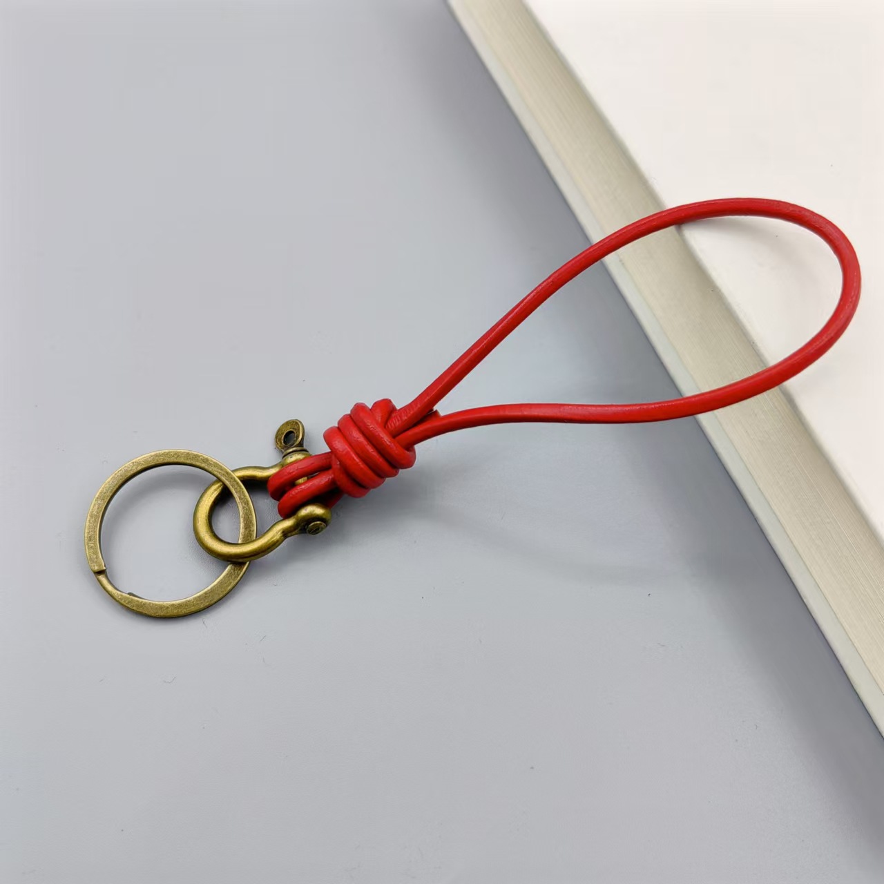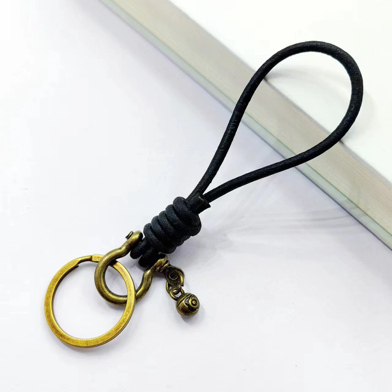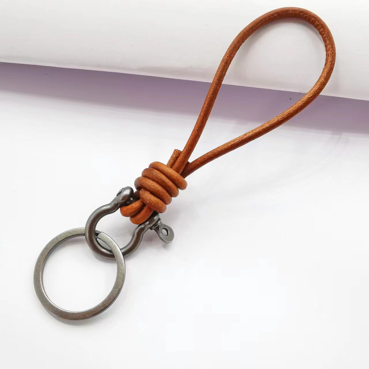 美式手工牛皮绳钥匙扣复古马蹄扣气车钥匙圈真皮钥匙链包挂饰批发