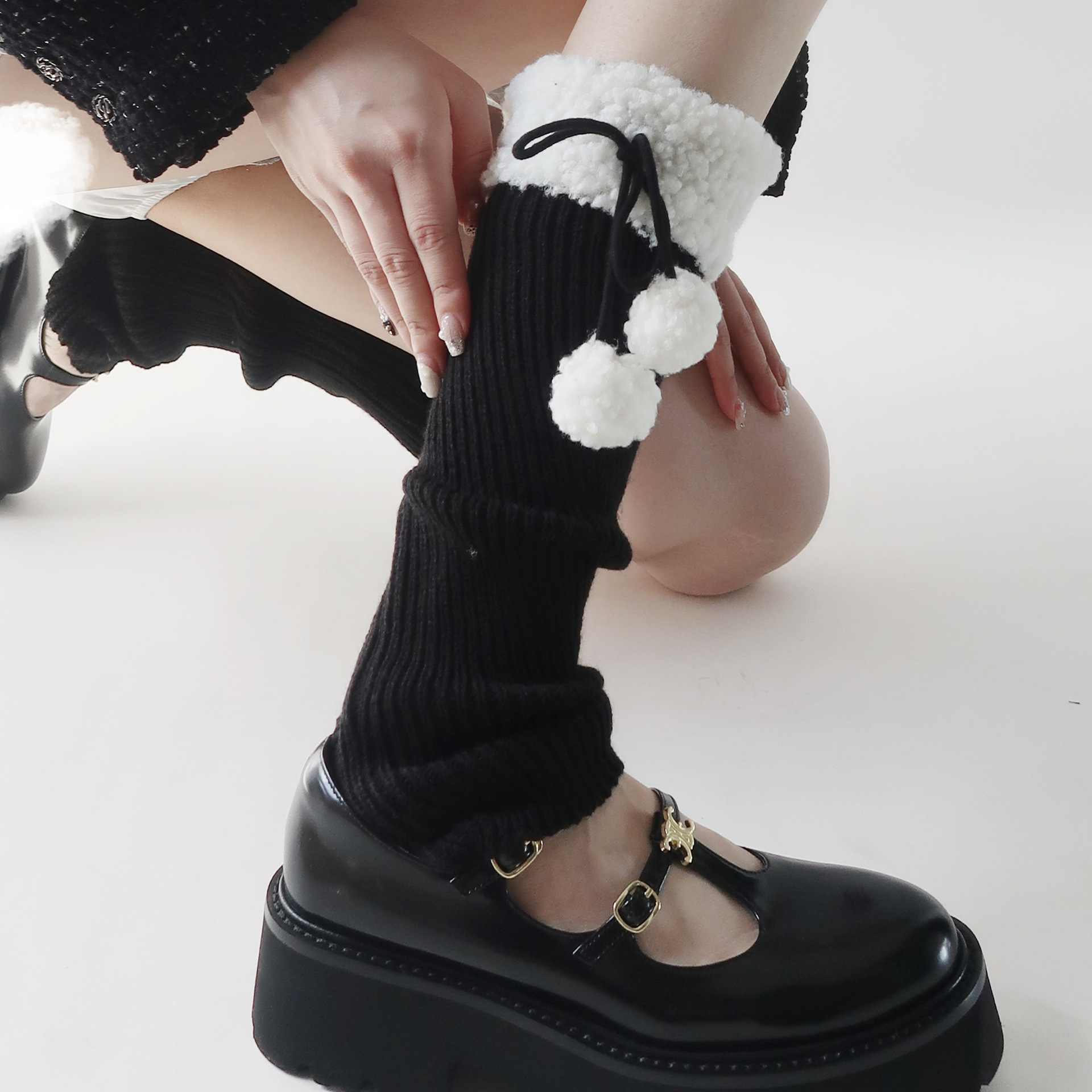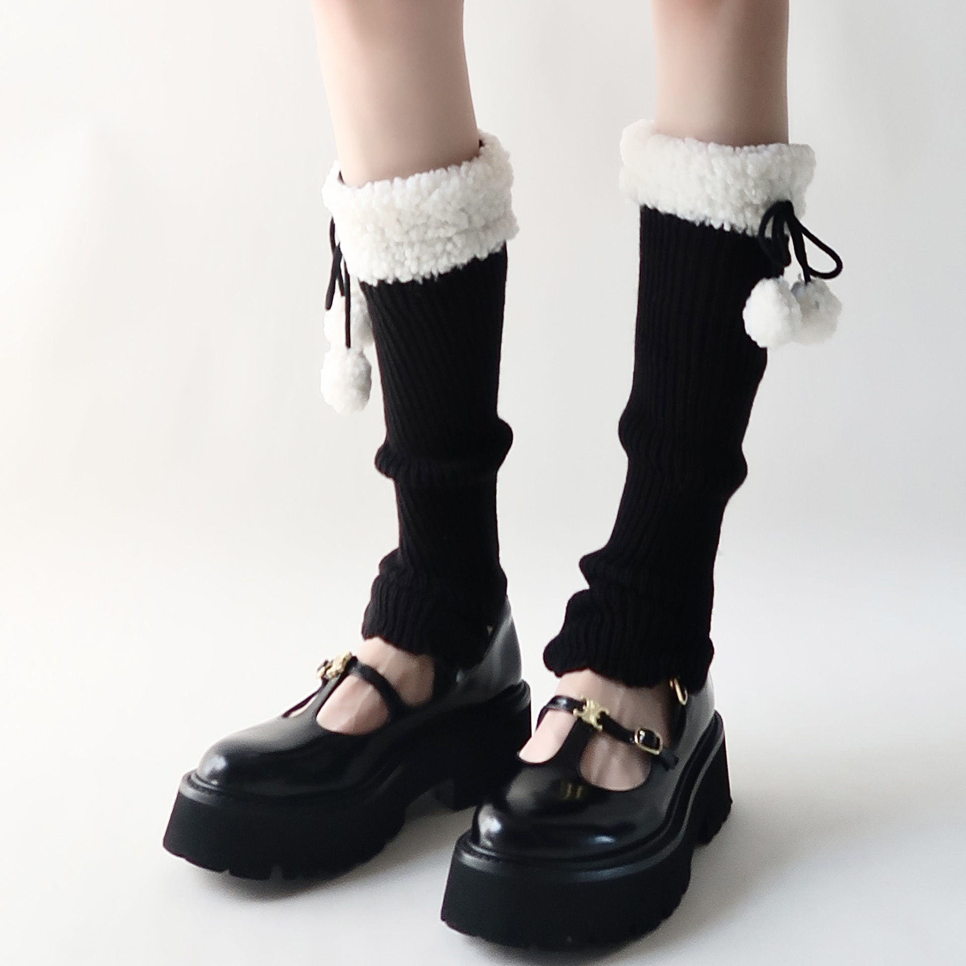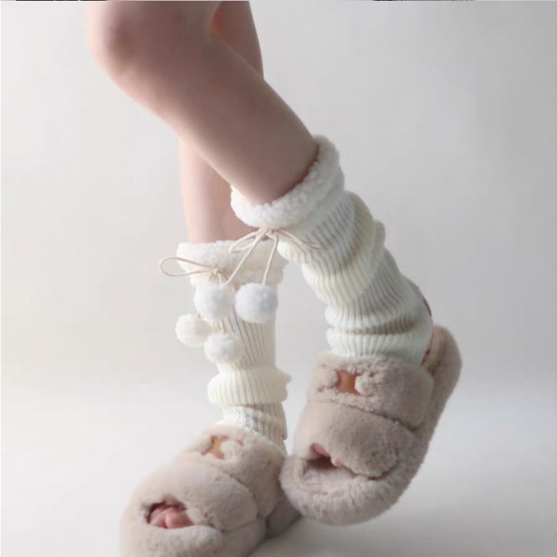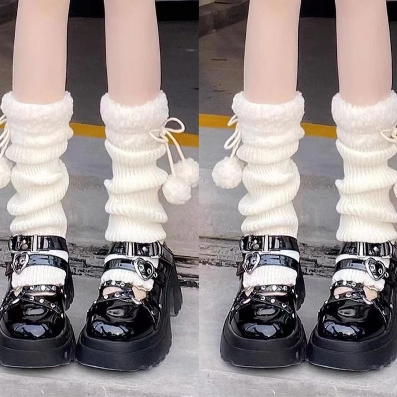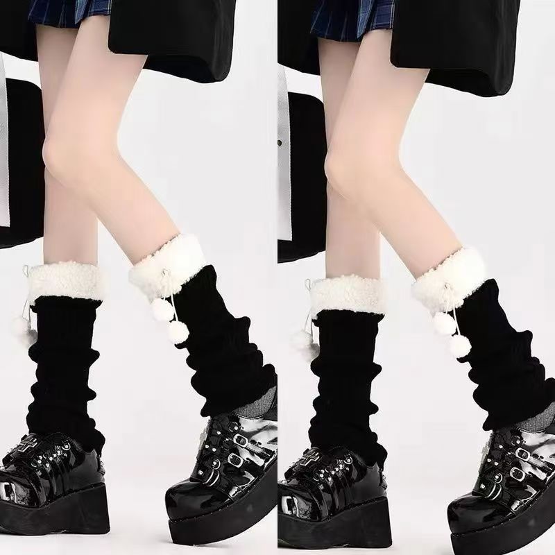 可爱lolita腿套日系秋冬羊羔毛绒球保暖毛球袜套jk复古堆堆袜子女