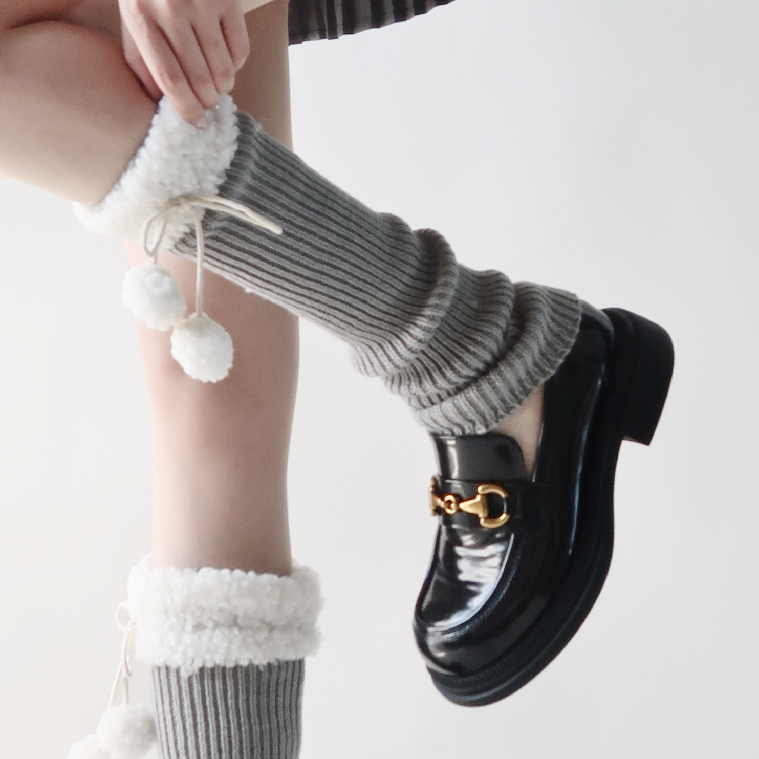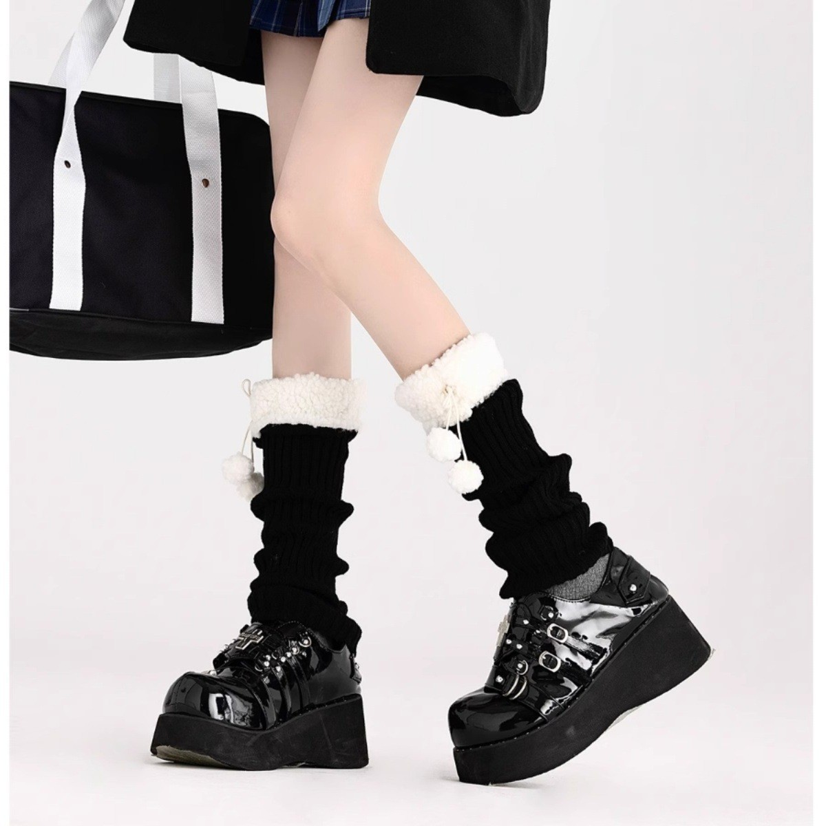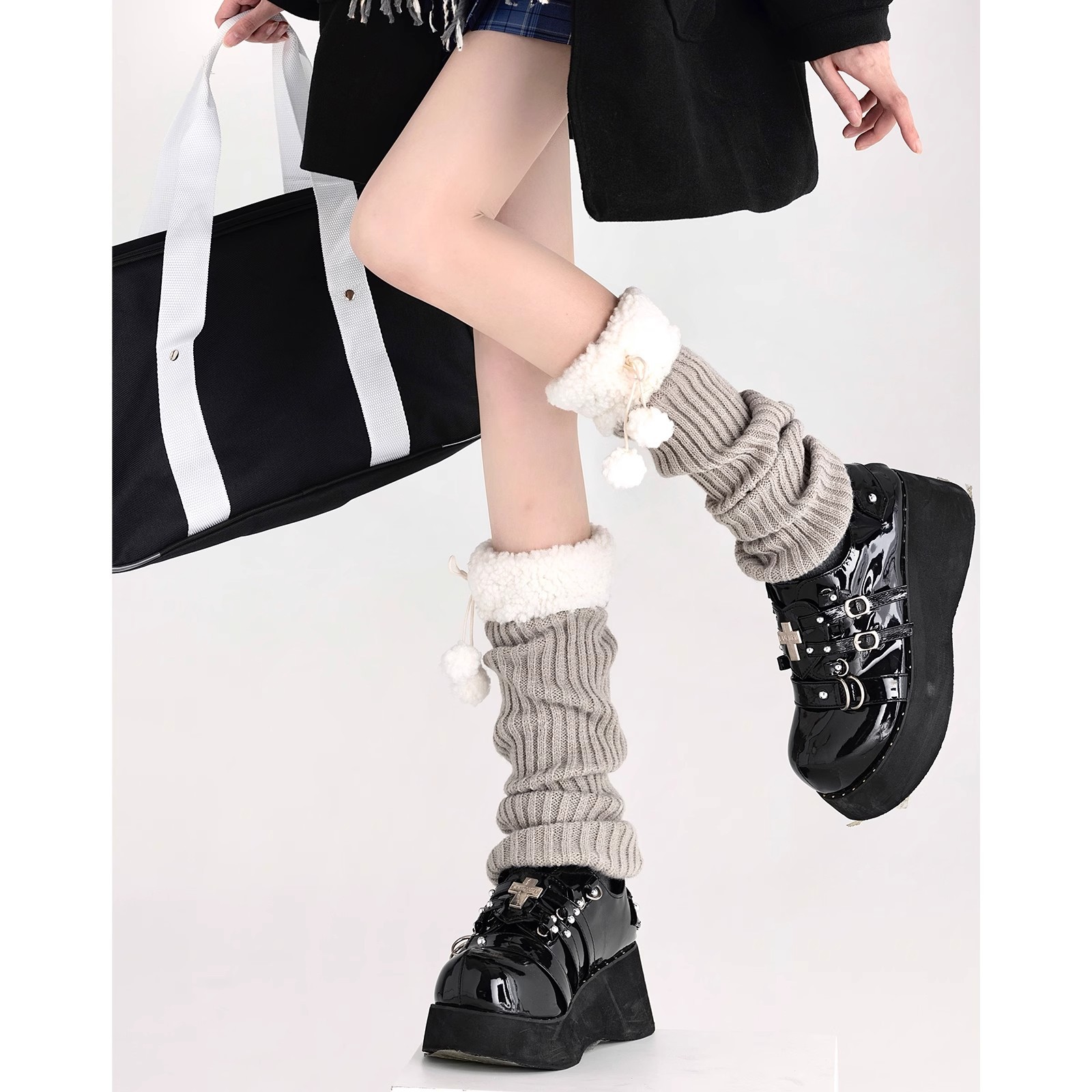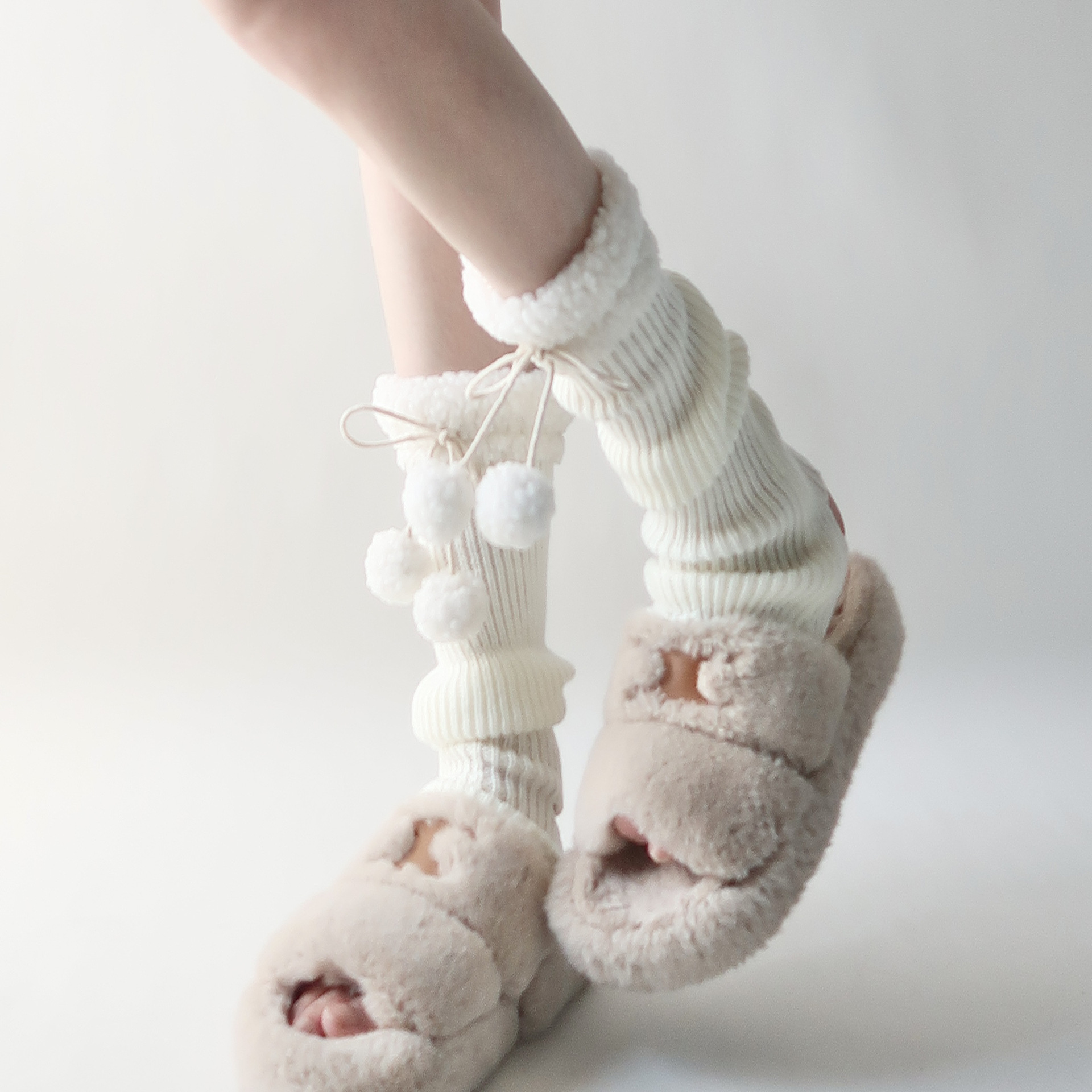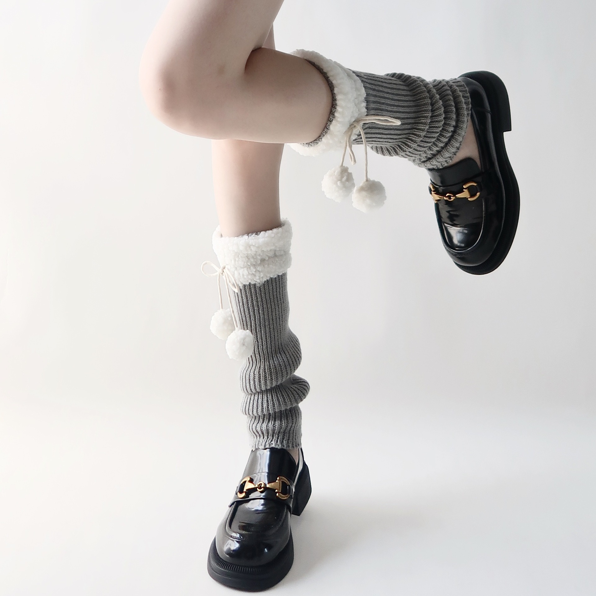 可爱lolita腿套日系秋冬羊羔毛绒球保暖毛球袜套jk复古堆堆袜子女
