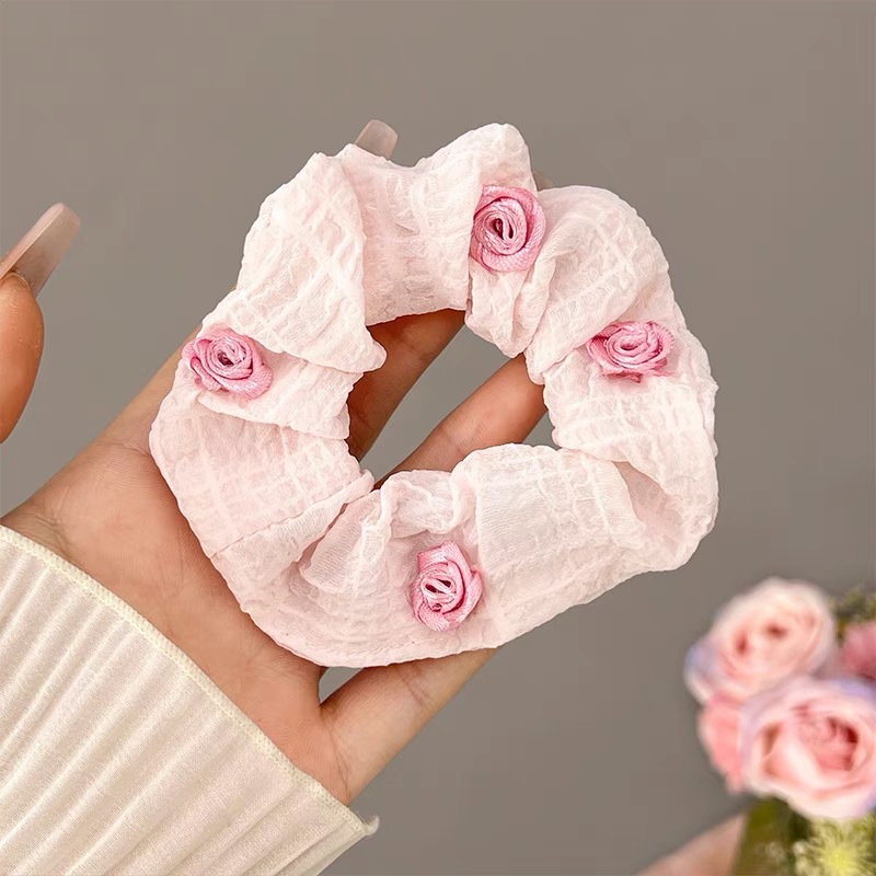 小清新夏季超仙甜美蕾丝花边大肠发圈地摊新款高颜值碎蝴蝶结发饰