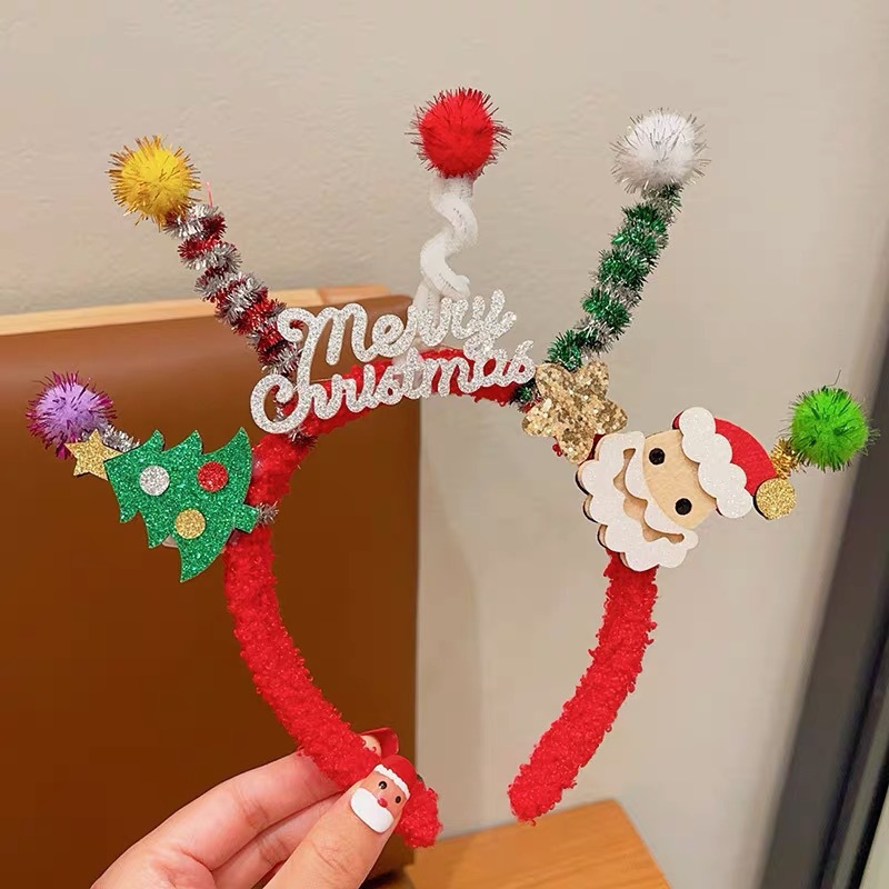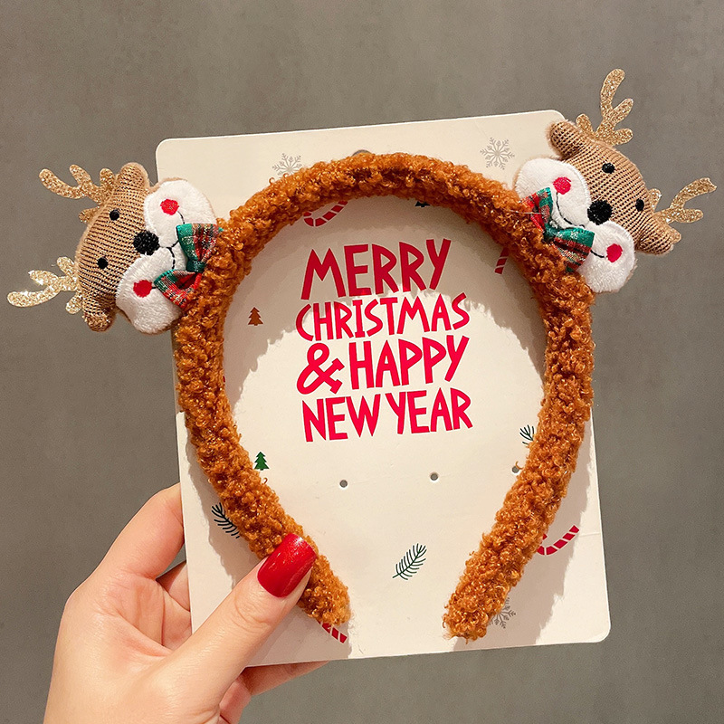 圣诞老人节发箍可爱圣诞麋鹿头箍儿童毛绒雪人发饰节日表演头饰品