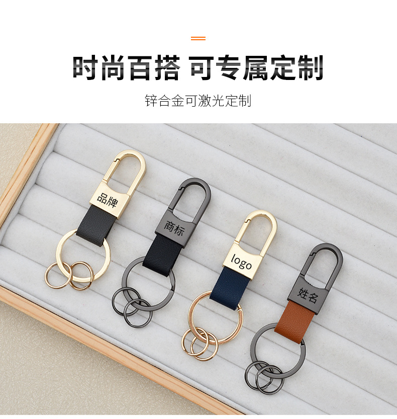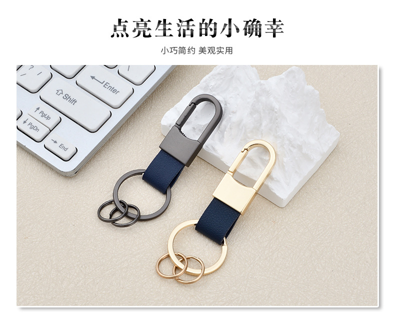 简约皮质钥匙扣个性时尚男士腰挂汽车钥匙链家居收纳防丢U型扣挂