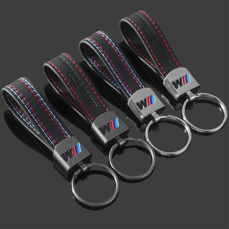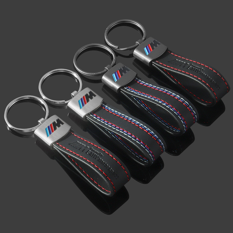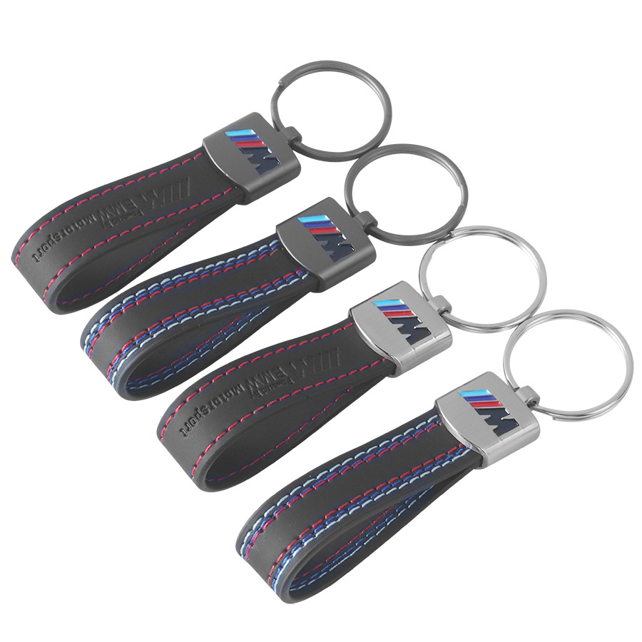 跨境M三色运动标皮革汽车改装标志车标车用金属钥匙扣圈链环挂件