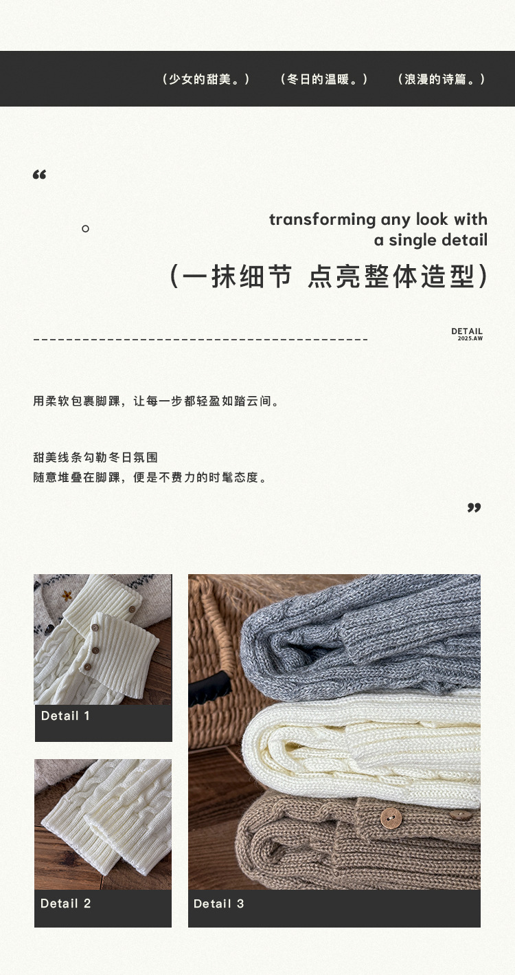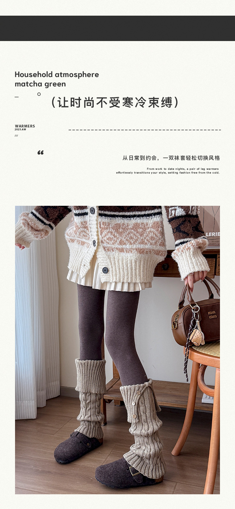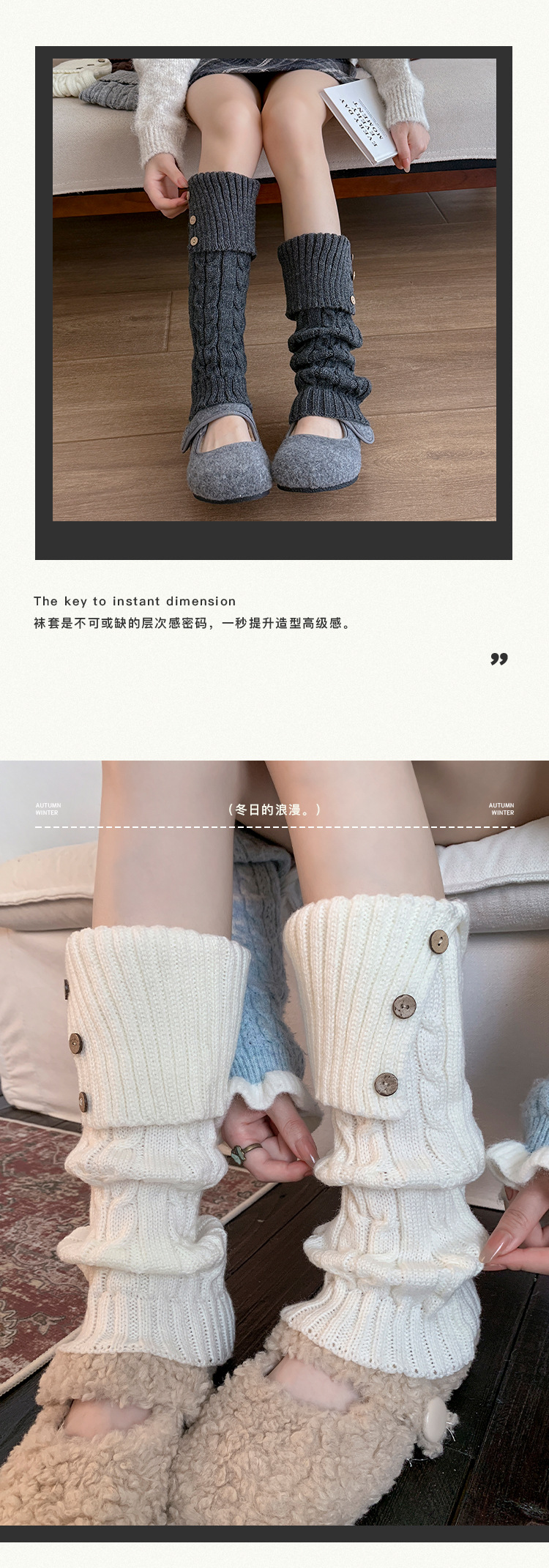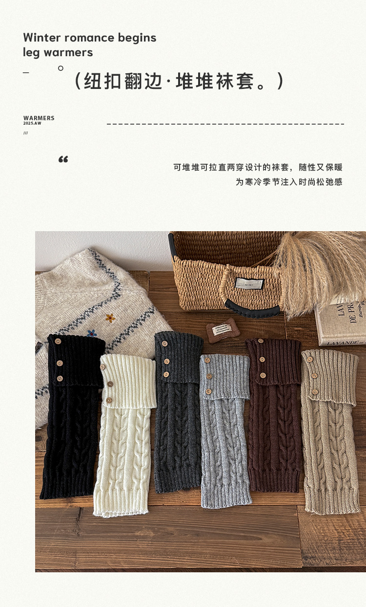 靴尚棉袜套女秋冬翻边纽扣堆堆袜复古麻花针织加厚保暖叠穿小腿套