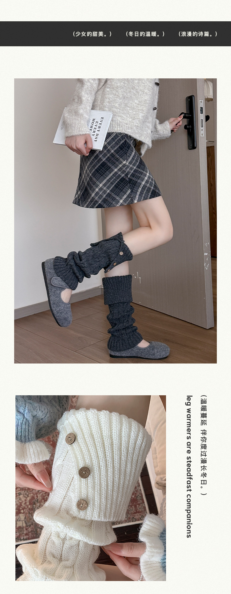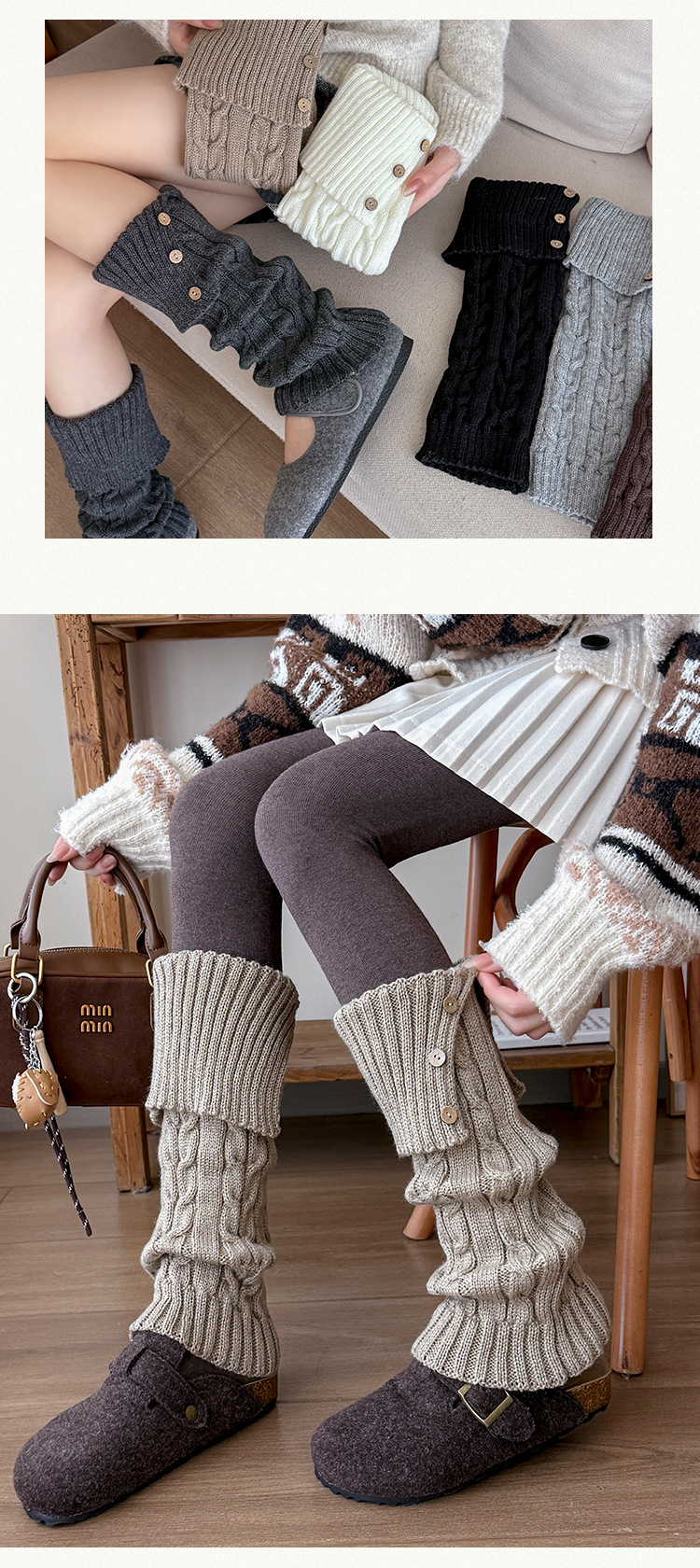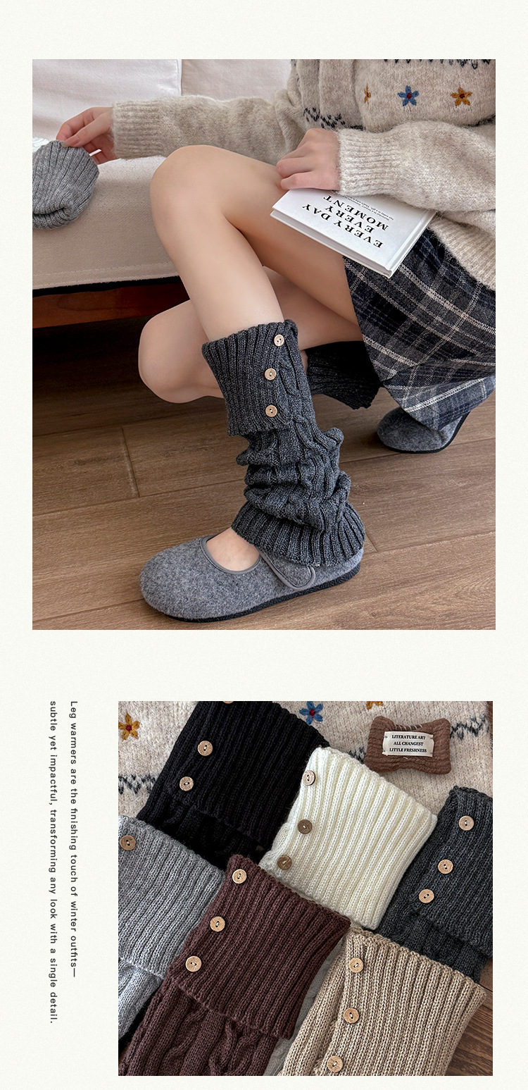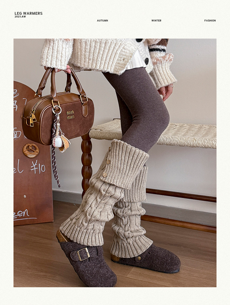 靴尚棉袜套女秋冬翻边纽扣堆堆袜复古麻花针织加厚保暖叠穿小腿套