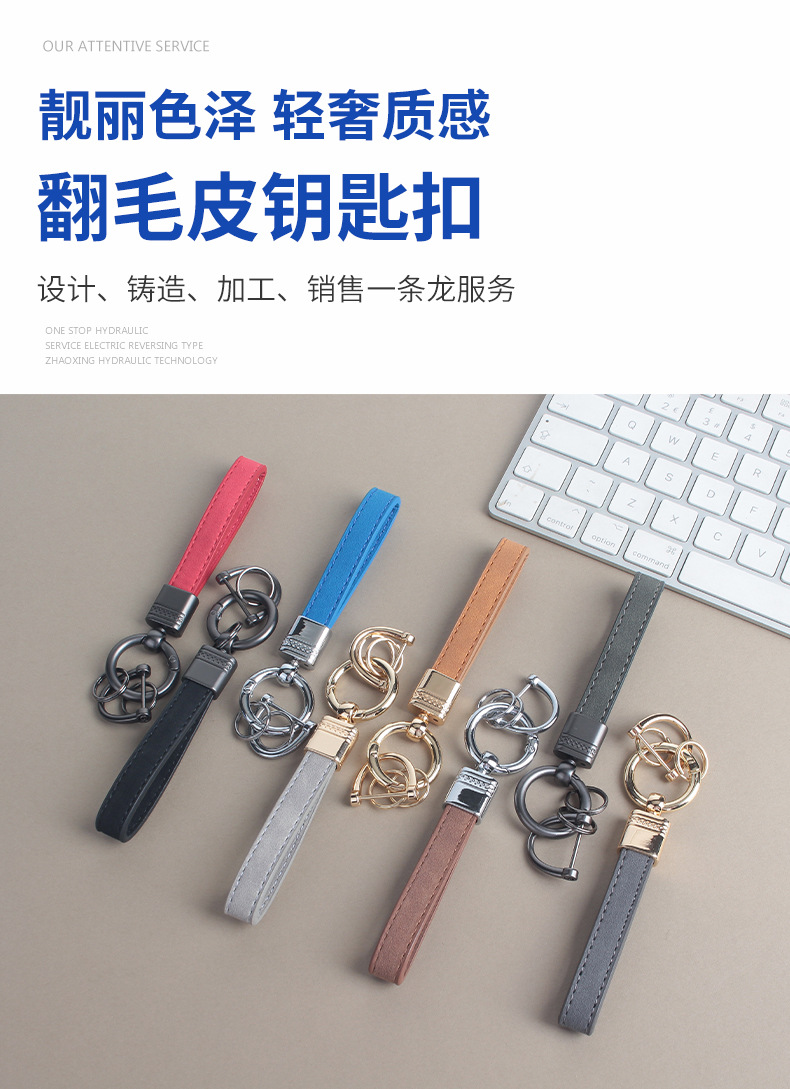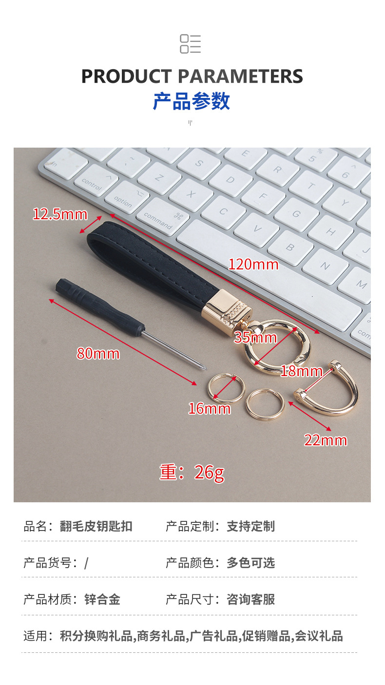 翻毛皮汽车钥匙扣挂件金属高级感钥匙链腰挂扣环挂饰防丢钥匙链