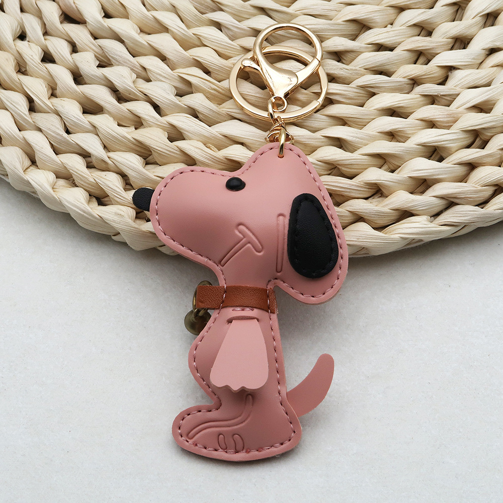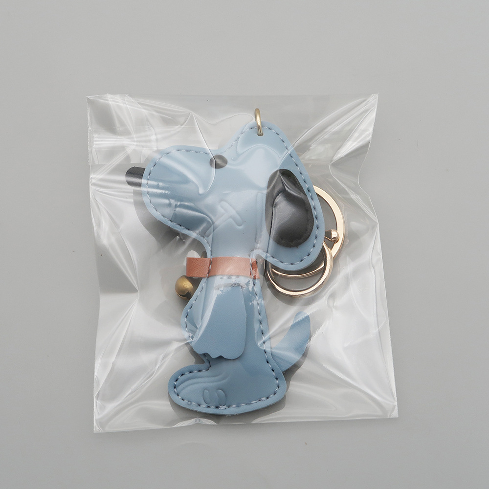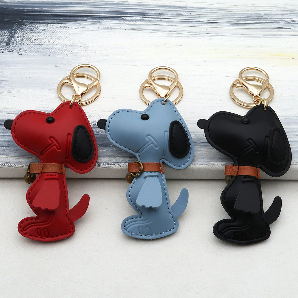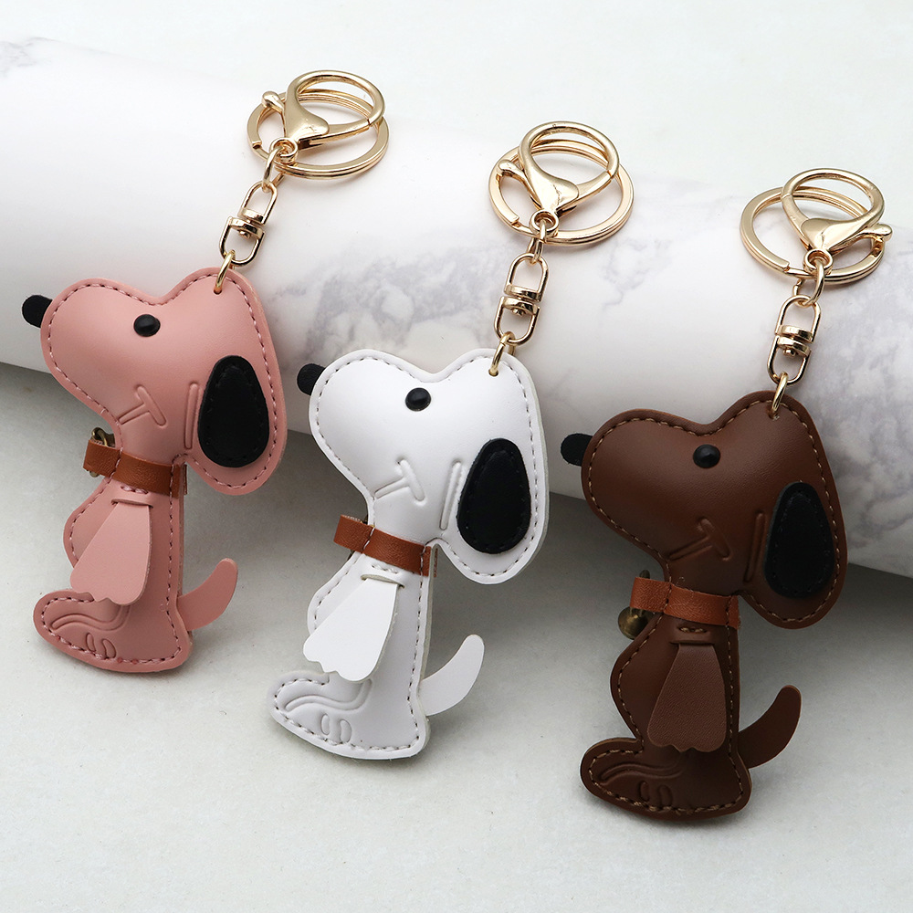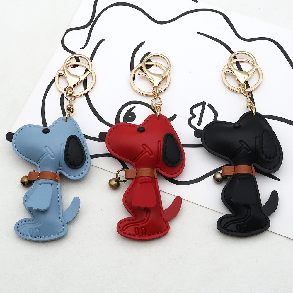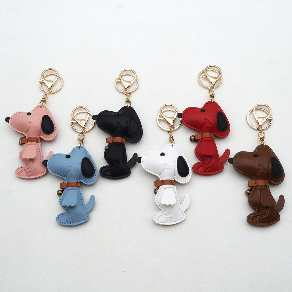 跨境现货狗狗PU箱包挂件创意情侣铃铛小狗汽车钥匙扣皮革高档挂件
