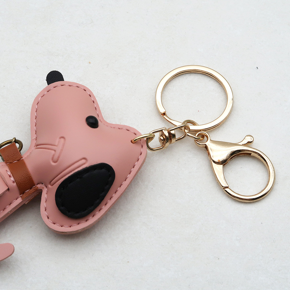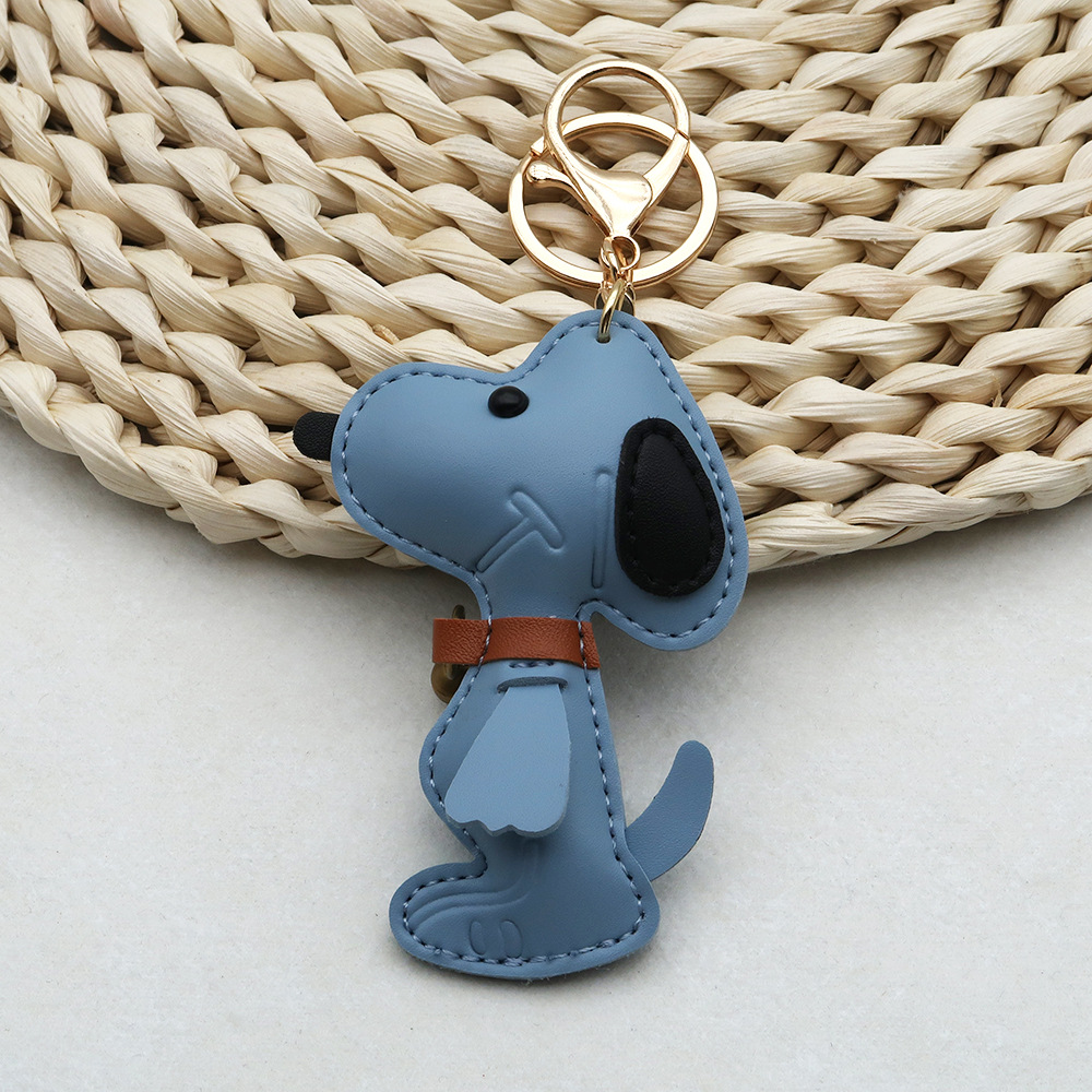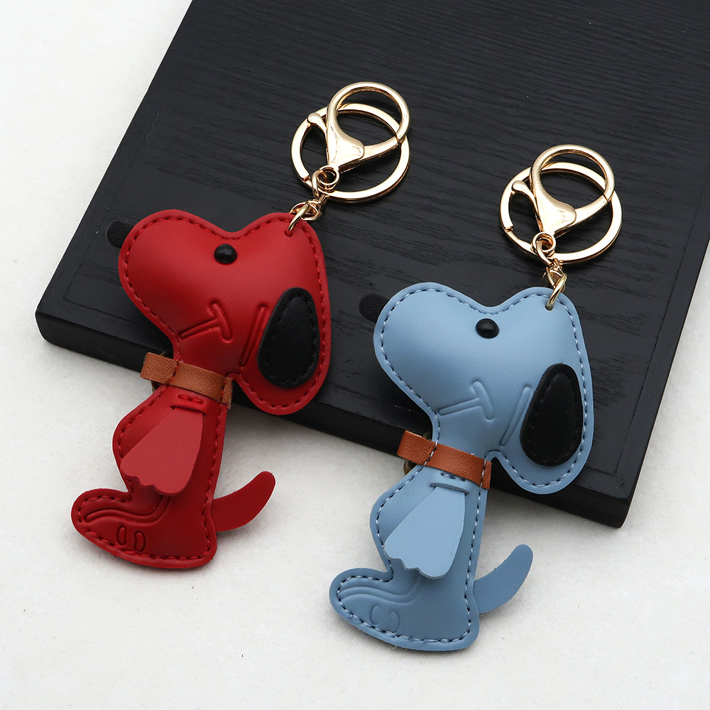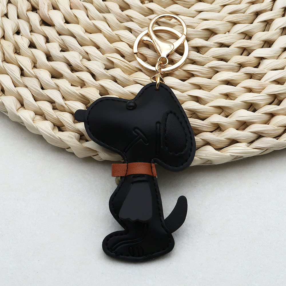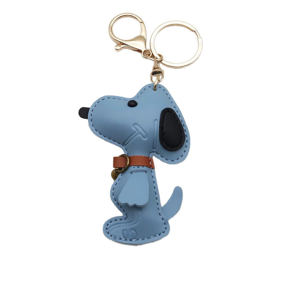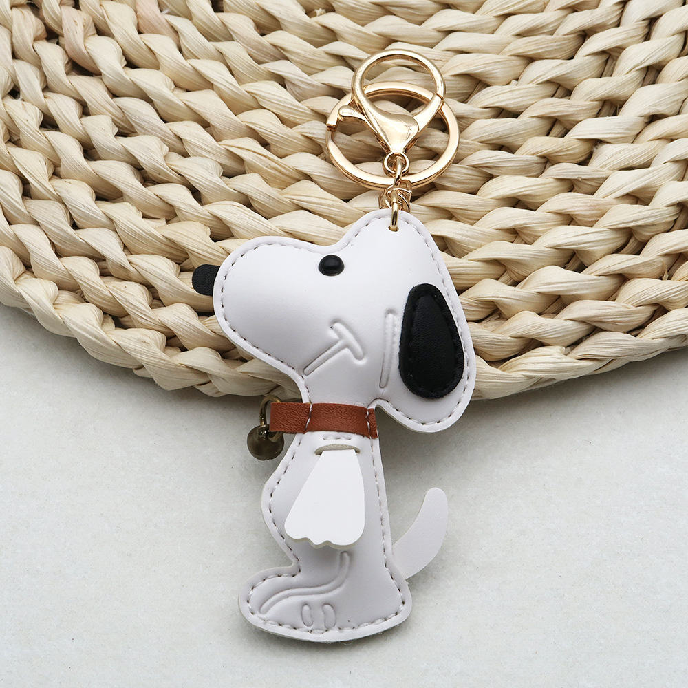 跨境现货狗狗PU箱包挂件创意情侣铃铛小狗汽车钥匙扣皮革高档挂件