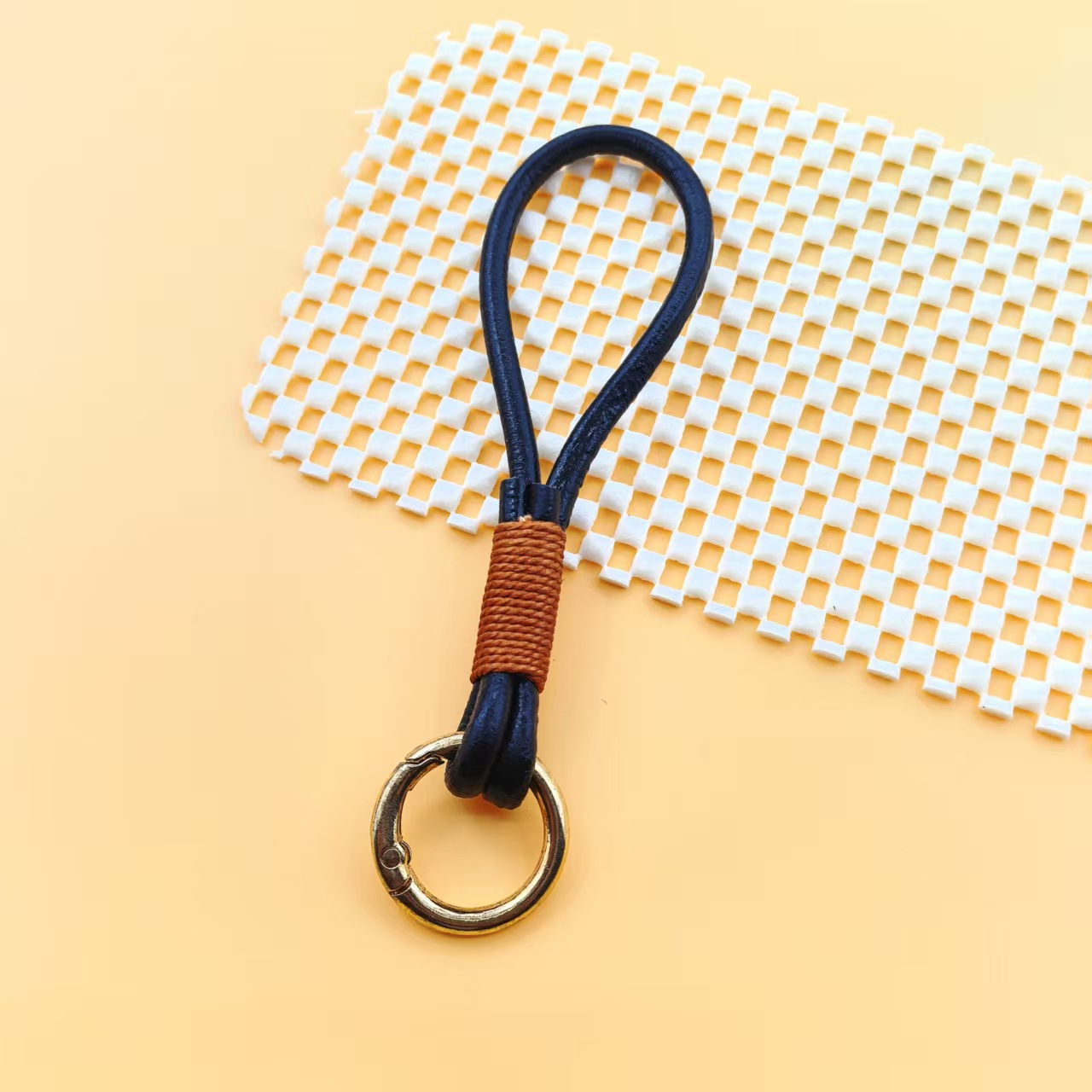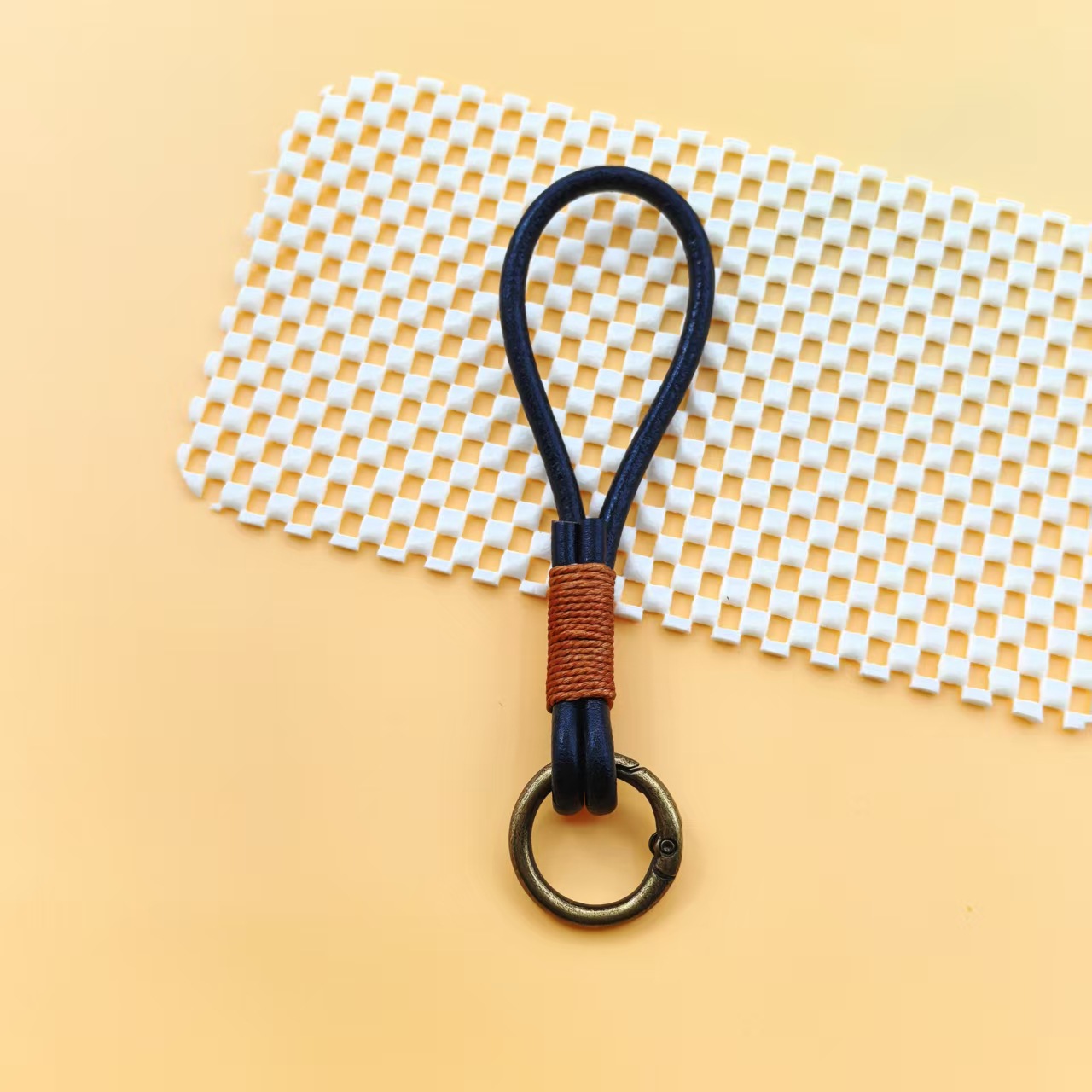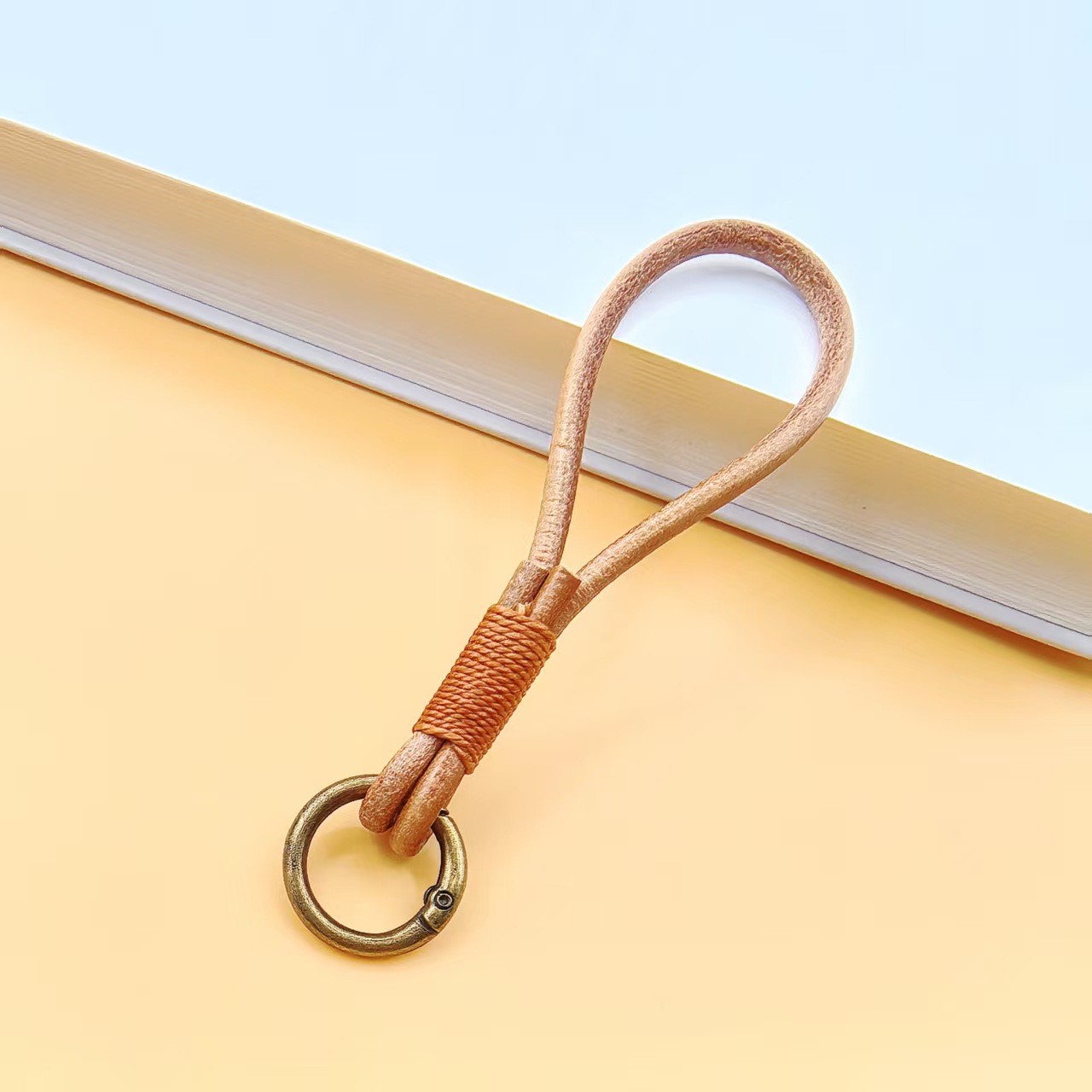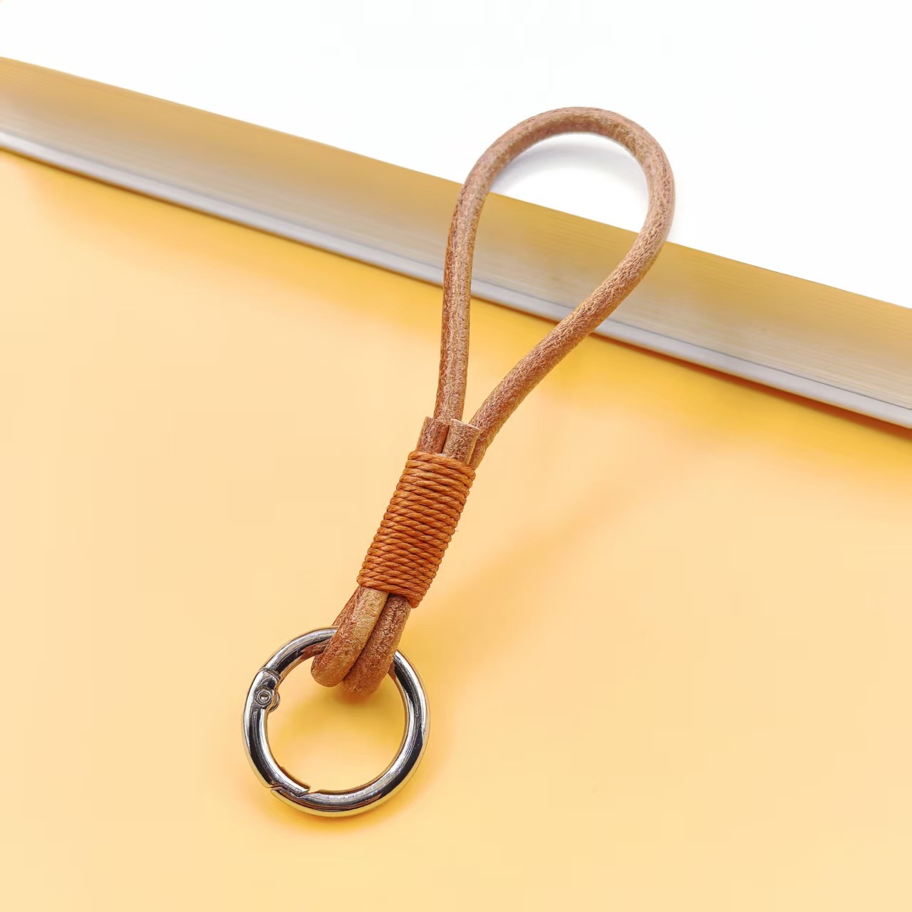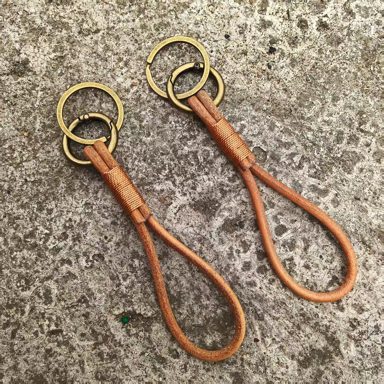 复古皮绳钥匙扣挂饰开口弹簧圈牛皮绳汽车钥匙扣创意diy挂件配饰