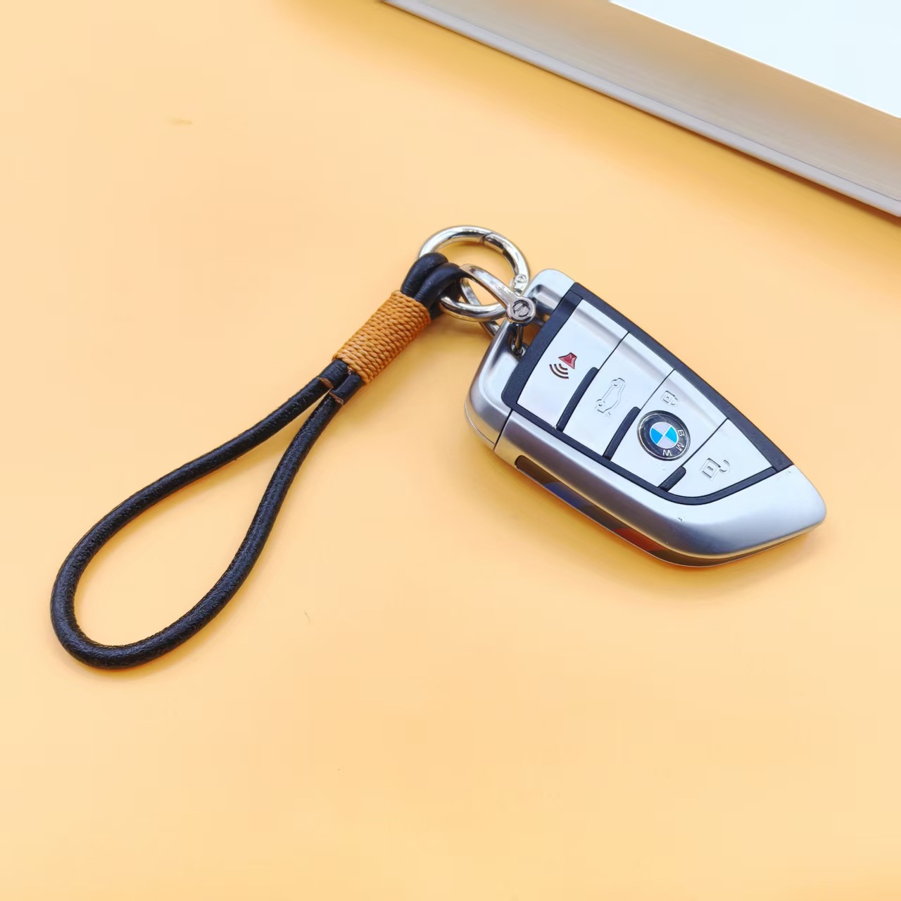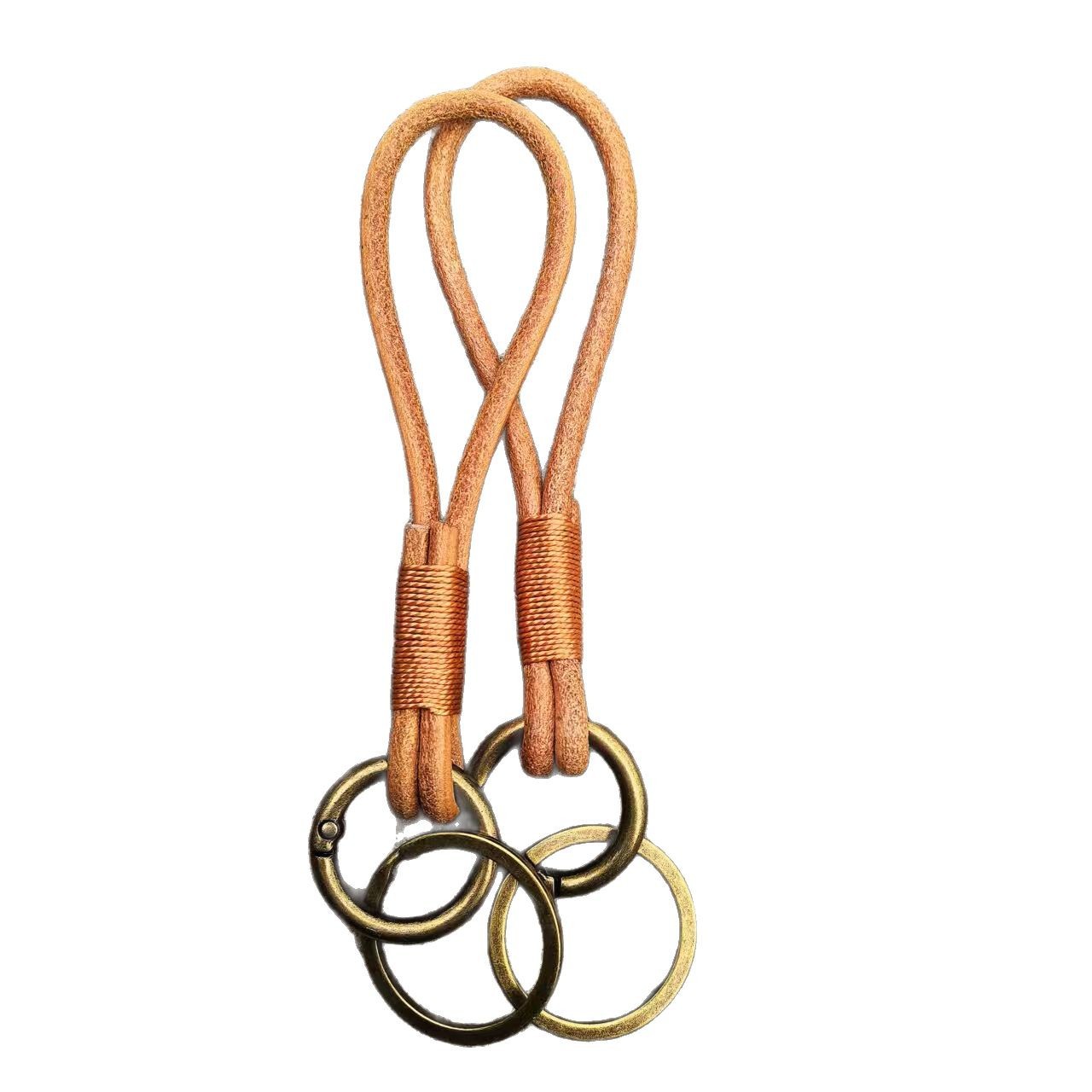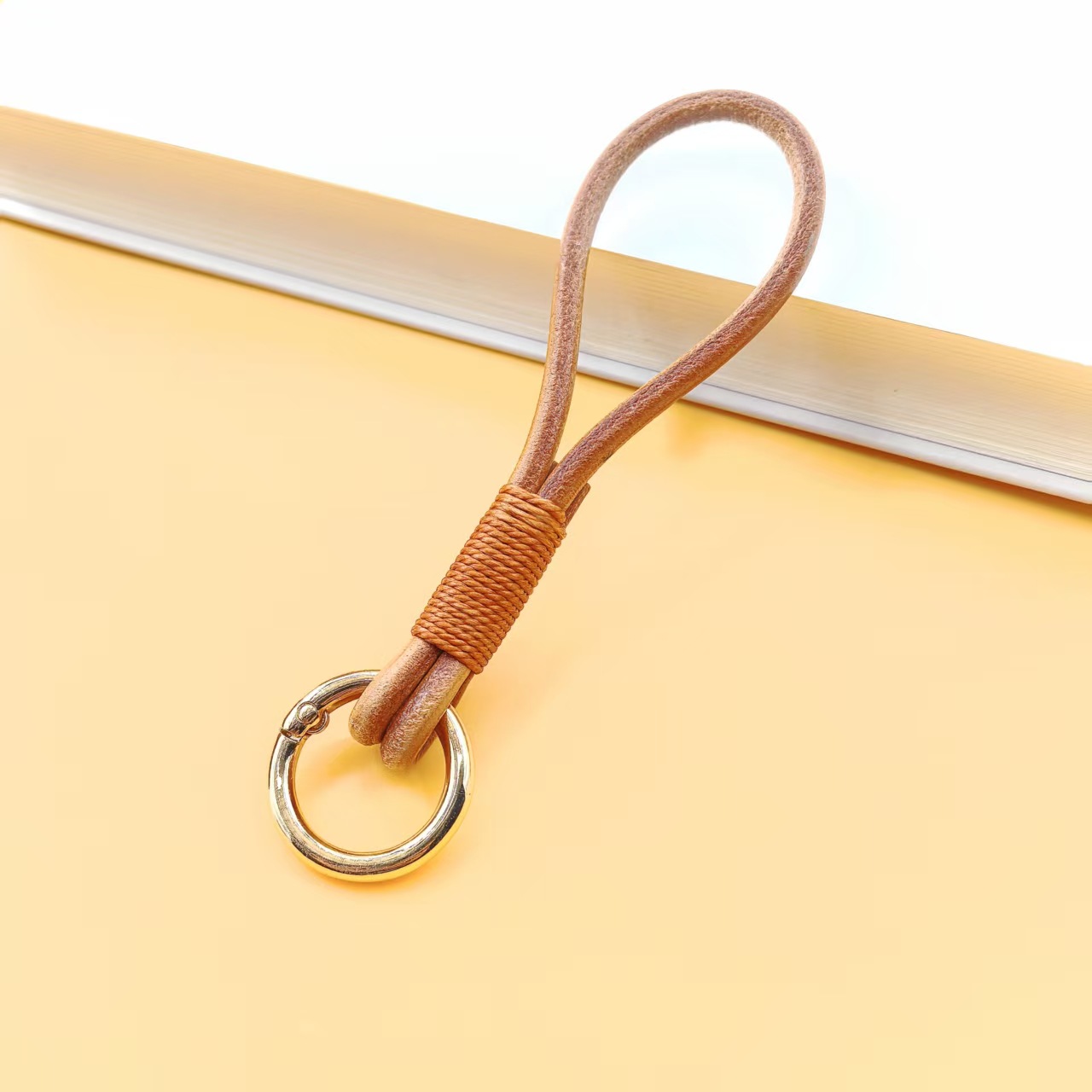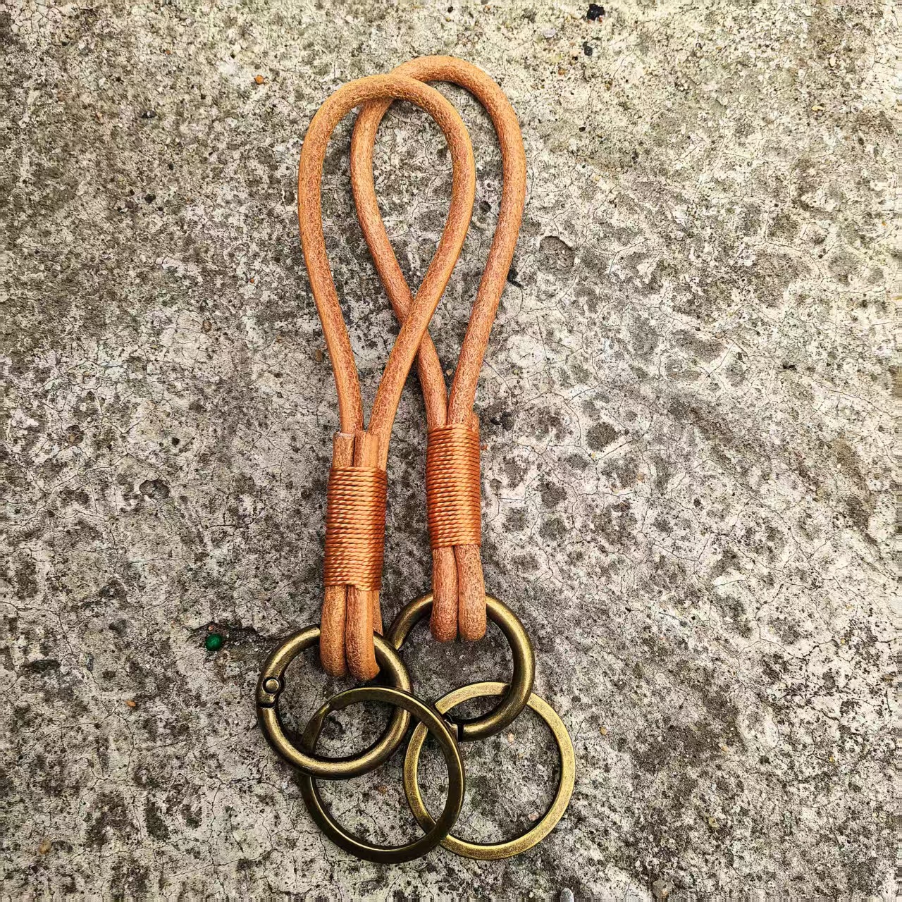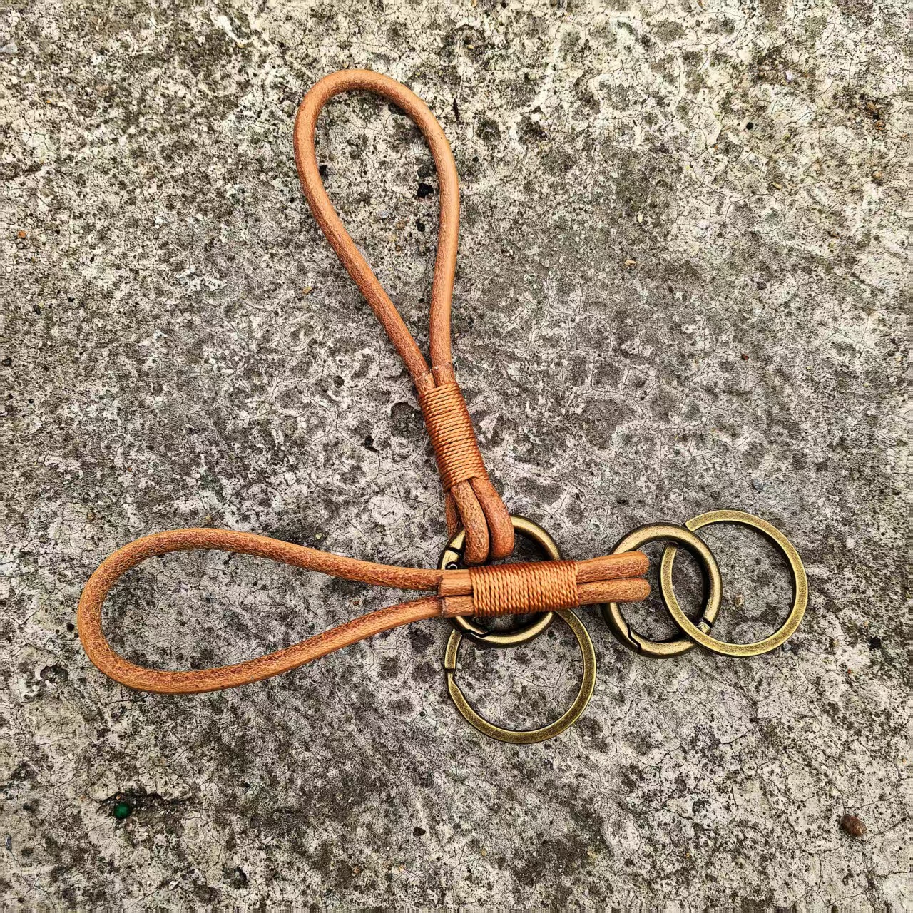 复古皮绳钥匙扣挂饰开口弹簧圈牛皮绳汽车钥匙扣创意diy挂件配饰