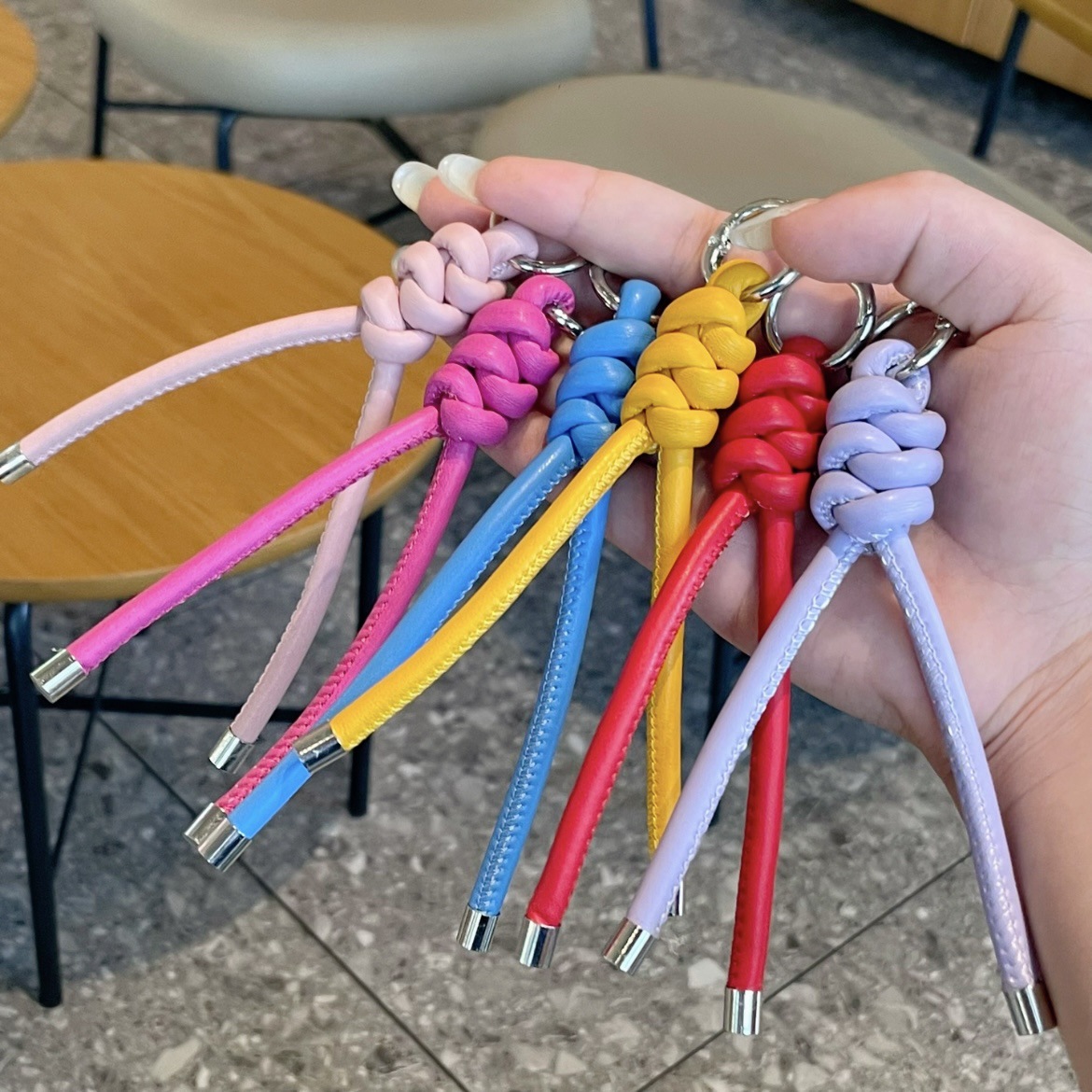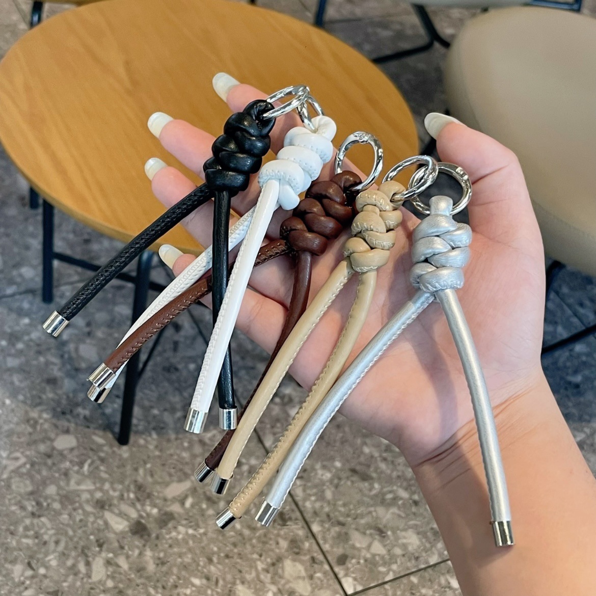 新款时尚编织pu皮绳钥匙扣挂件创意手工编织挂饰百搭包包挂饰批发