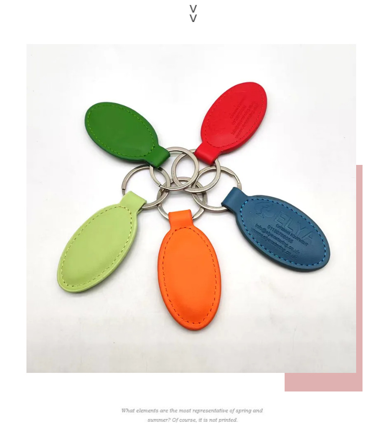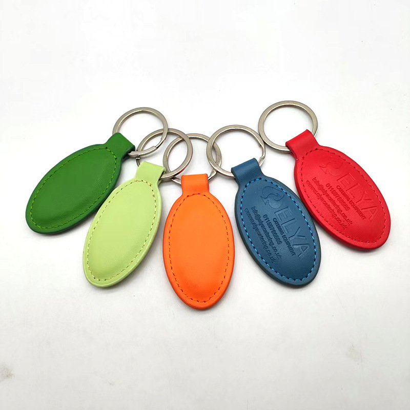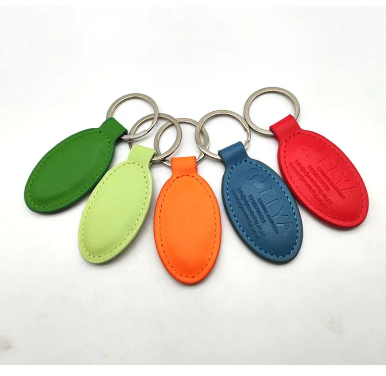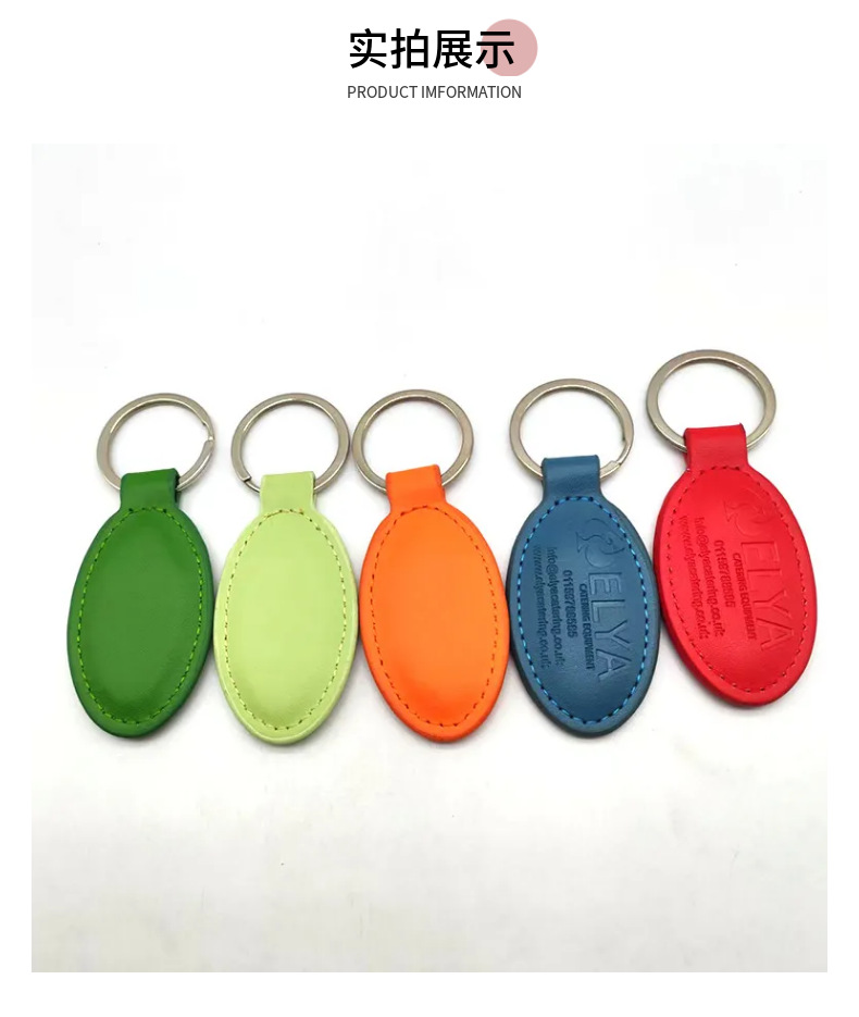 热销椭圆二层真皮钥匙扣创意牛皮汽车钥匙扣挂件PU皮革钥匙扣LOGO