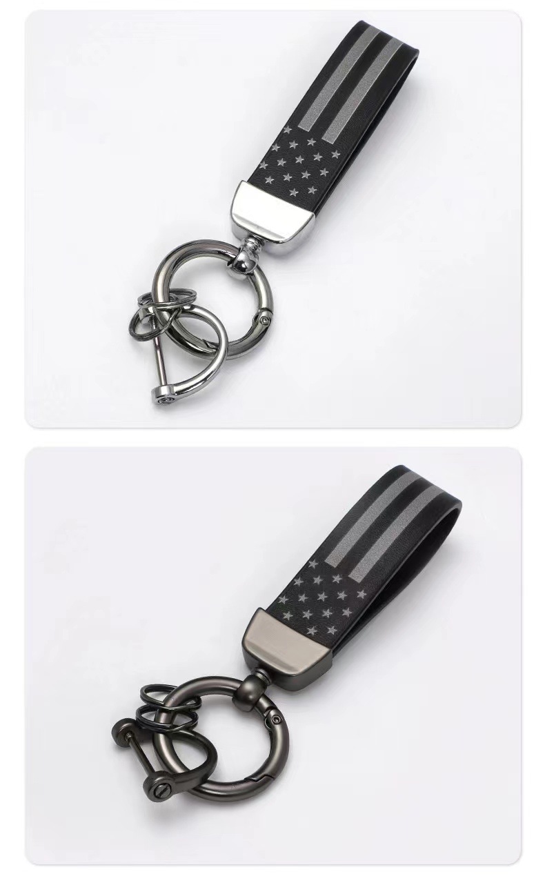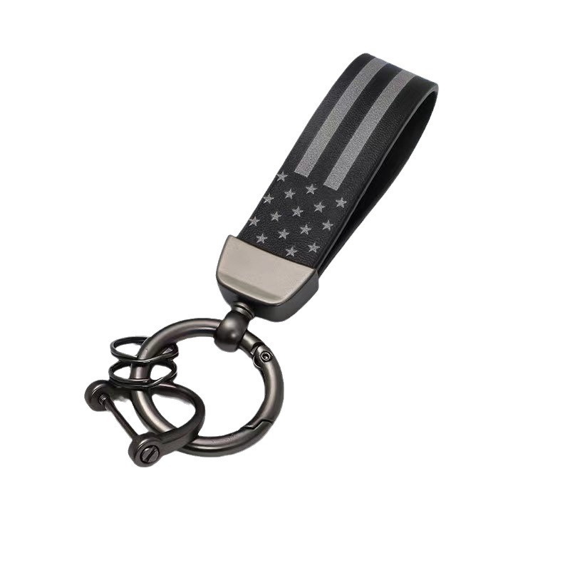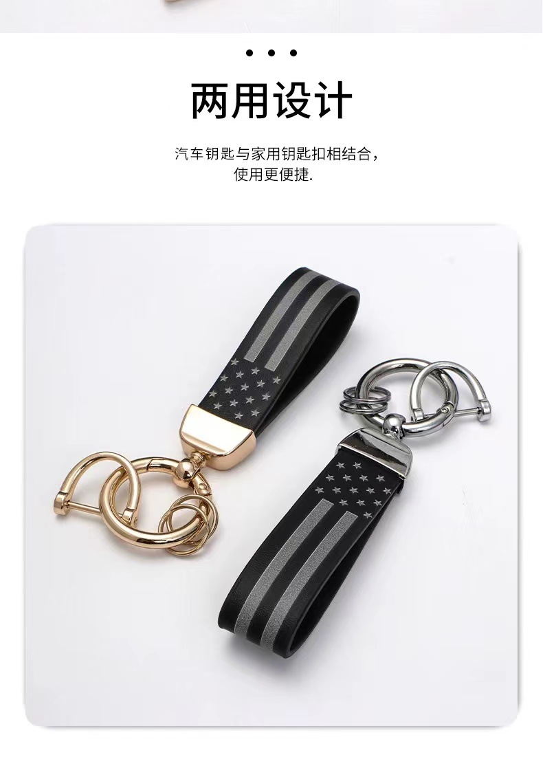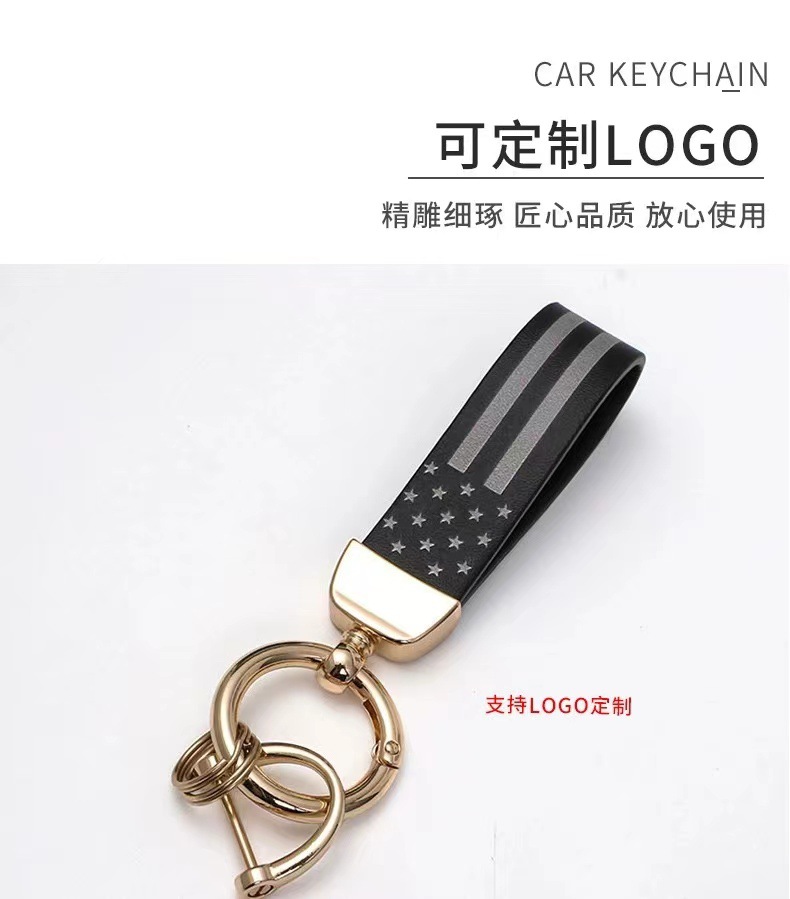 外贸爆款潮牌汽车钥匙扣美国国旗钥匙链挂件皮革DIY简约钥匙圈扣