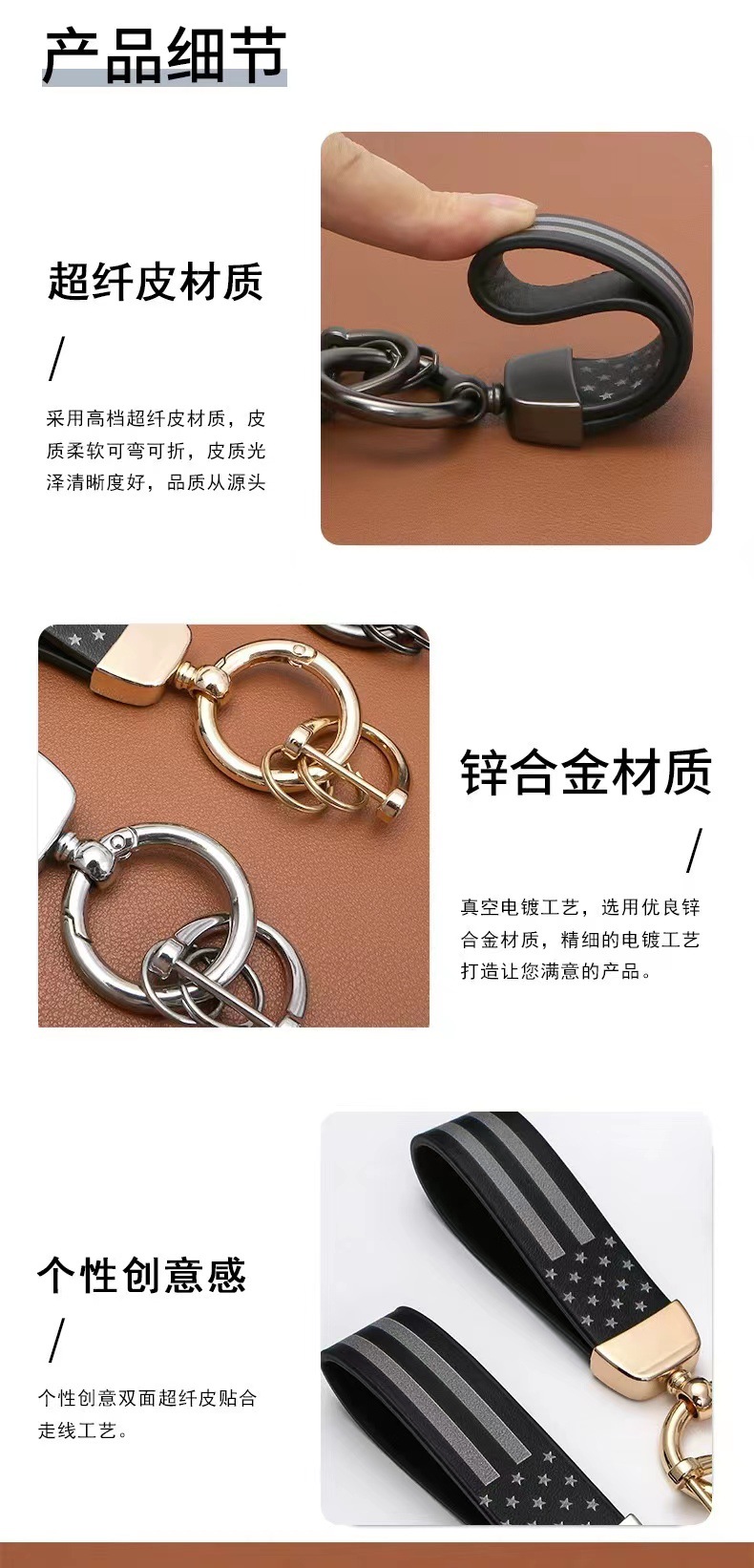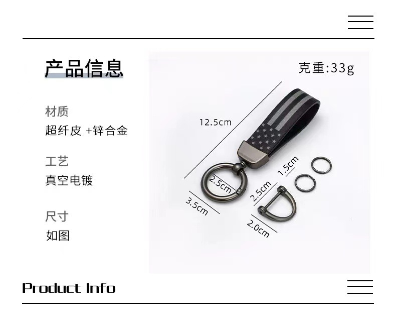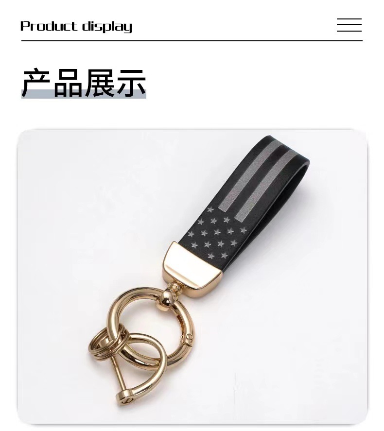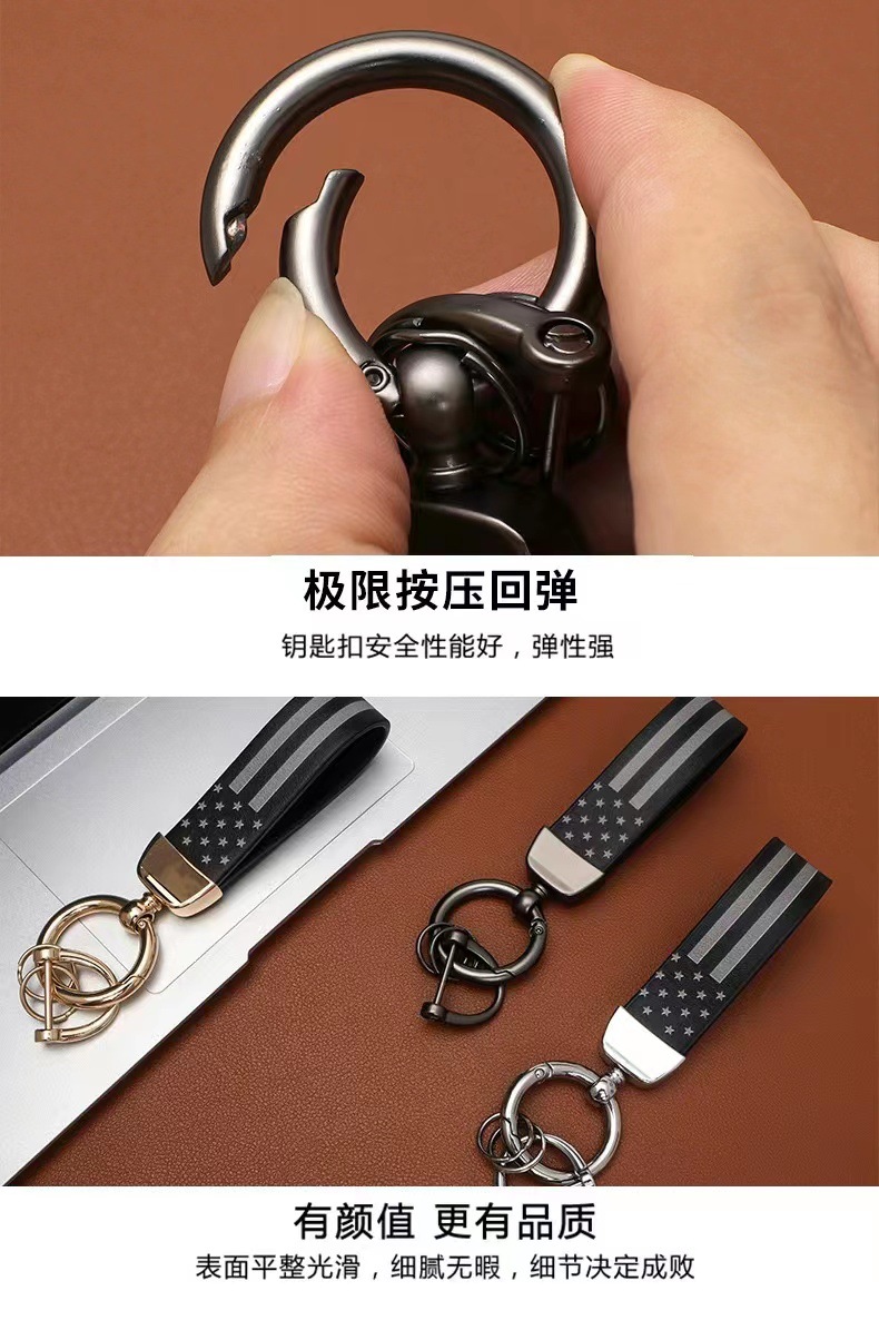 外贸爆款潮牌汽车钥匙扣美国国旗钥匙链挂件皮革DIY简约钥匙圈扣