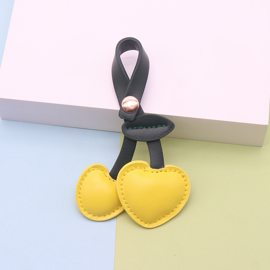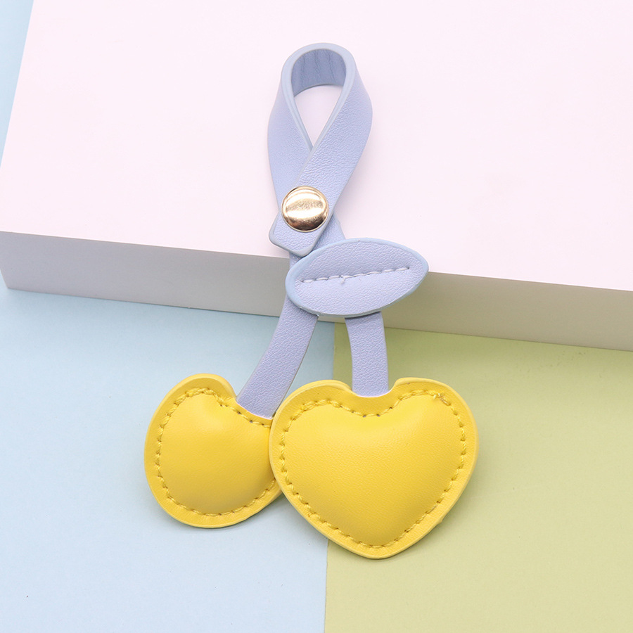欧美ins田园风PU皮革樱桃钥匙扣挂件 皮革充棉可爱皮质樱桃小挂件