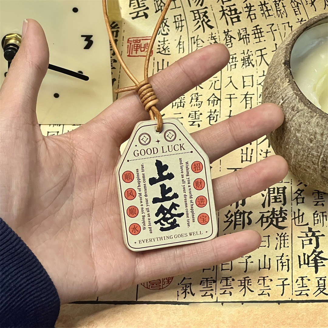 遇上即是上上签 皮质挂件国风寓意吉祥平安高级手工钥匙扣包挂件