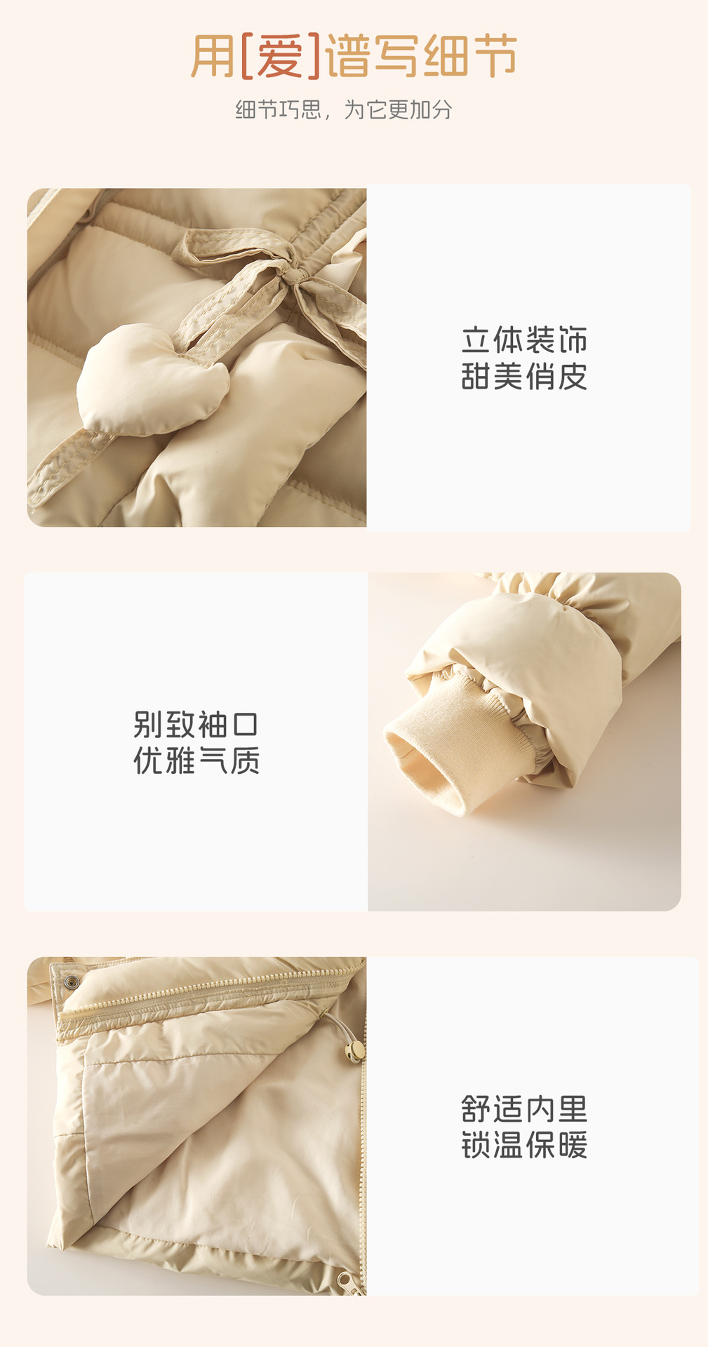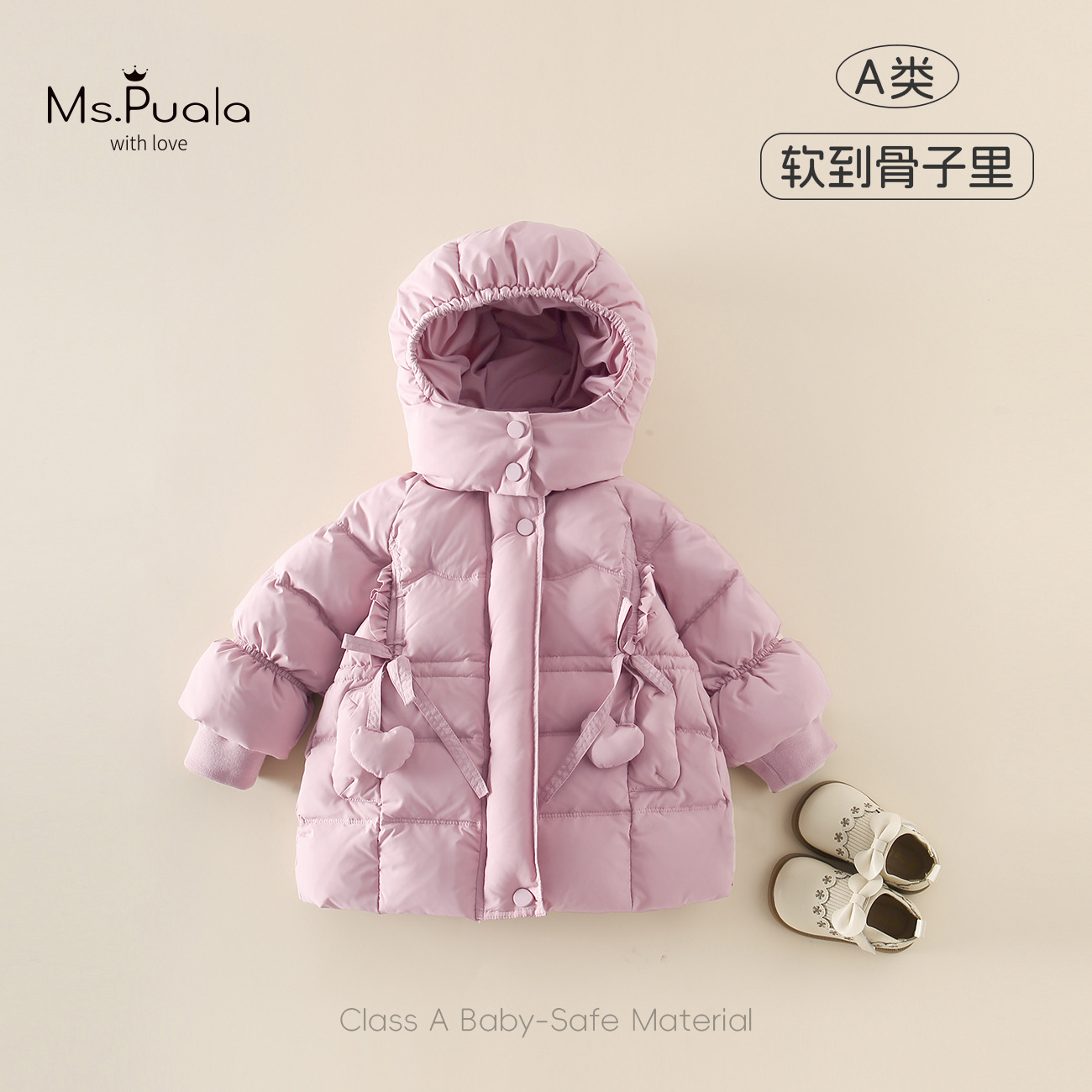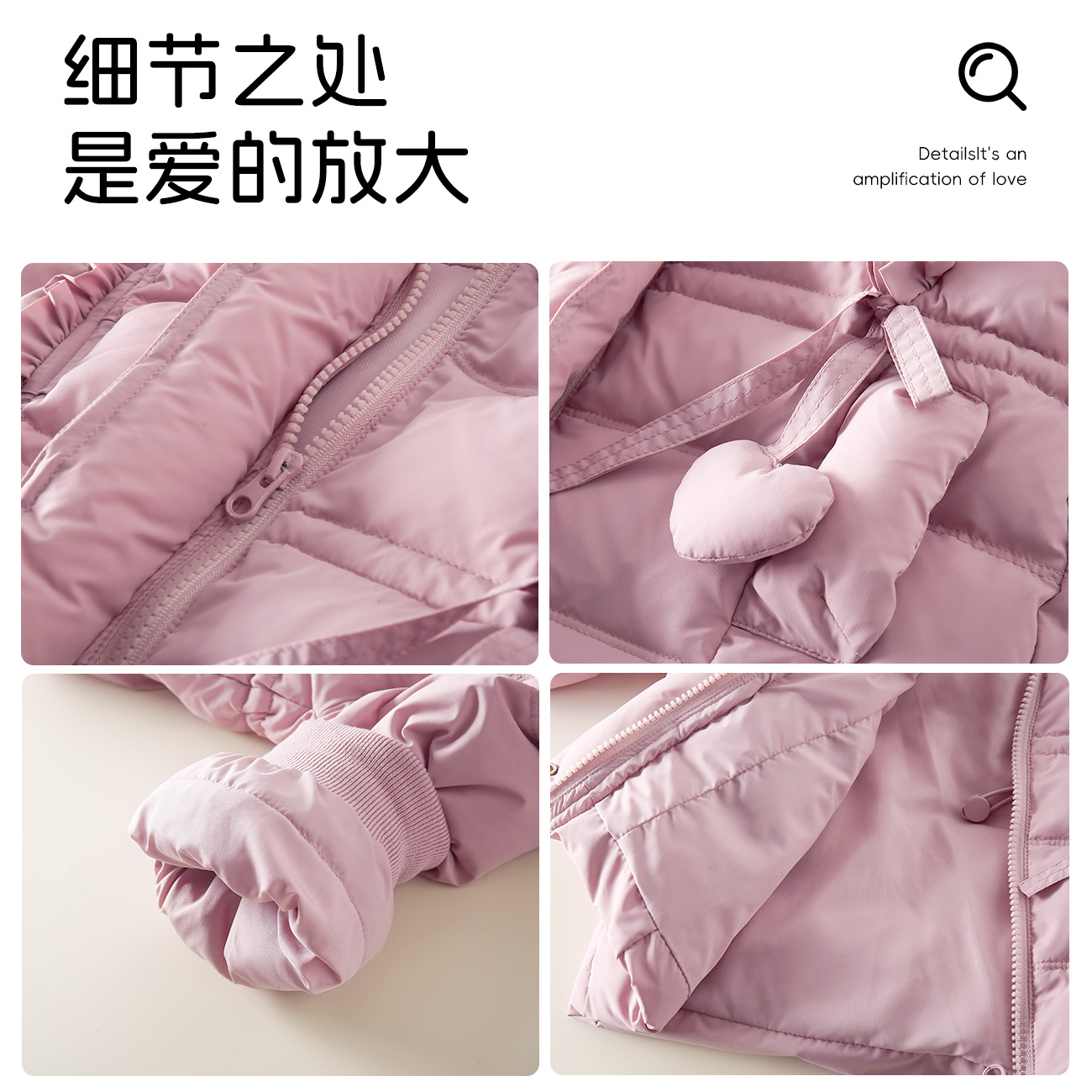 秋冬新款玛奇朵新国标婴幼儿A类女童中长款90白鸭绒安心绒羽绒服