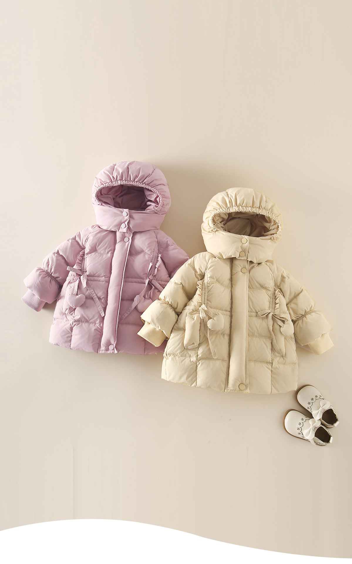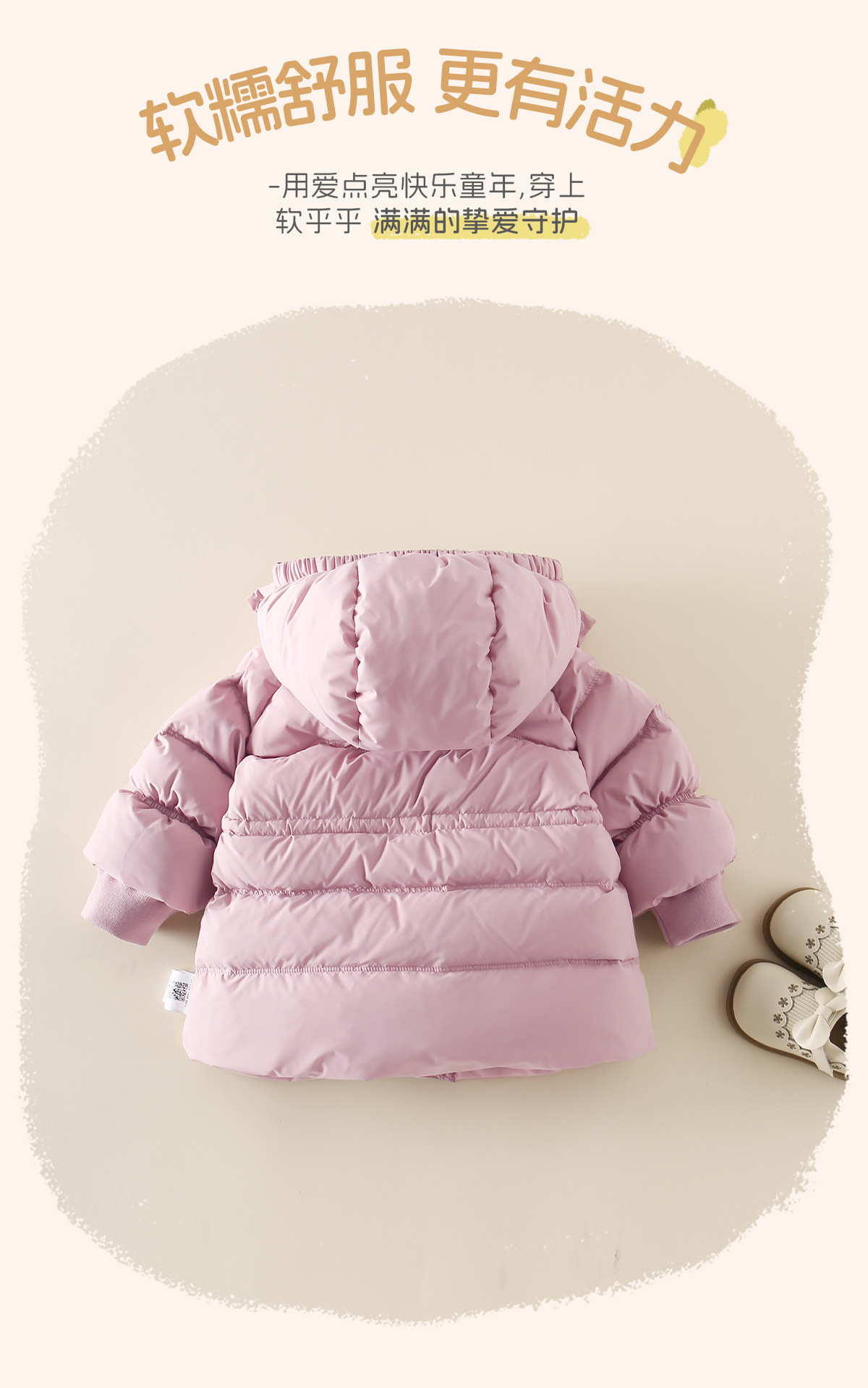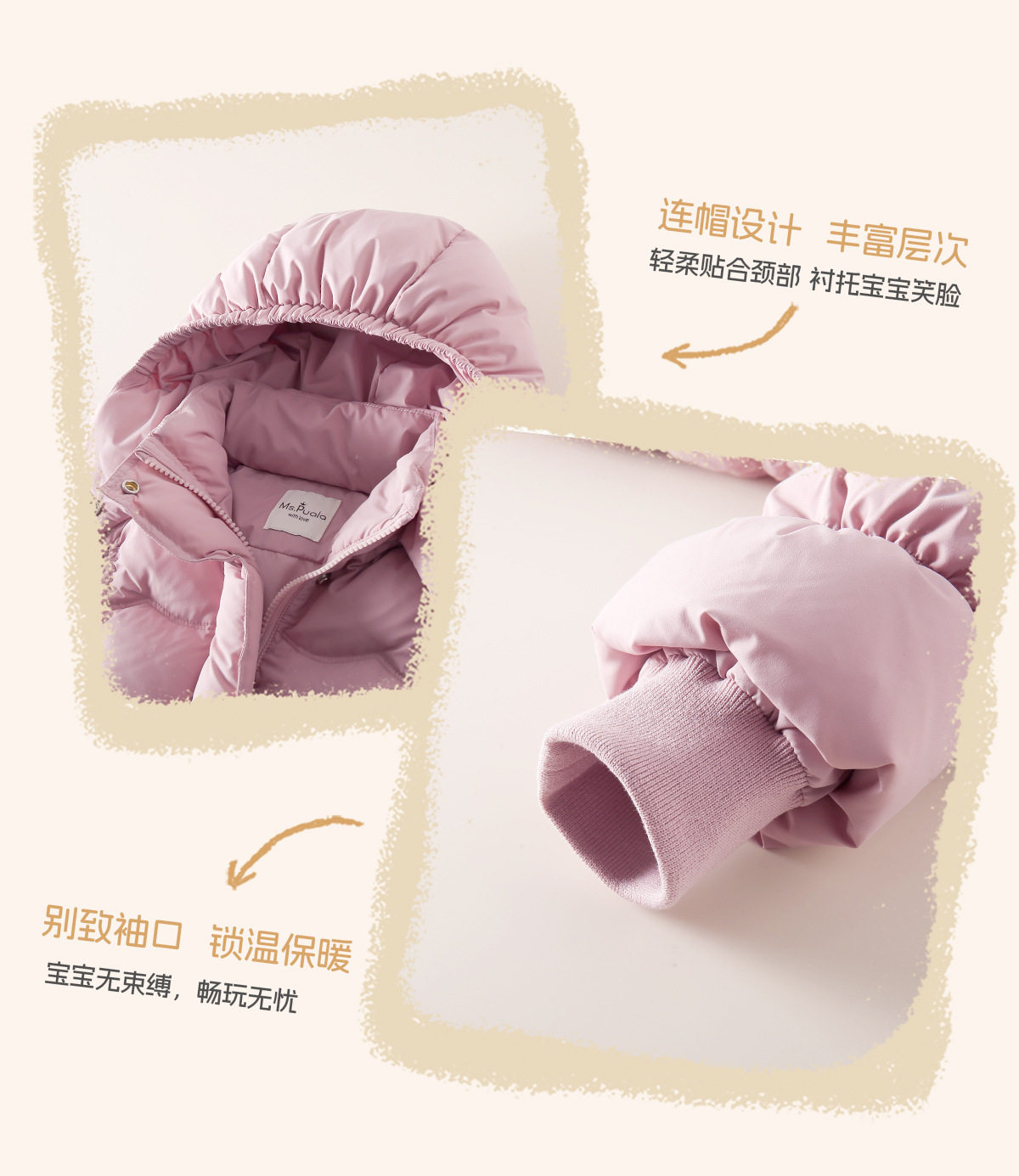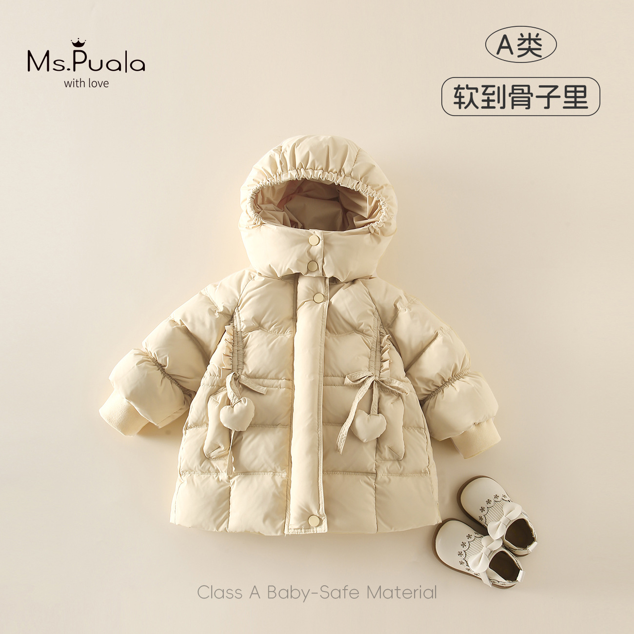 秋冬新款玛奇朵新国标婴幼儿A类女童中长款90白鸭绒安心绒羽绒服