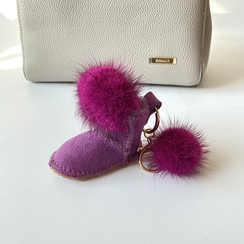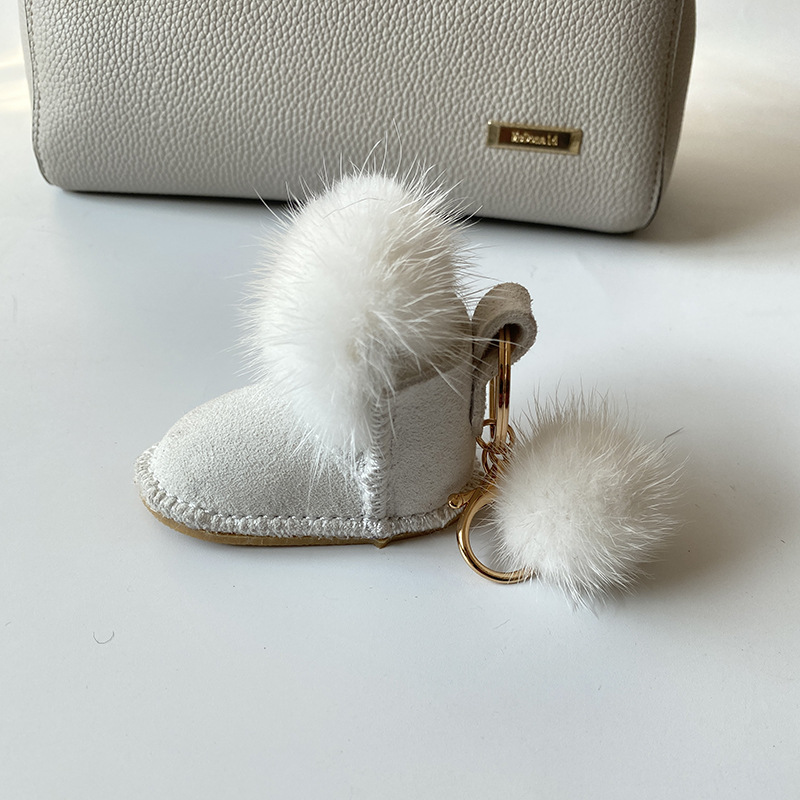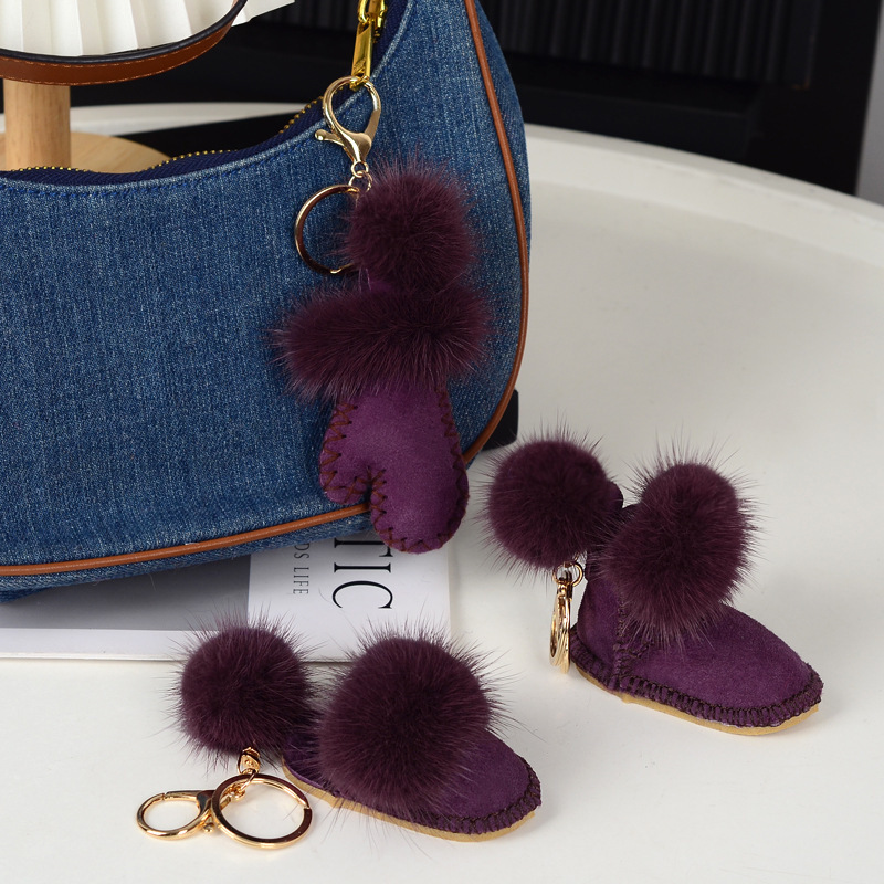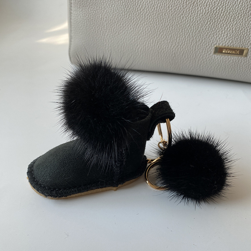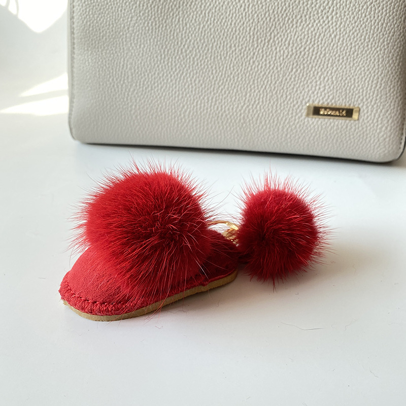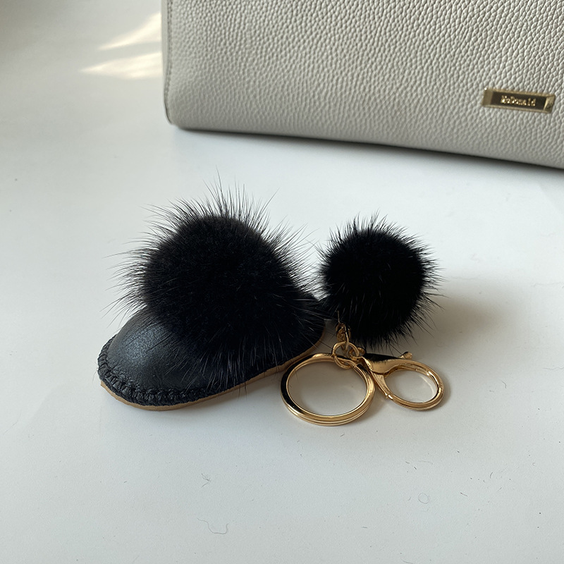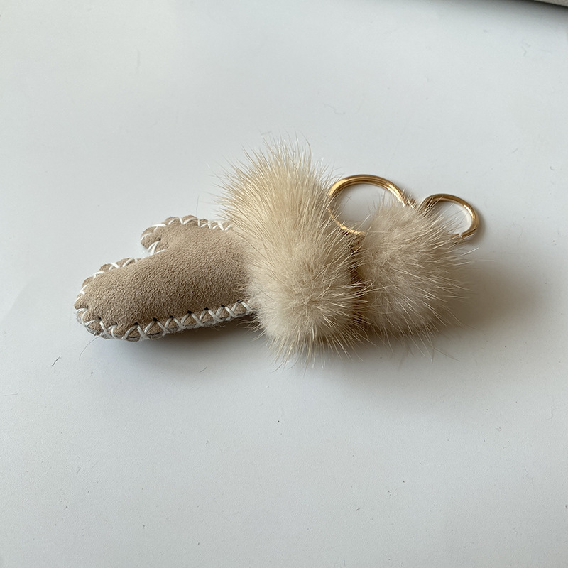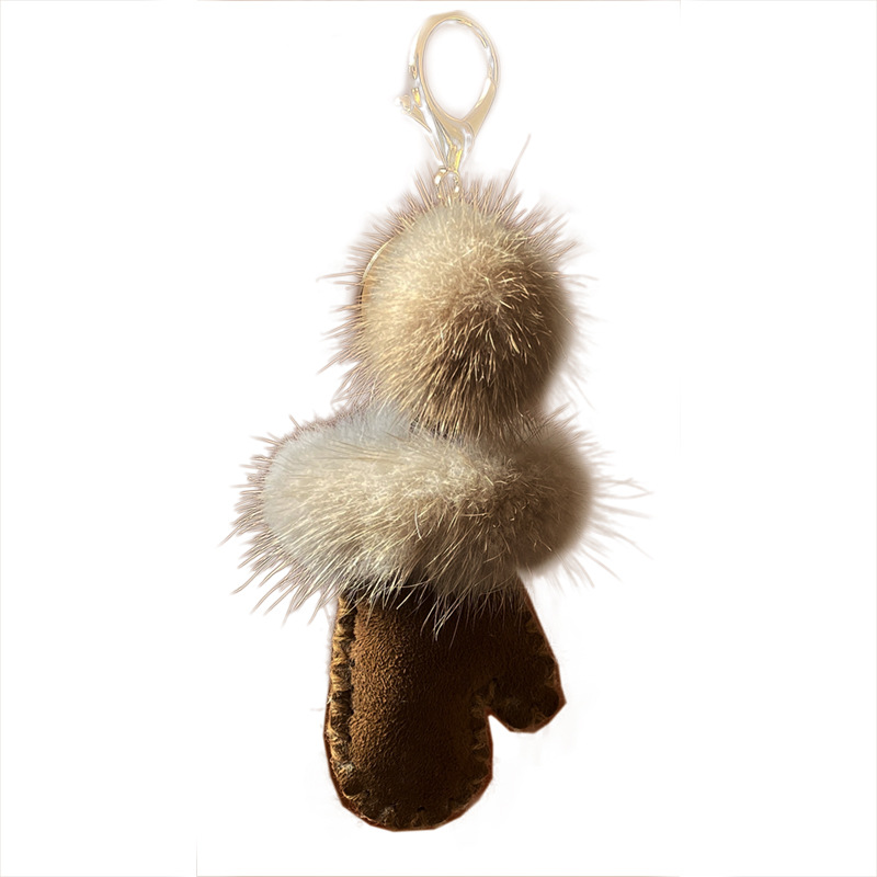 真皮水貂毛原创设计挂件车钥匙包包挂件毛绒钥匙扣貂毛吊坠手套