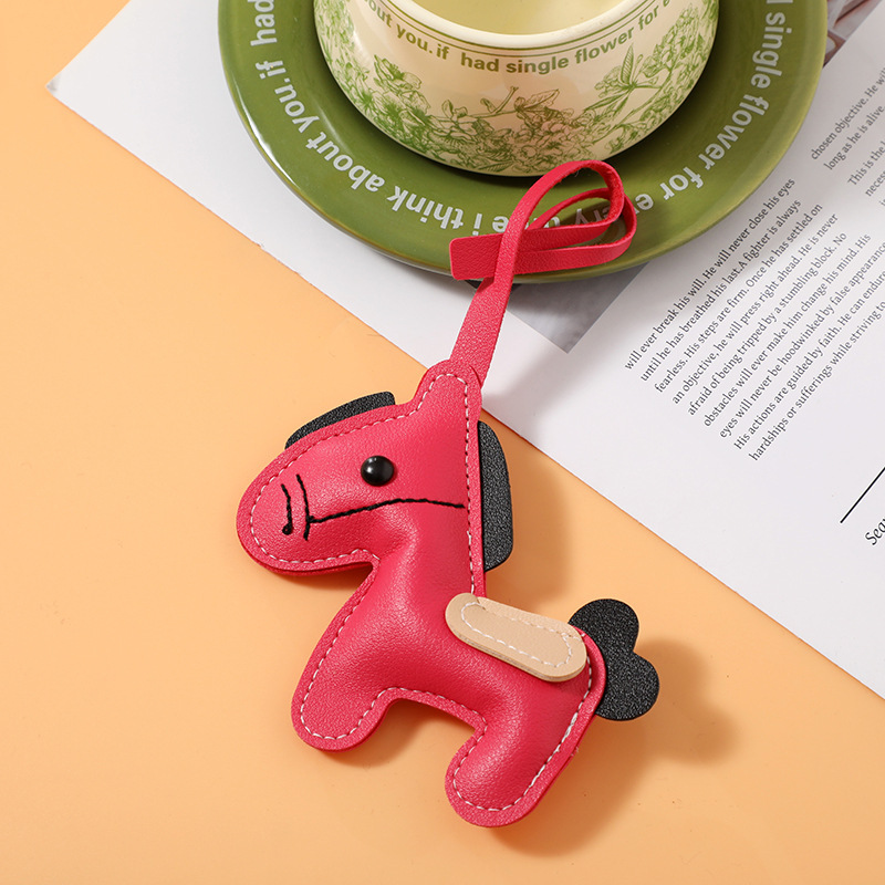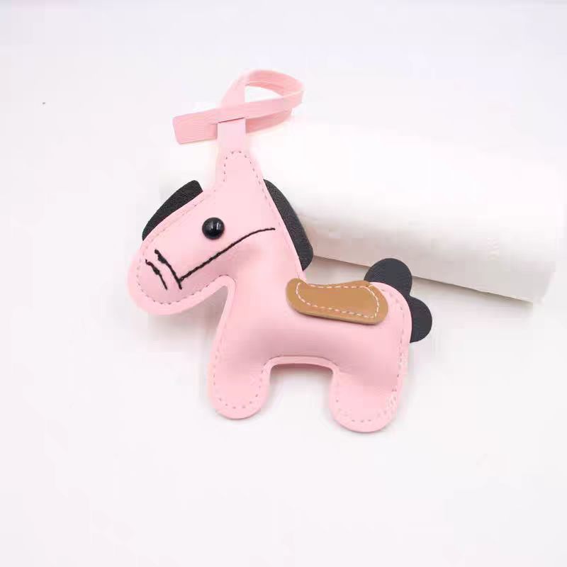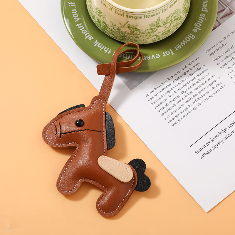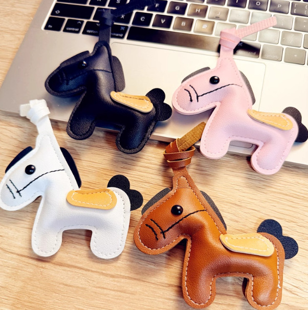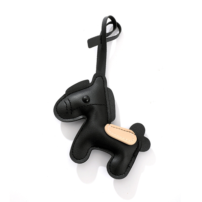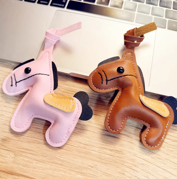 跨境新款pu皮质挂件简约百搭创意小马可爱潮流汽车钥匙扣包包挂饰