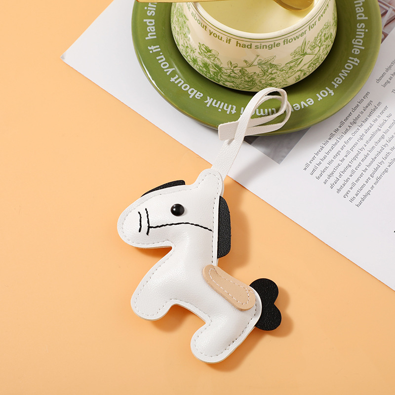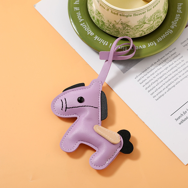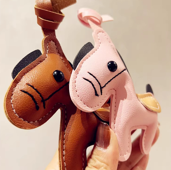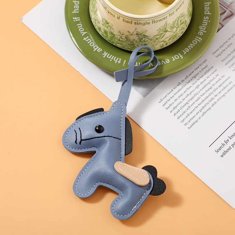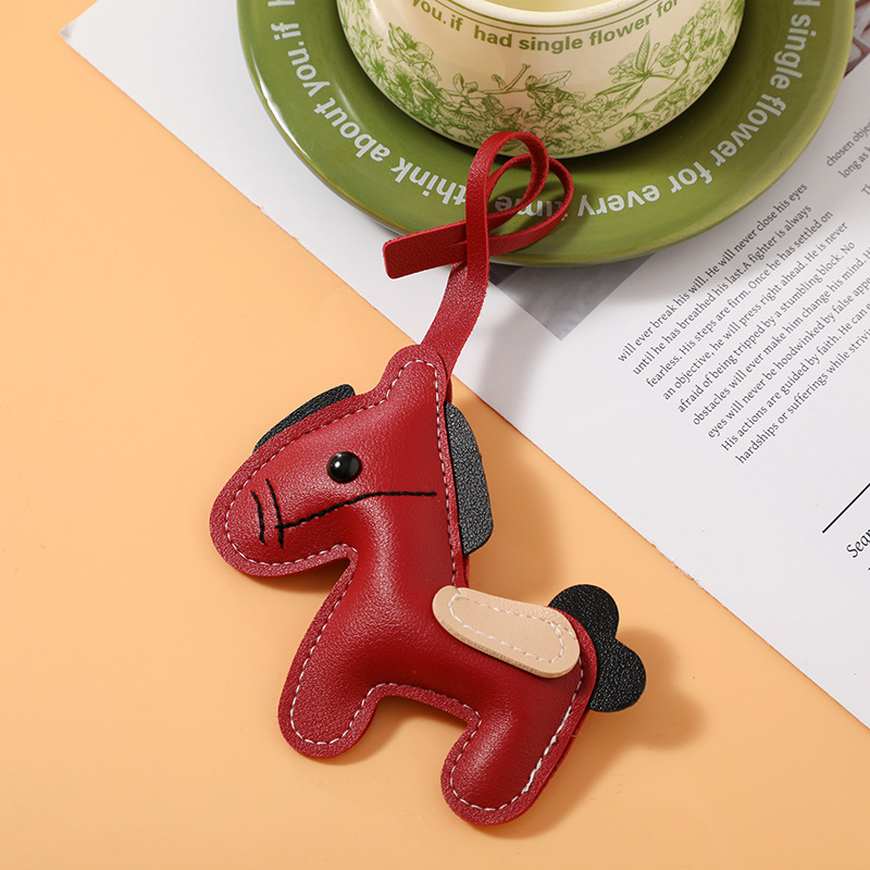 跨境新款pu皮质挂件简约百搭创意小马可爱潮流汽车钥匙扣包包挂饰