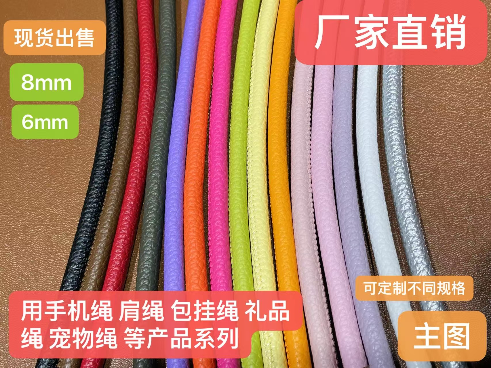 跨境6mm彩色PU荔枝纹手工编织绳手链绳百搭diy钥匙扣包包饰品配件