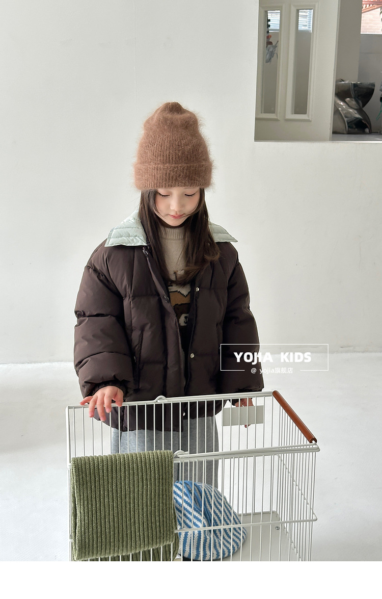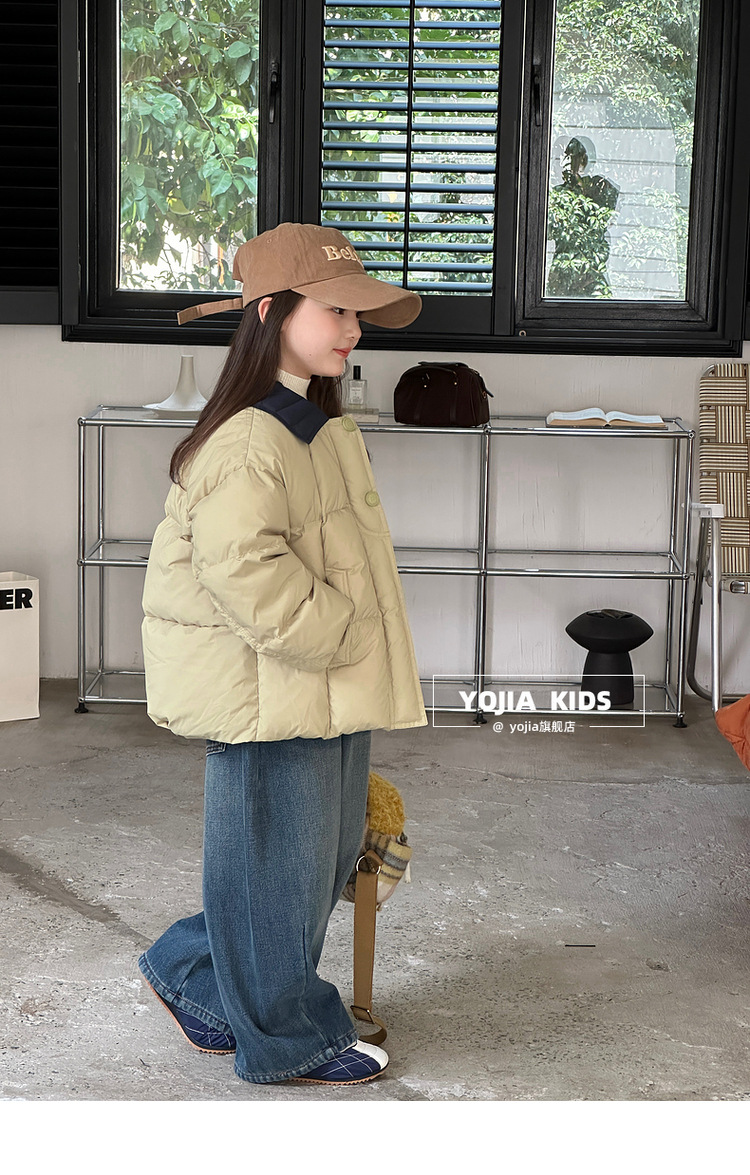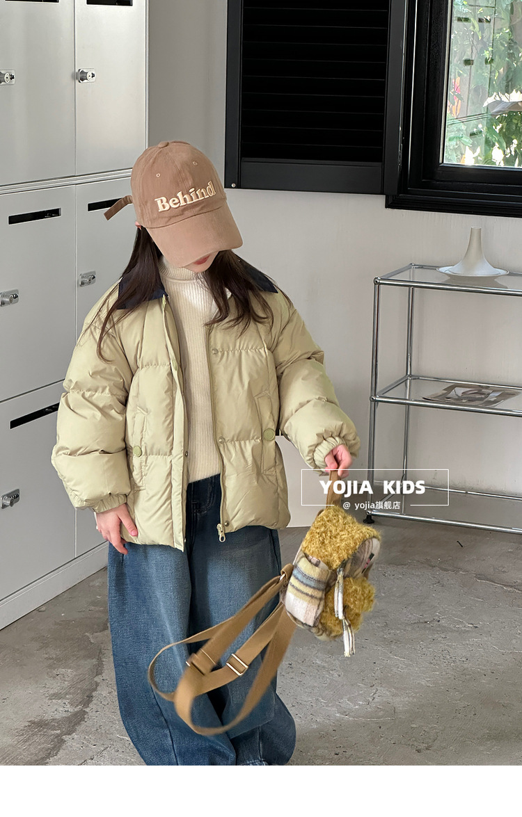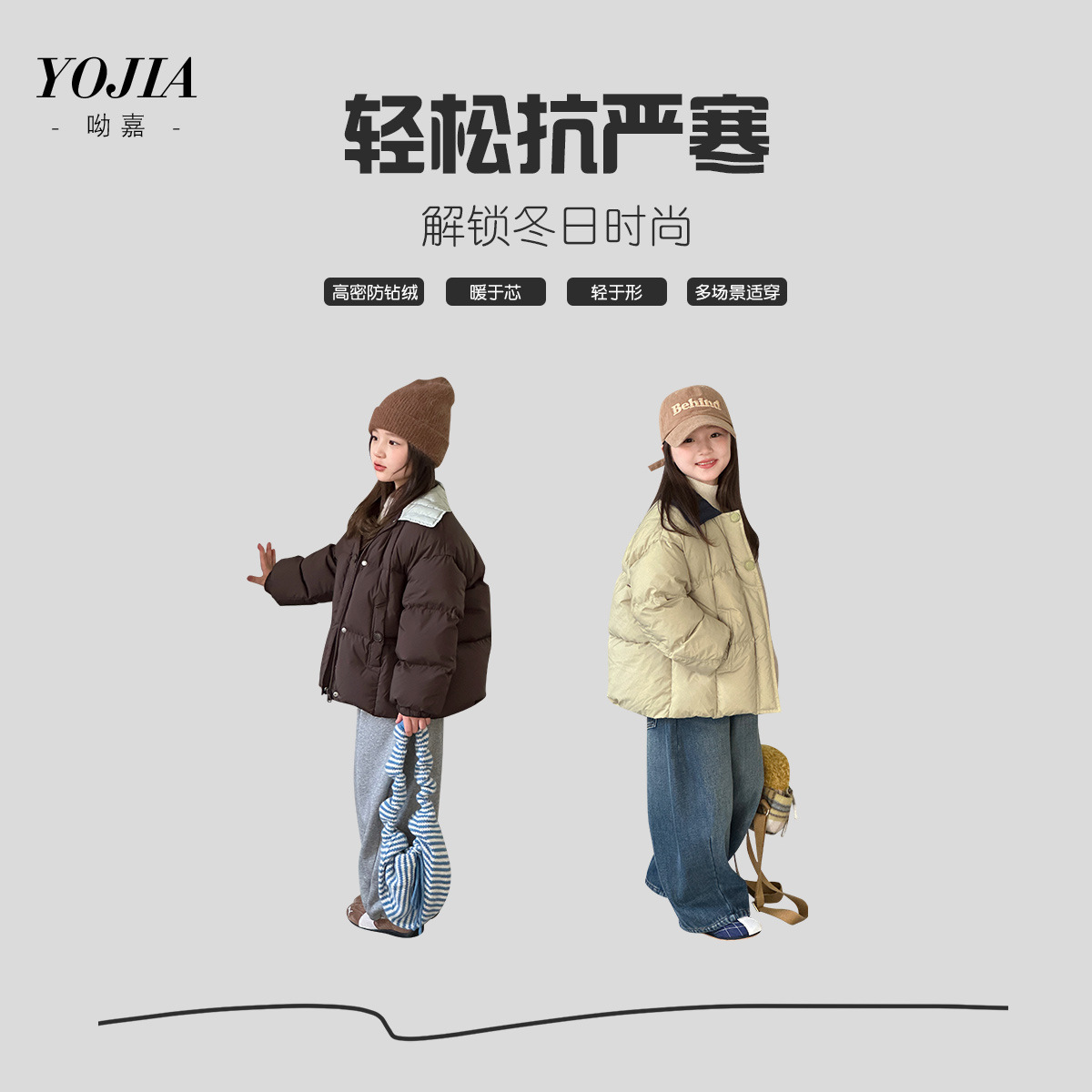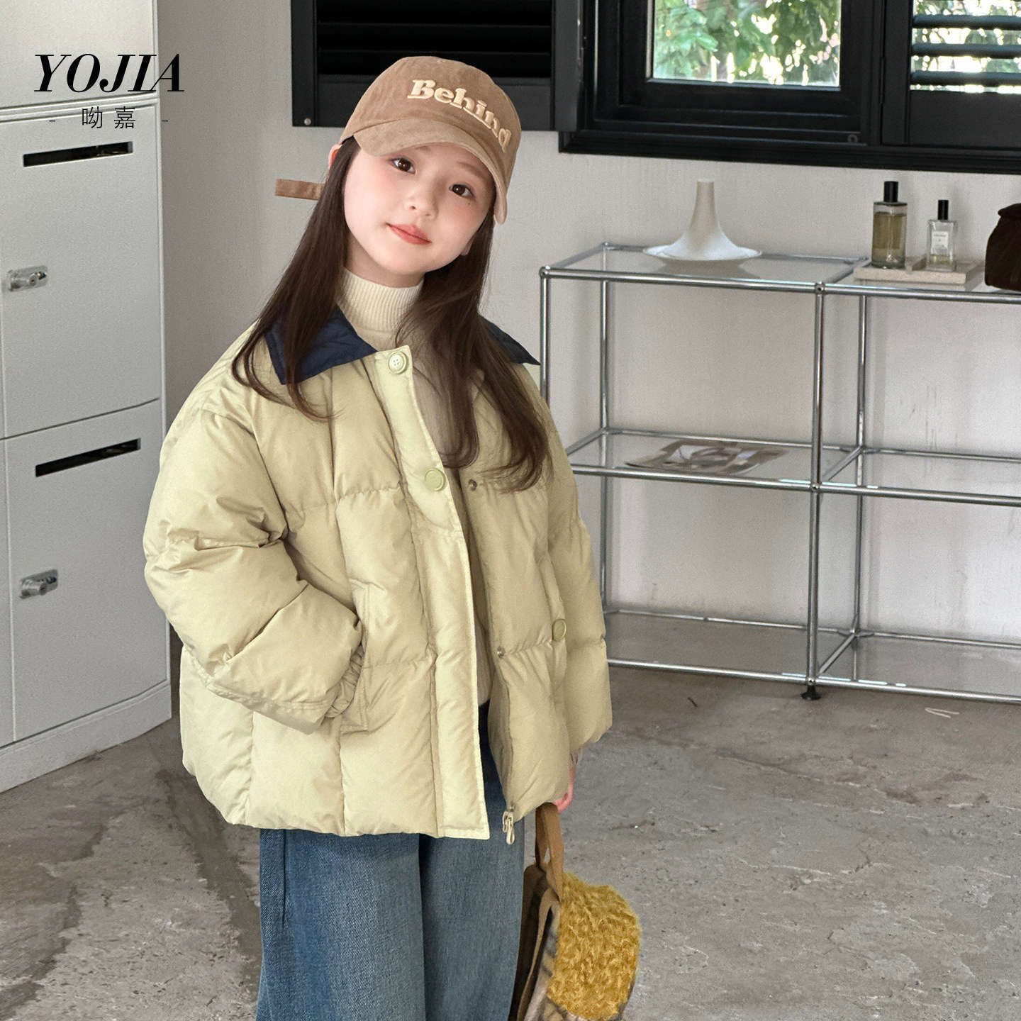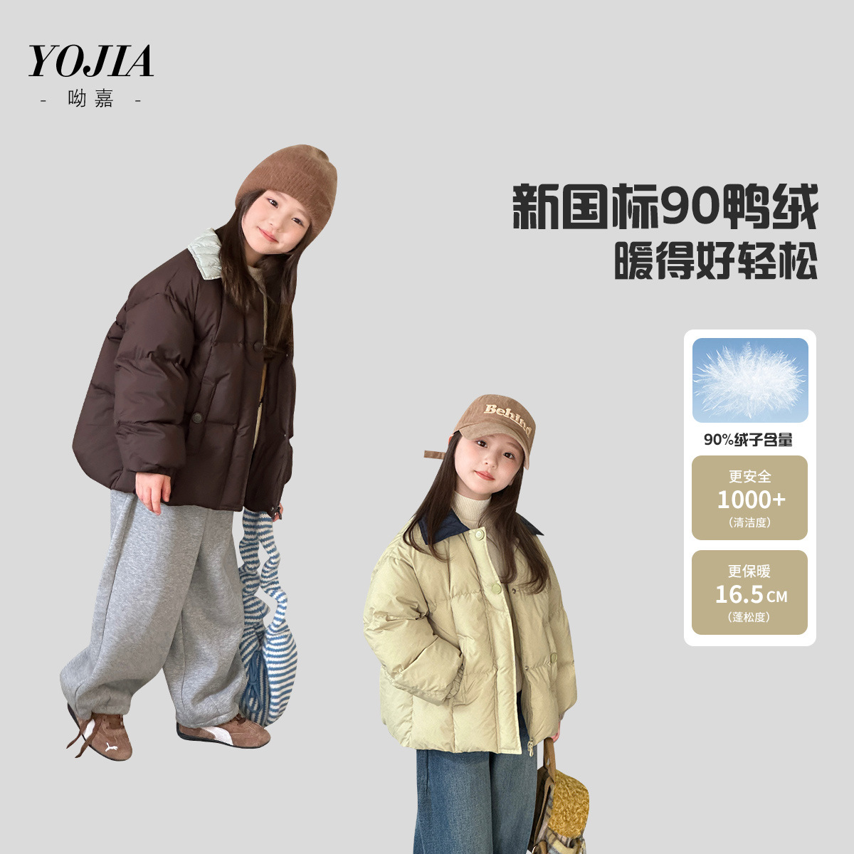 YOJIA女童羽绒服冬款2025新款洋气短款面包服外套白鸭绒儿童冬装