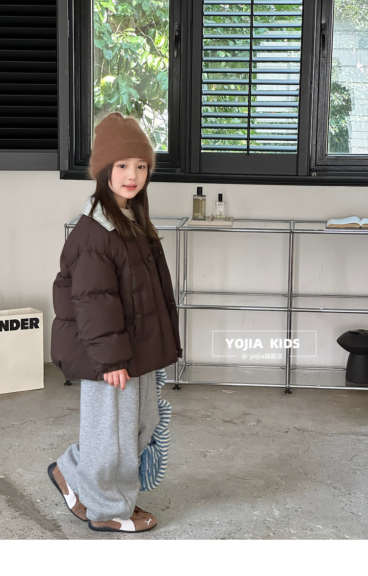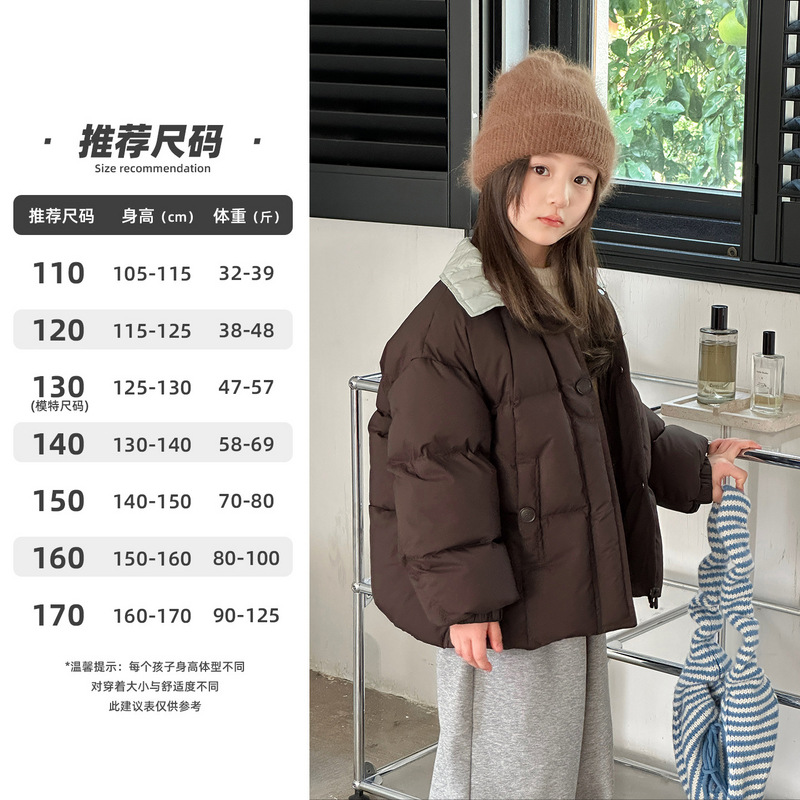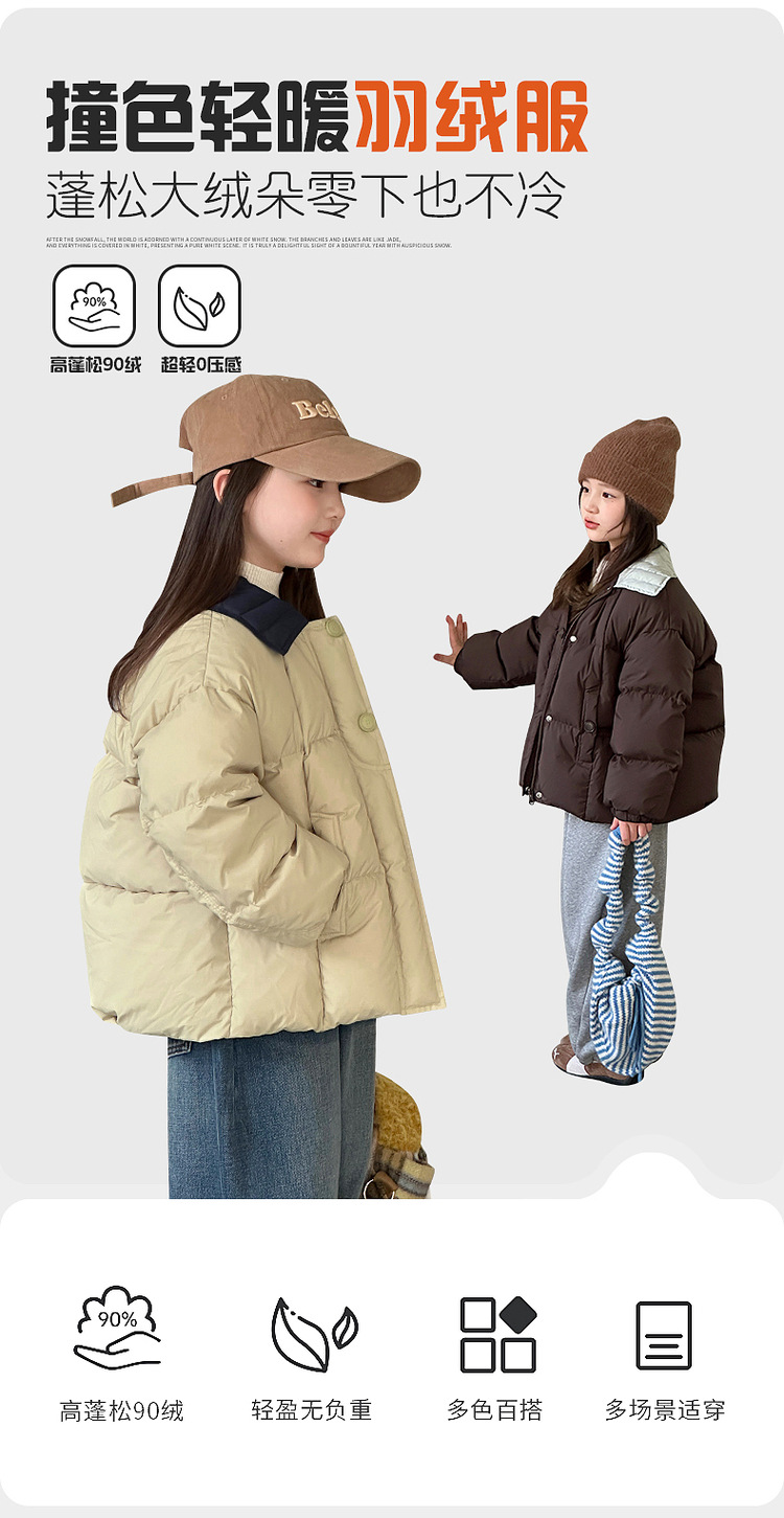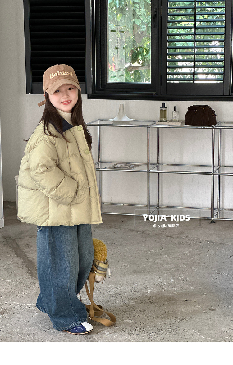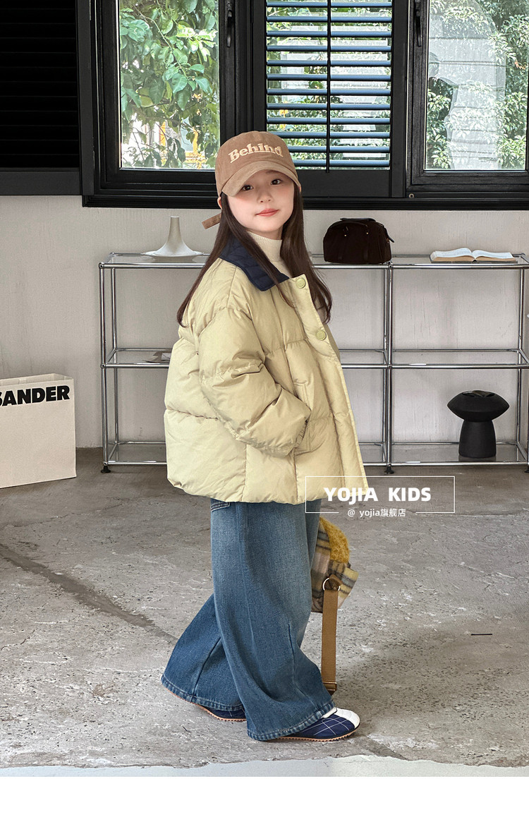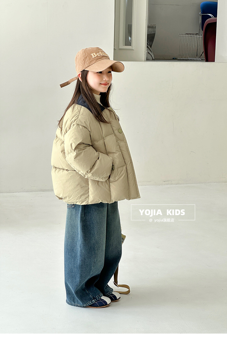 YOJIA女童羽绒服冬款2025新款洋气短款面包服外套白鸭绒儿童冬装